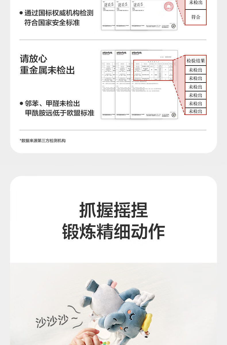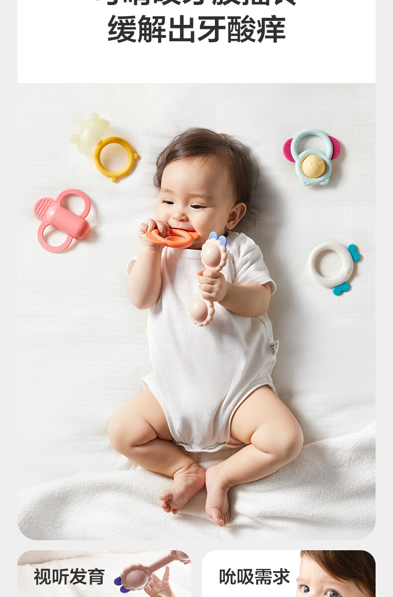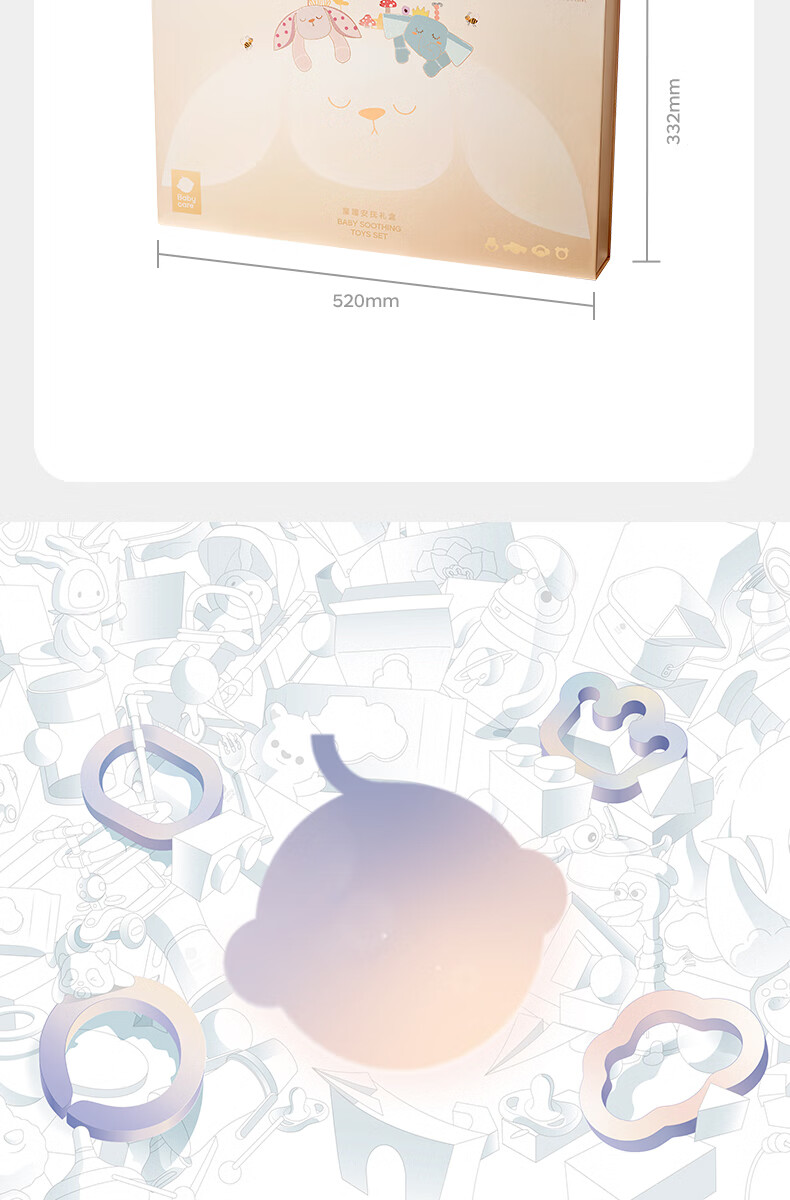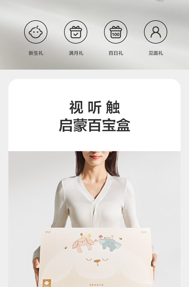 babycare安抚摇铃礼盒新生儿礼物婴儿玩具摇铃尾巴布书玩偶新年礼物-9件套