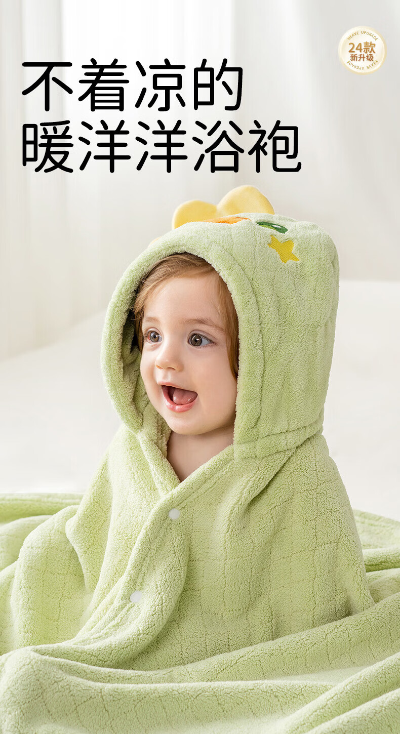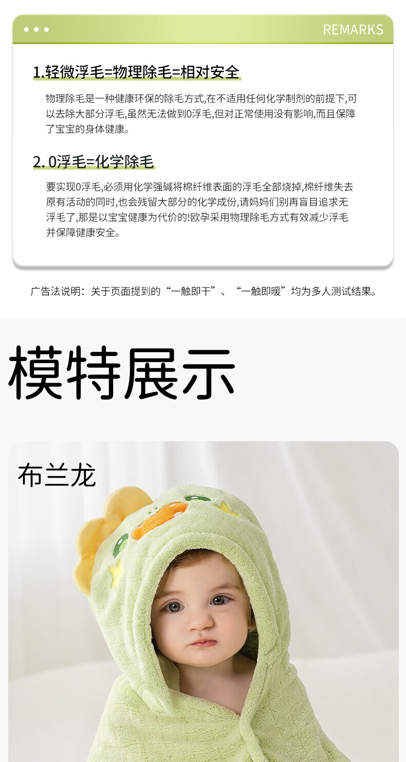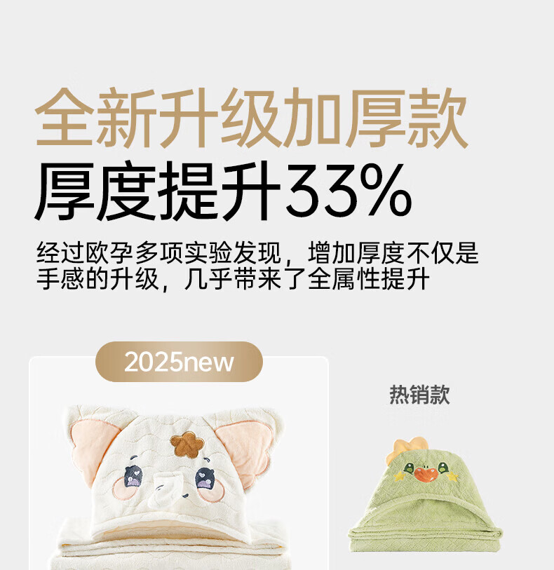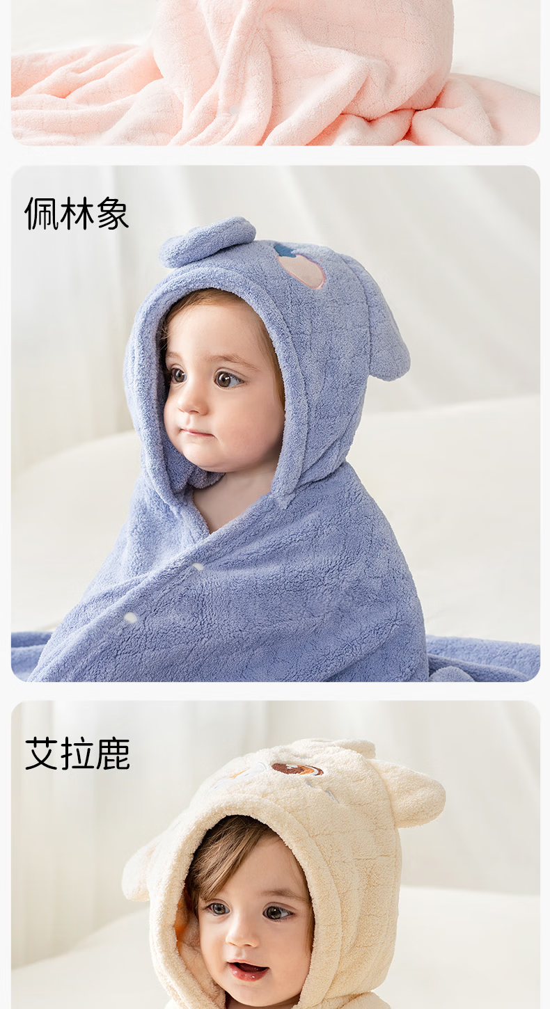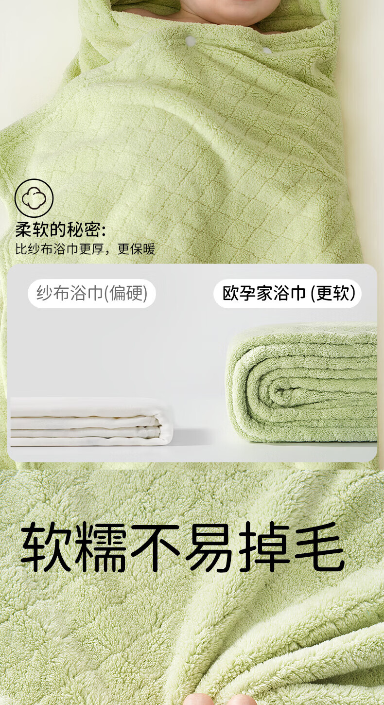 欧孕(OUYUN)婴儿浴巾柔吸水新生宝宝速干浴袍初生洗澡儿童毛巾被春-3 布兰龙【7A抗菌 防静电】 135x65cm