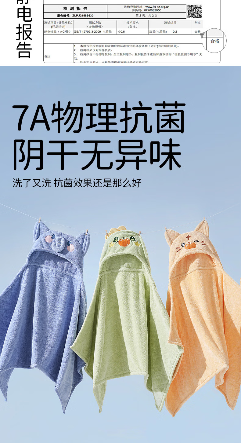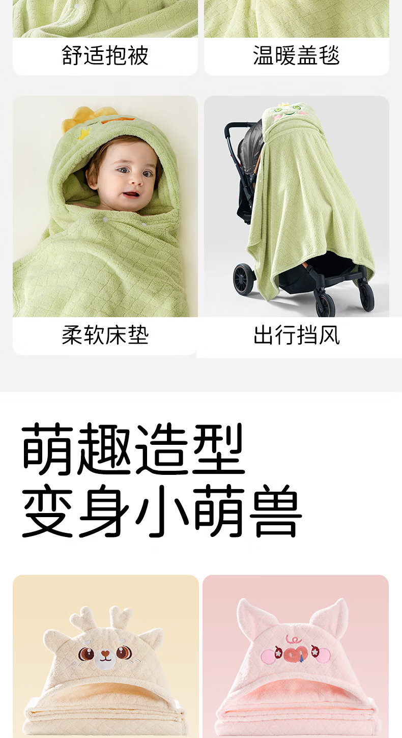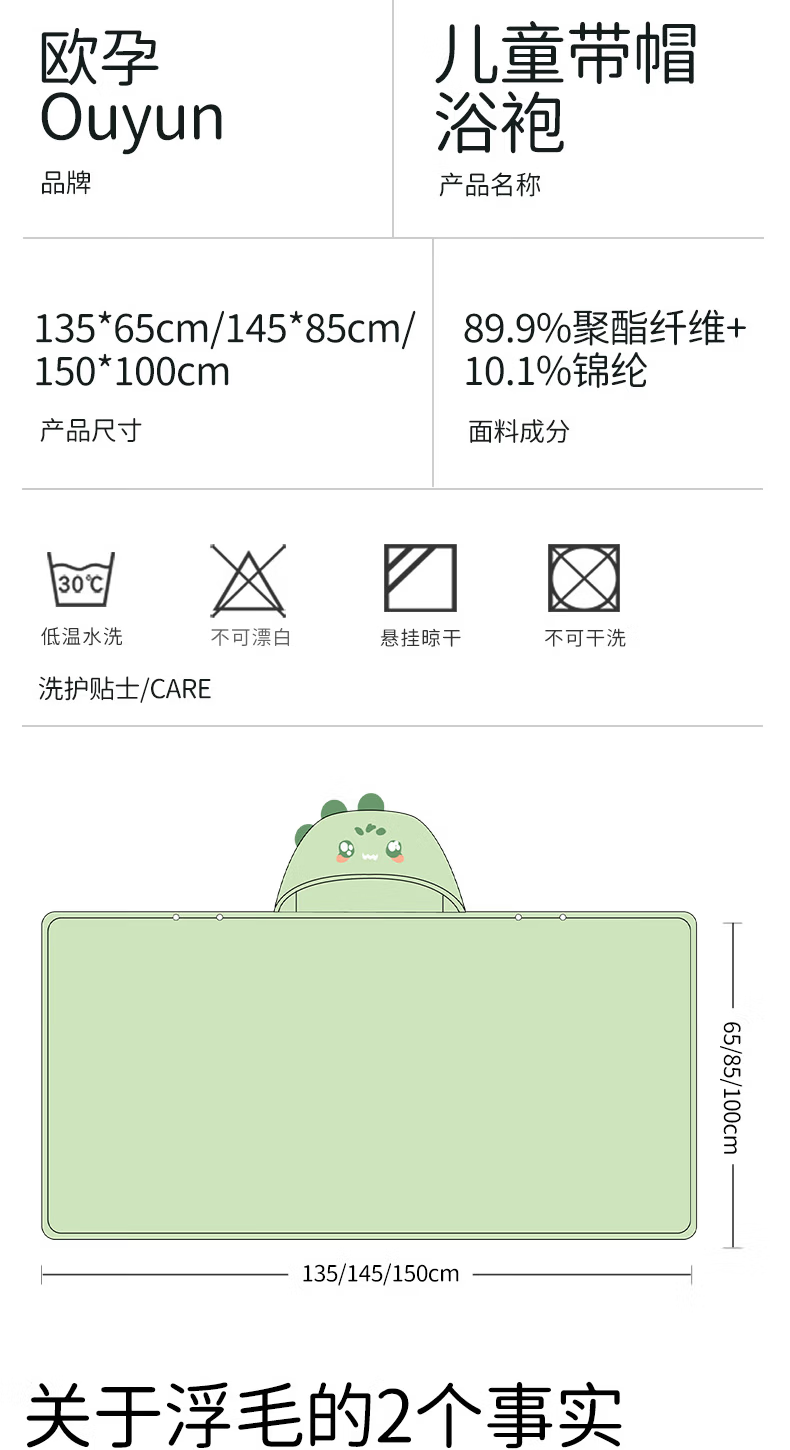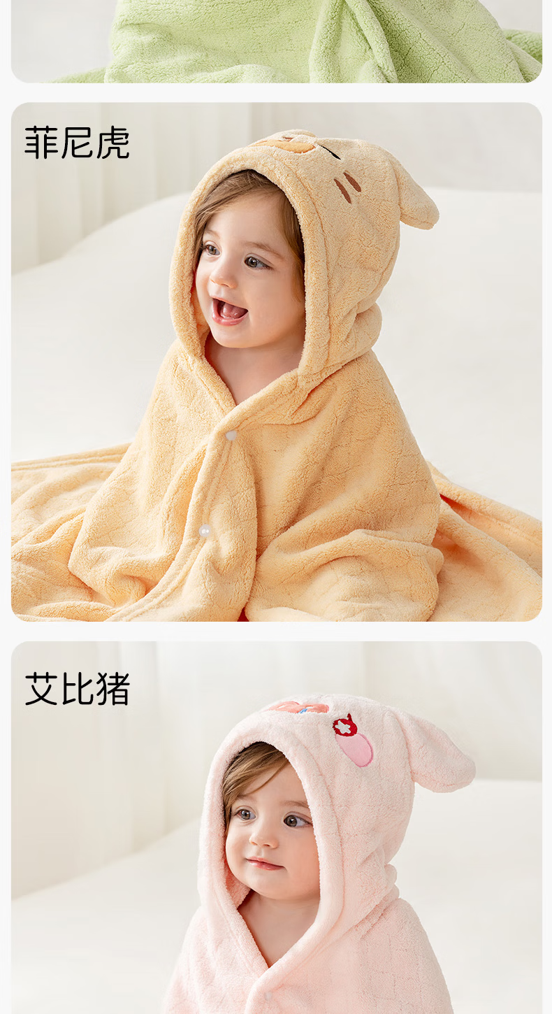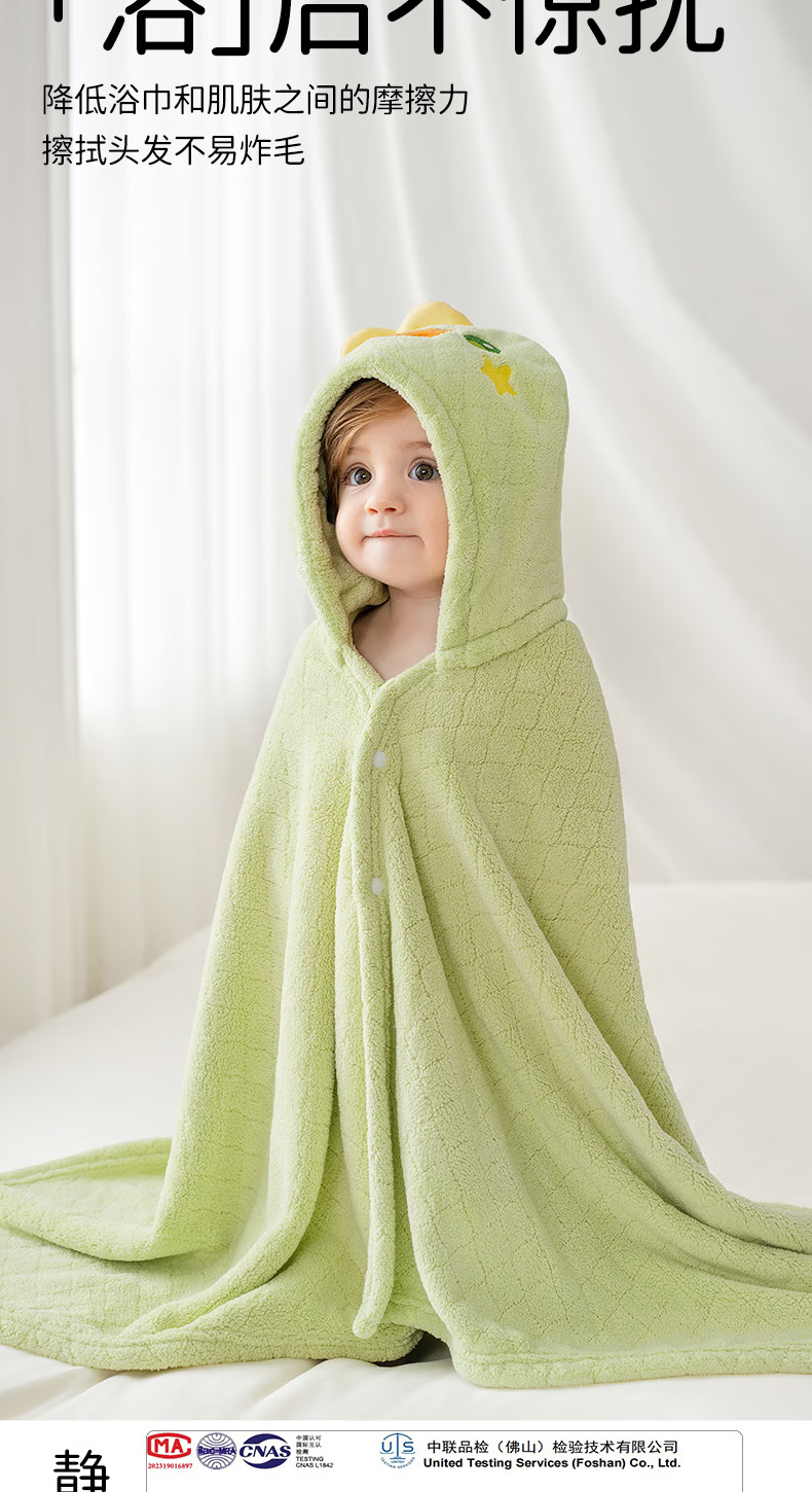 欧孕(OUYUN)婴儿浴巾柔吸水新生宝宝速干浴袍初生洗澡儿童毛巾被春-3 布兰龙【7A抗菌 防静电】 135x65cm