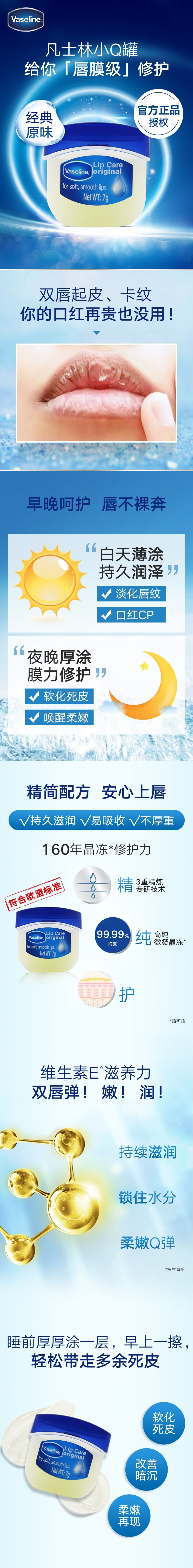 凡士林[销量第一]润唇小q罐7g原味 淡化唇纹滋润保湿唇膜去死皮38节礼物