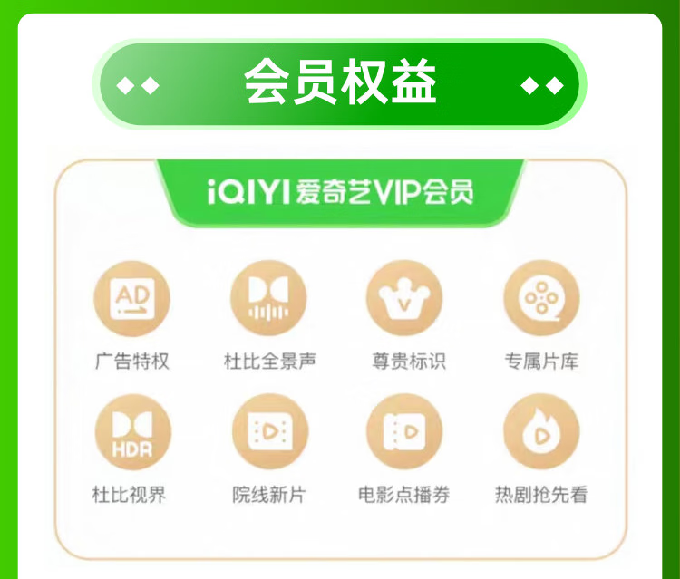 爱奇艺会员 爱奇艺视频会员 爱奇艺vip黄金会员 爱奇艺视频会员一个月 爱奇艺黄金vip月卡 黄金会员一个月【不支持小米用户激活】 最迟6小时到账【查看客服消息自助激活】