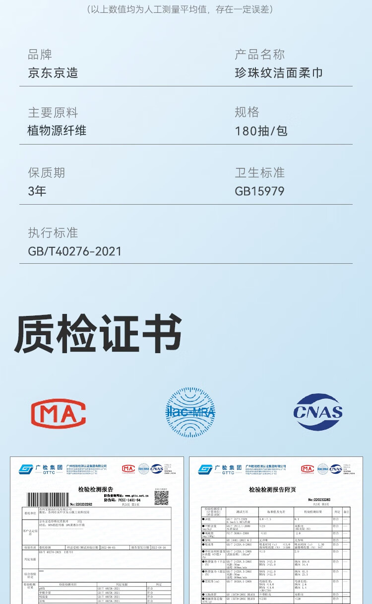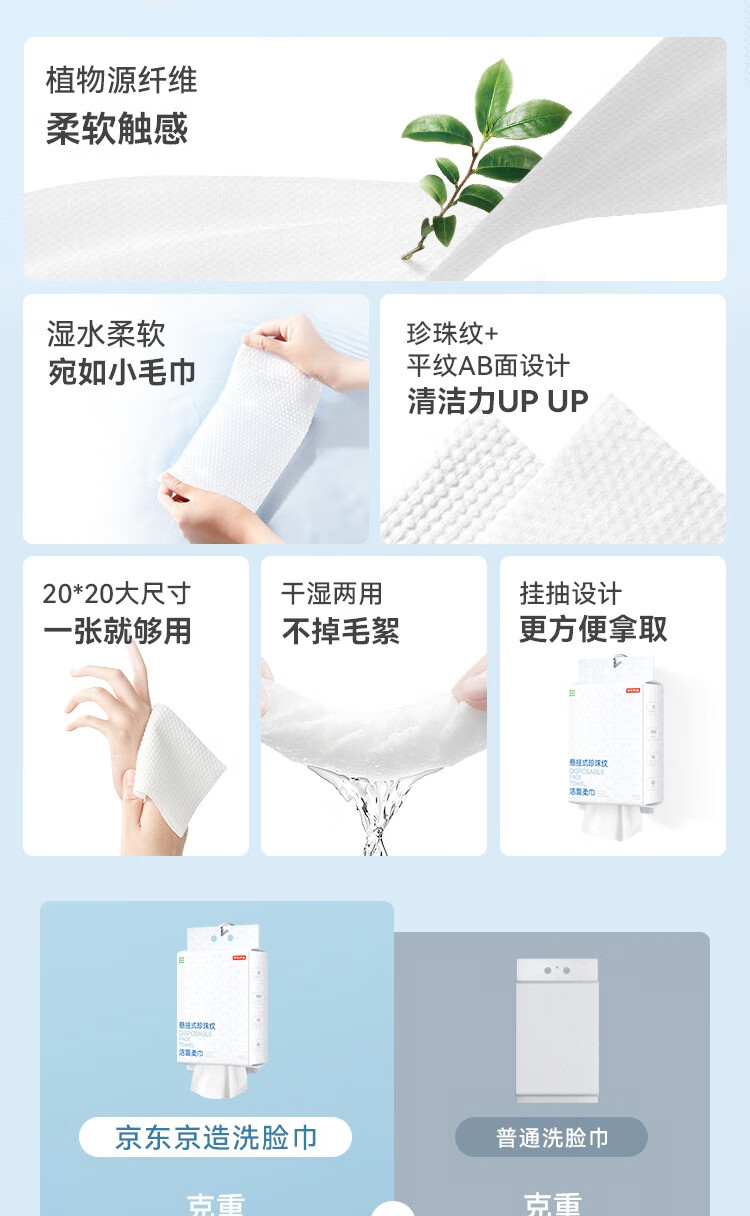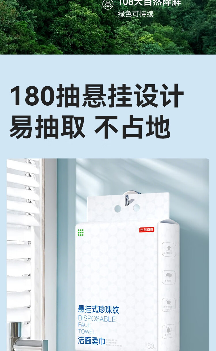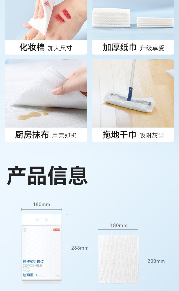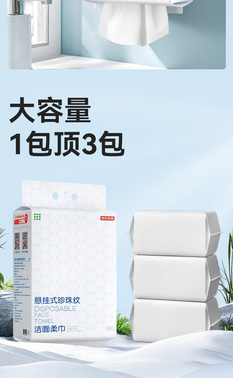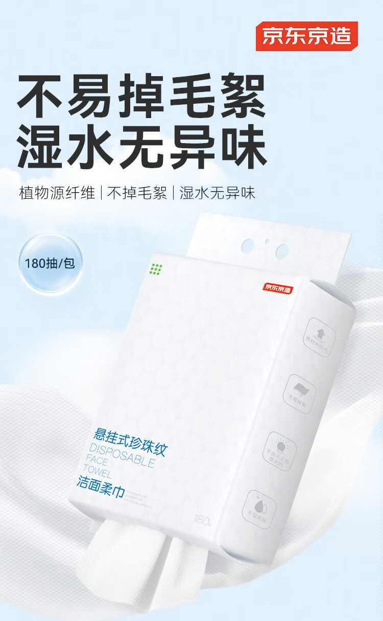 京东京造悬挂珍珠纹洗脸巾180抽/提 加厚一次性抽取式柔肤巾洗脸巾