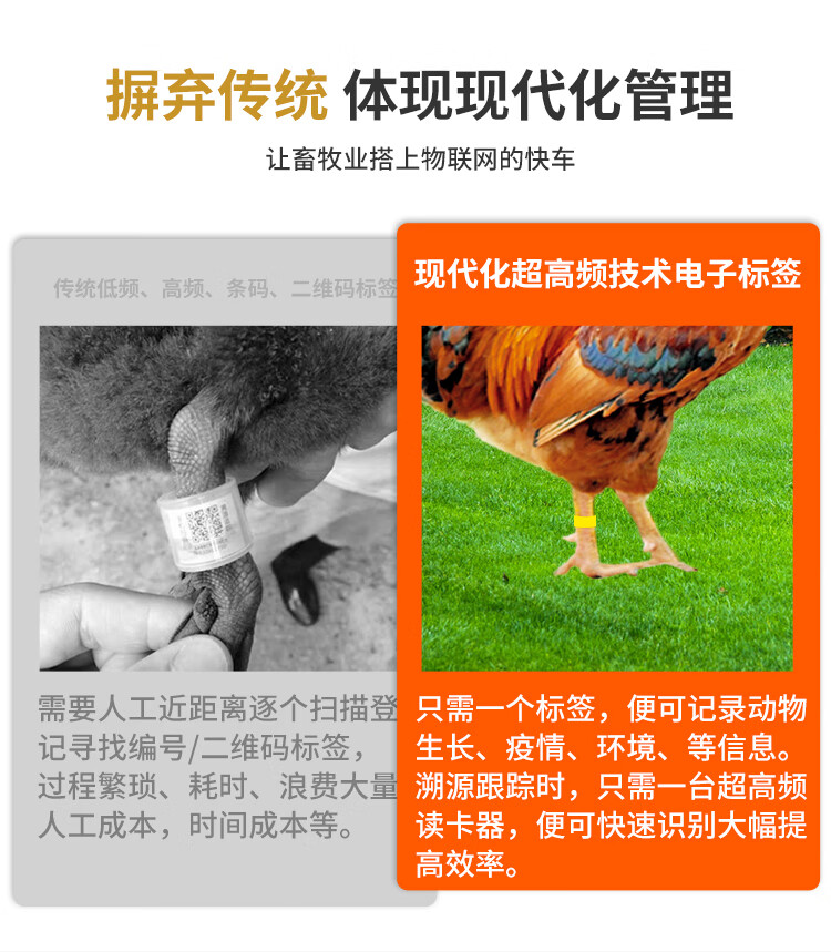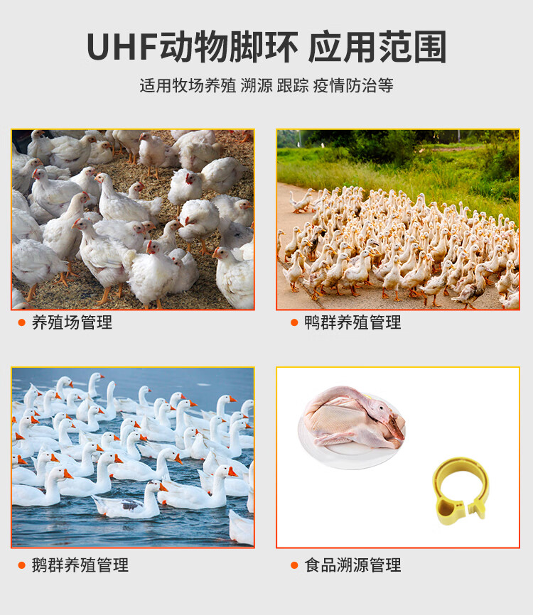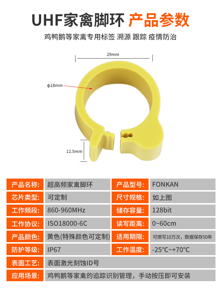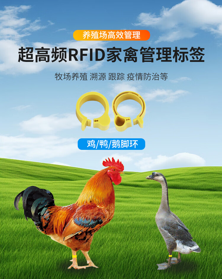 FONKAN 超高频RFID家禽脚环动物电子标签养殖溯源追踪管理rfid电子脚环 超高频家禽脚环 50个