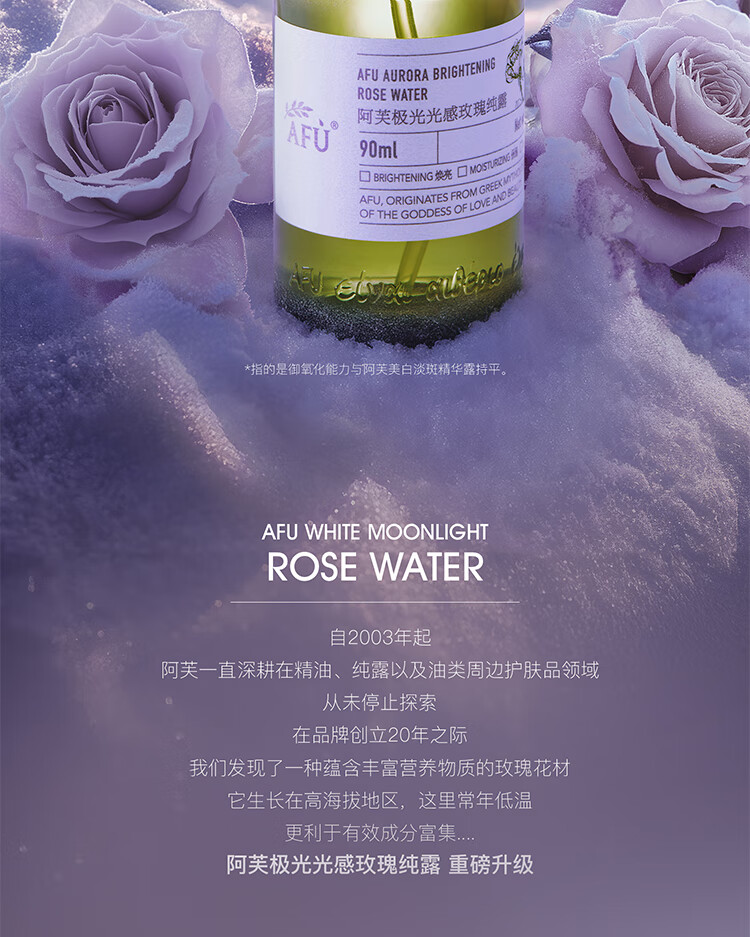 阿芙(AFU)爽肤水 补水保湿极光光感玫瑰纯露90ml