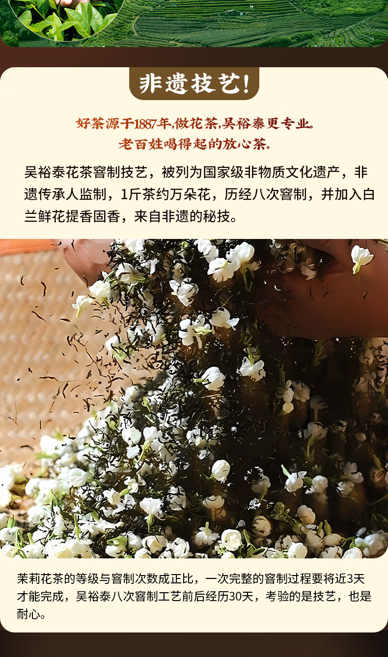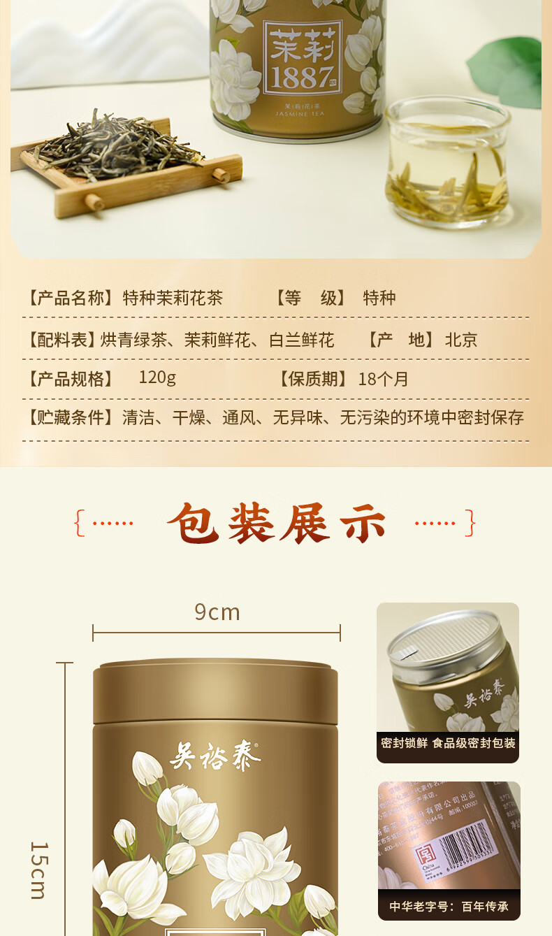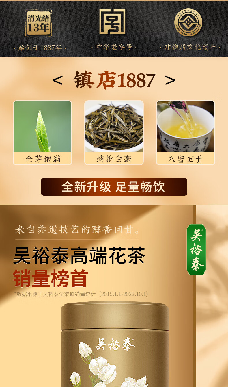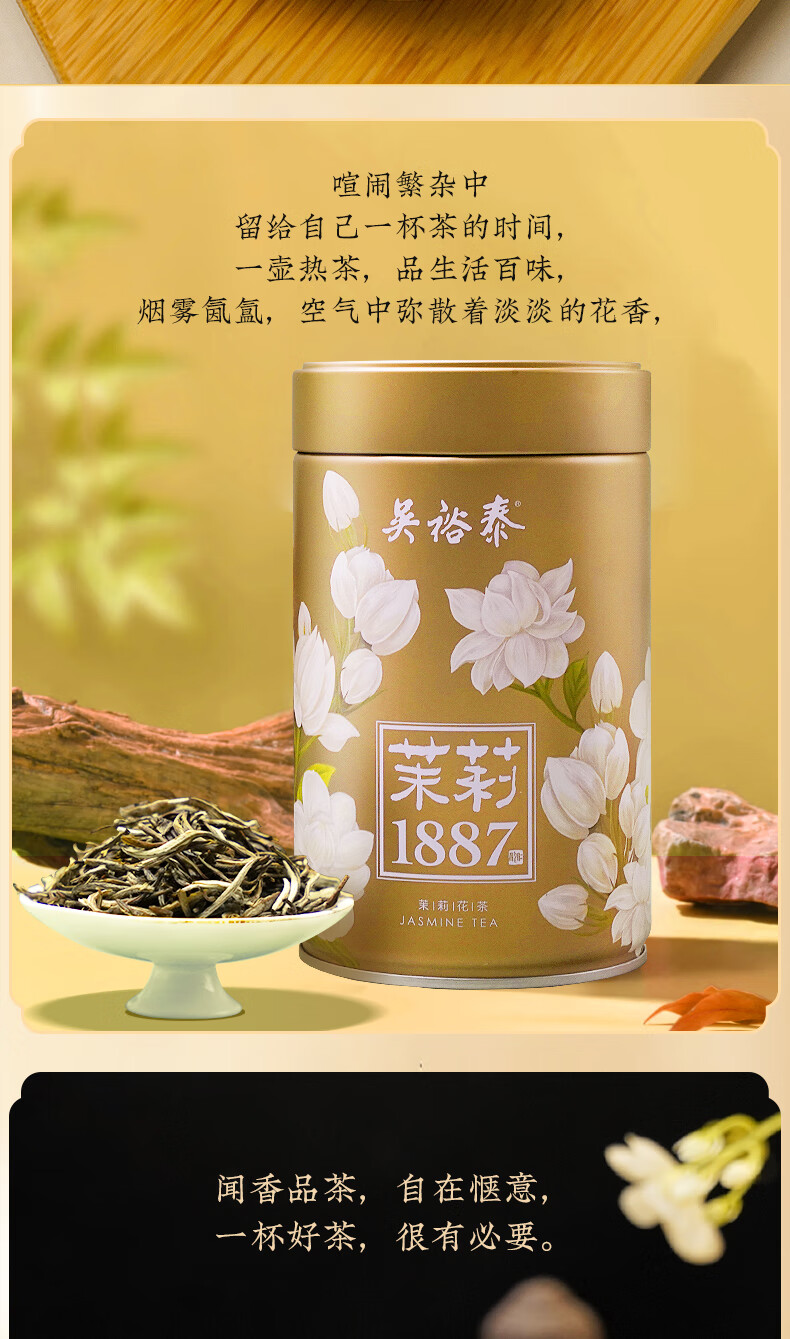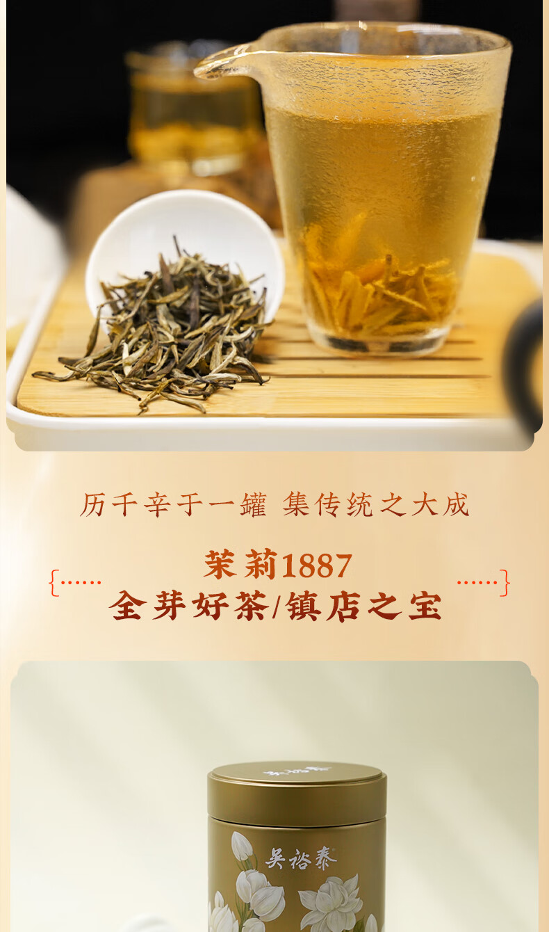 吴裕泰茉莉花茶招牌茉莉1887清香型特种120g八窨大纯芽鲜爽罐装
