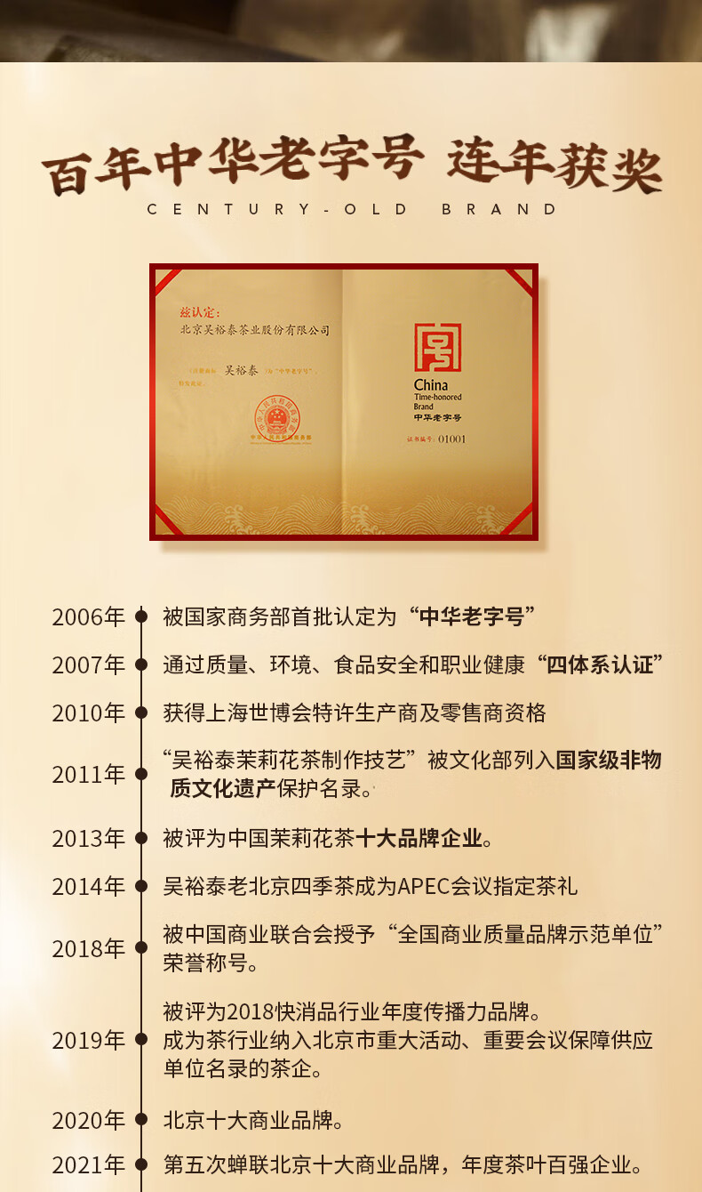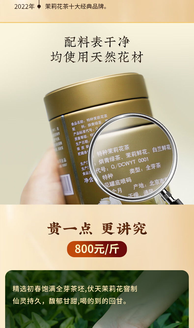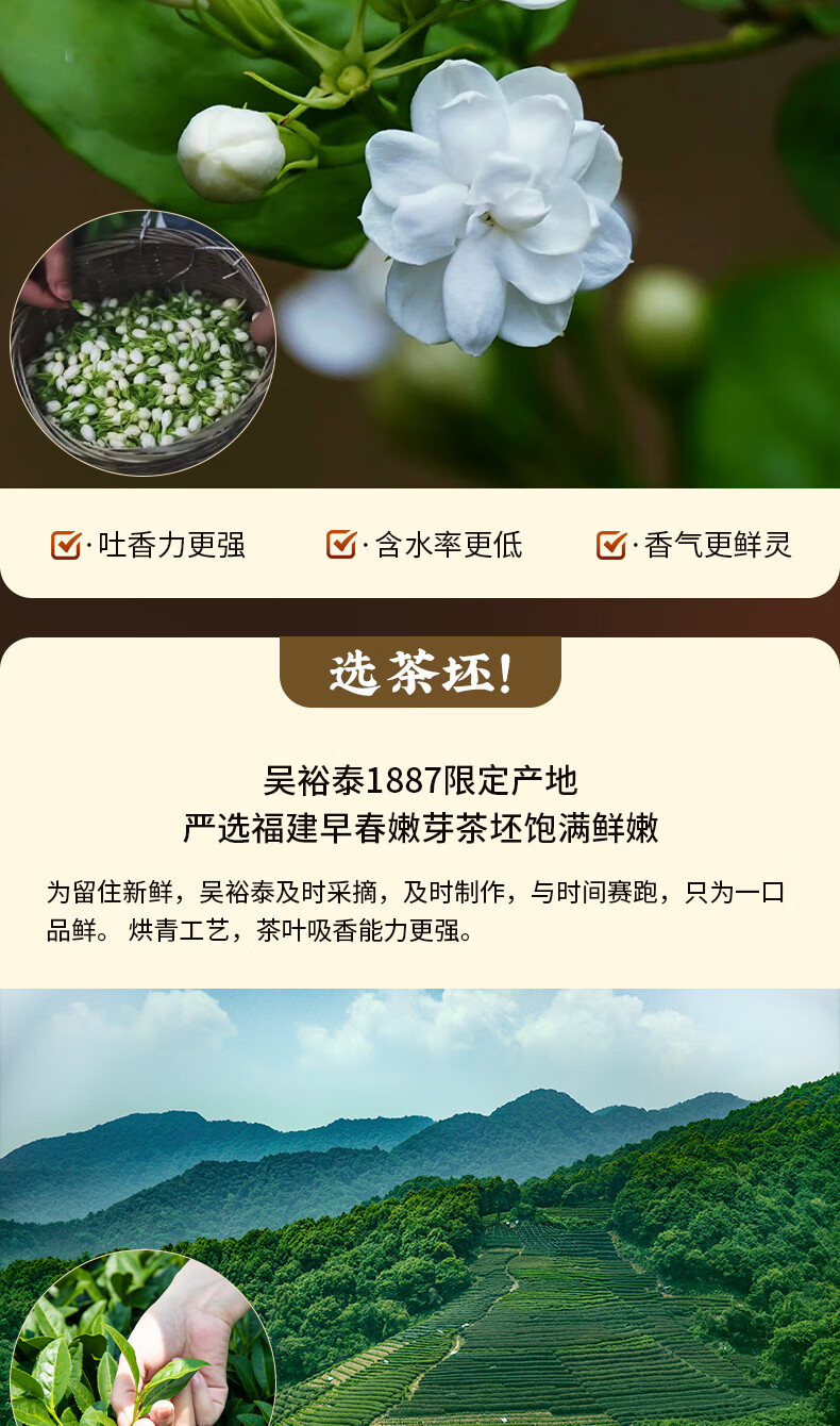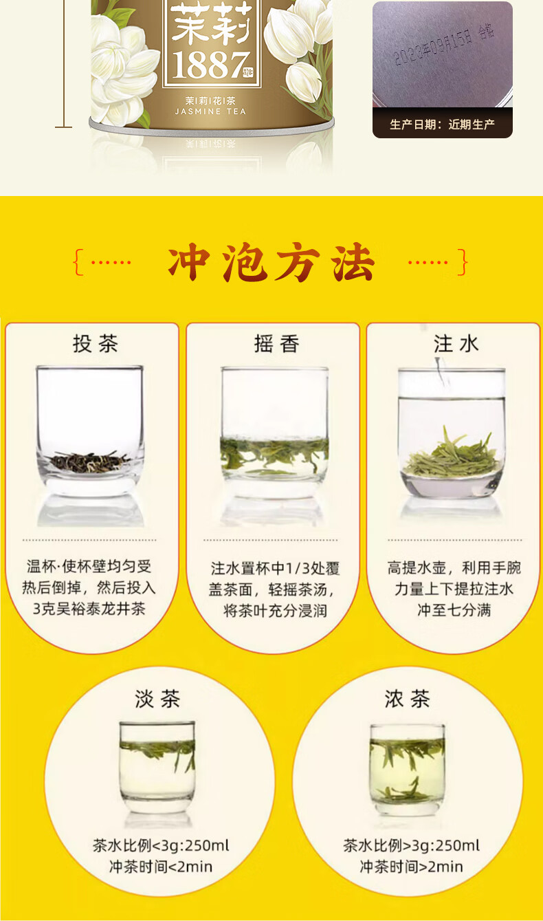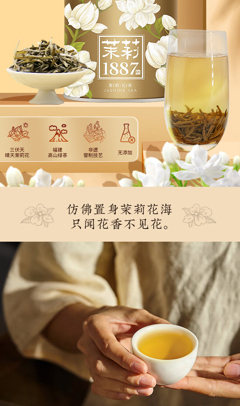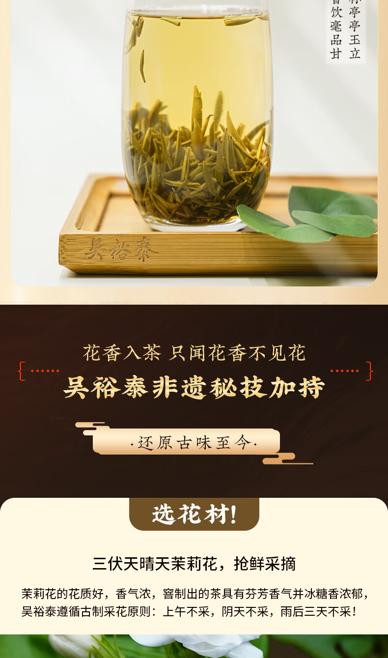 吴裕泰茉莉花茶招牌茉莉1887清香型特种120g八窨大纯芽鲜爽罐装