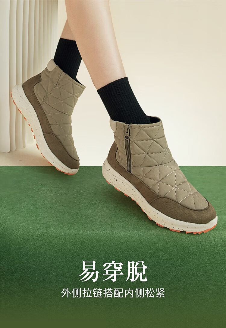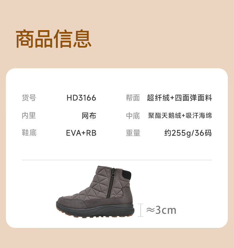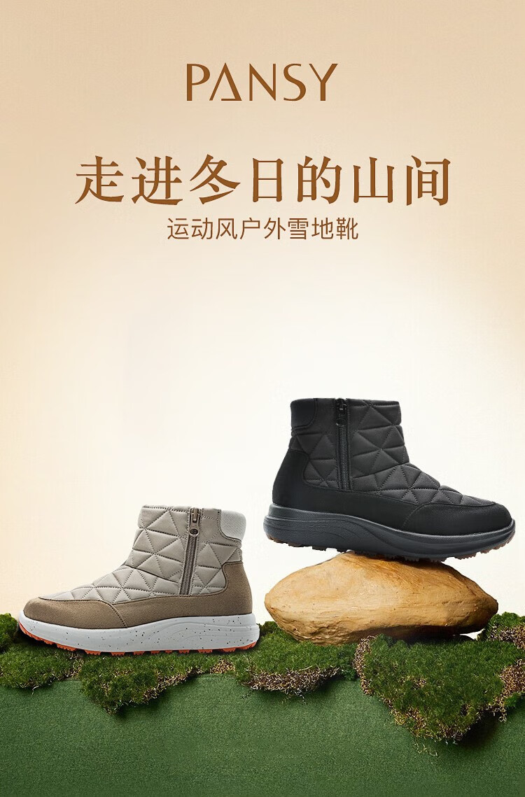 Pansy盼喜日本保暖短靴女冬季户外保暖舒适棉鞋防滑鞋子3166 浅棕色 37