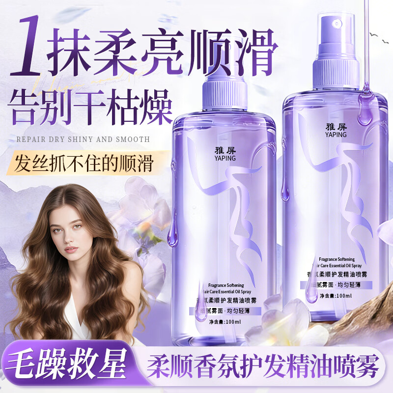 雅屏护发精油喷雾香氛亮泽顺滑修护干枯受损毛躁烫染卷直发持久留香 香氛柔顺护发精油喷雾. 100ml*1瓶