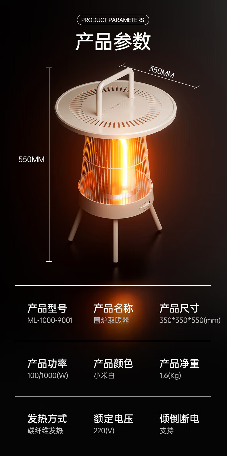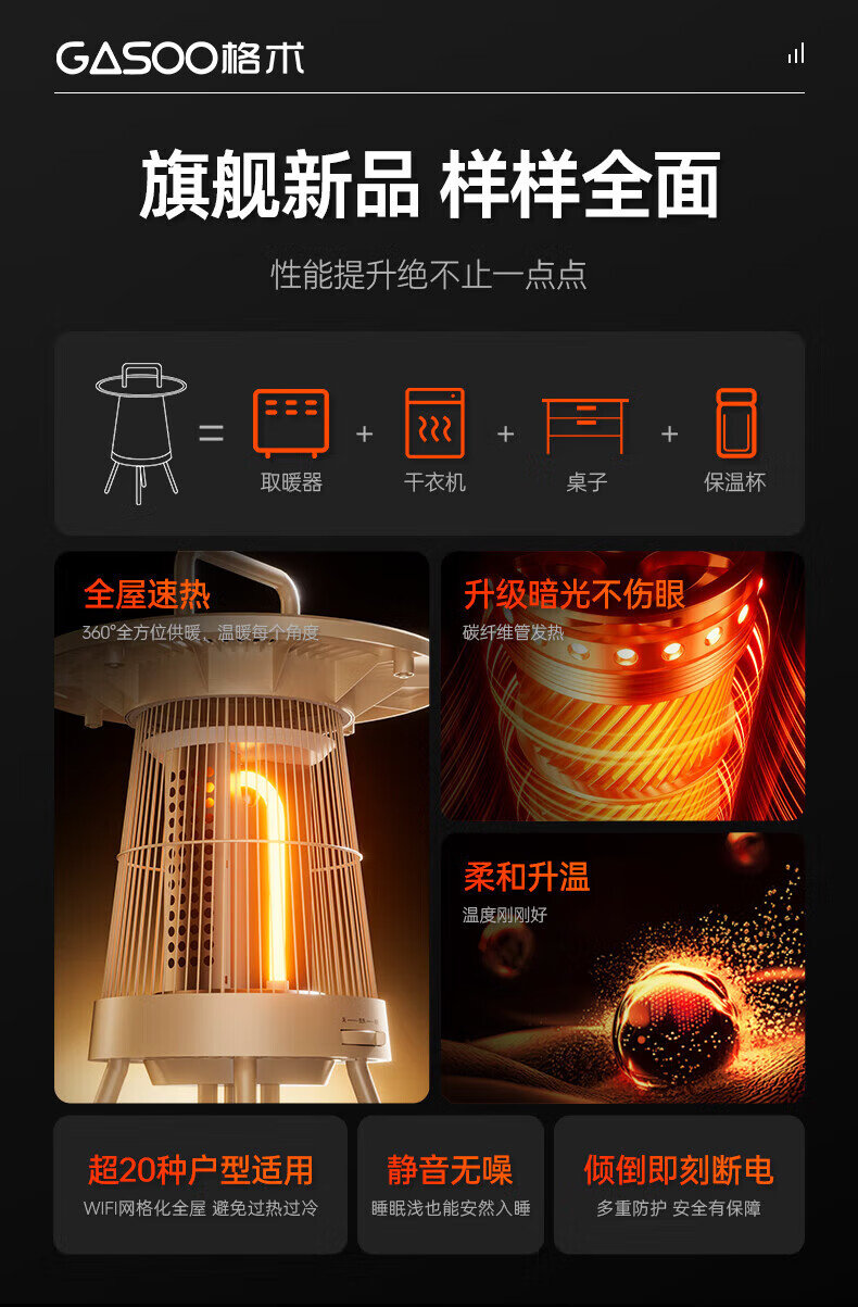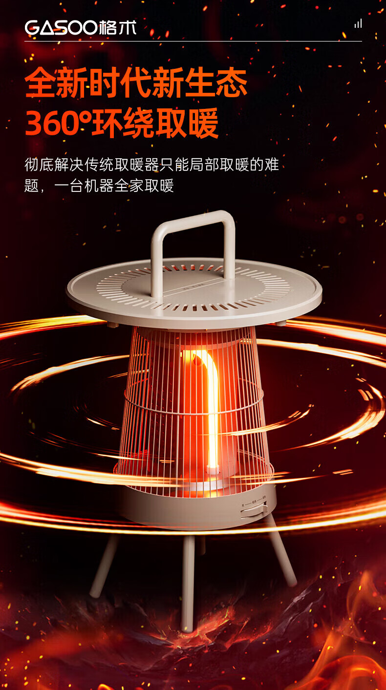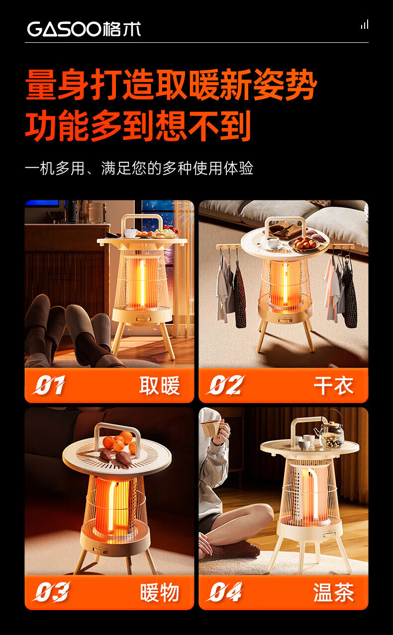 gosoo烤火炉取暖器围炉煮茶桌取暖炉电暖器家用暖风小太阳电热电暖气