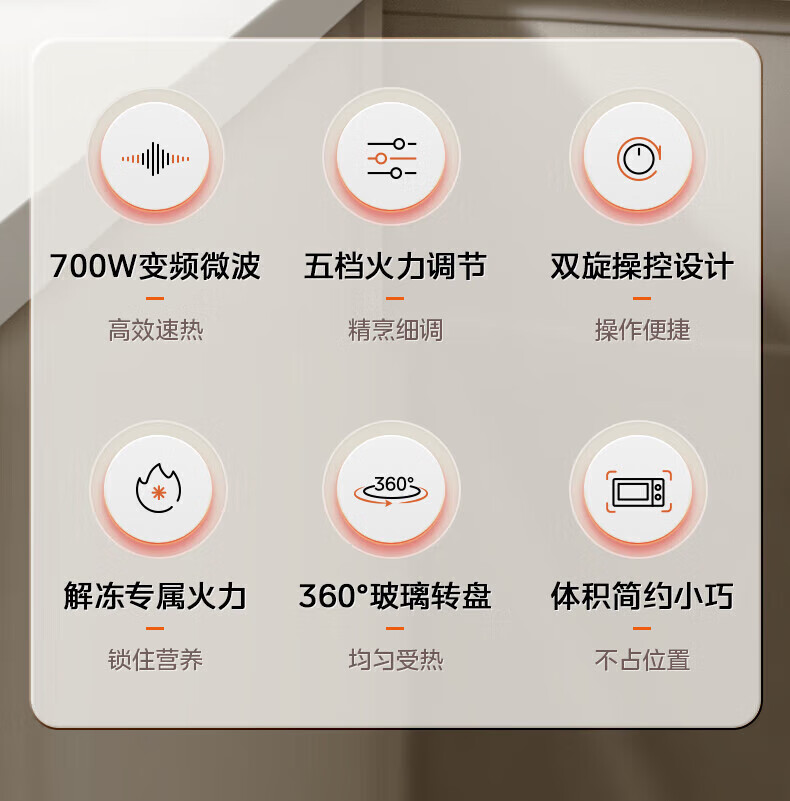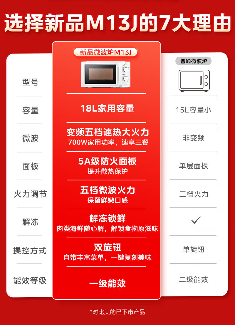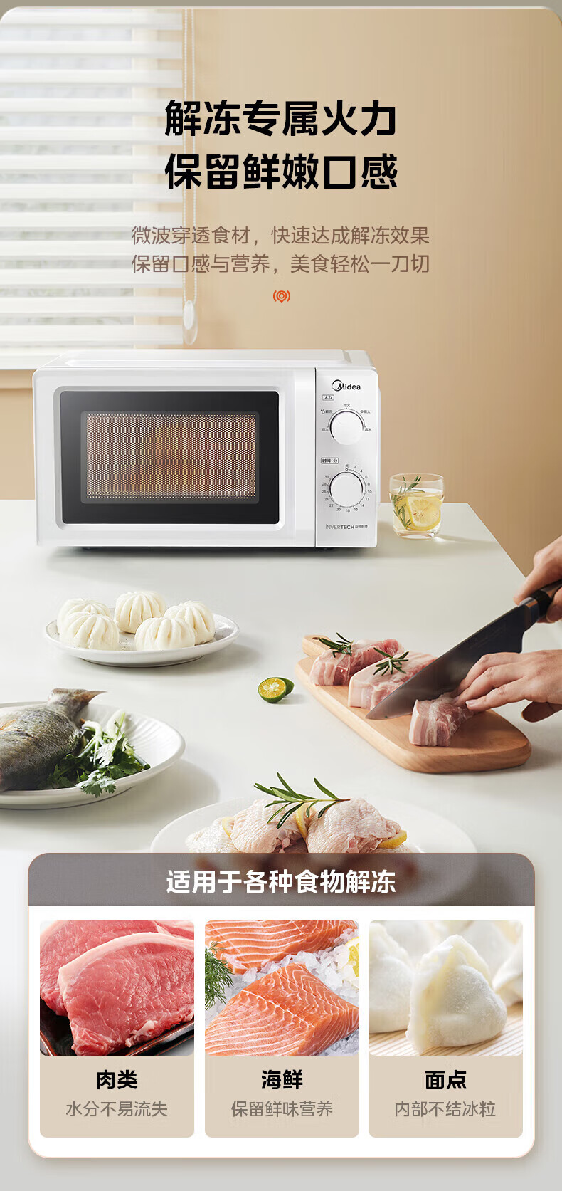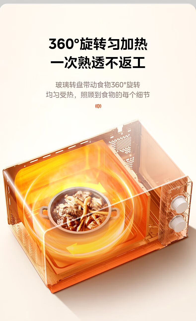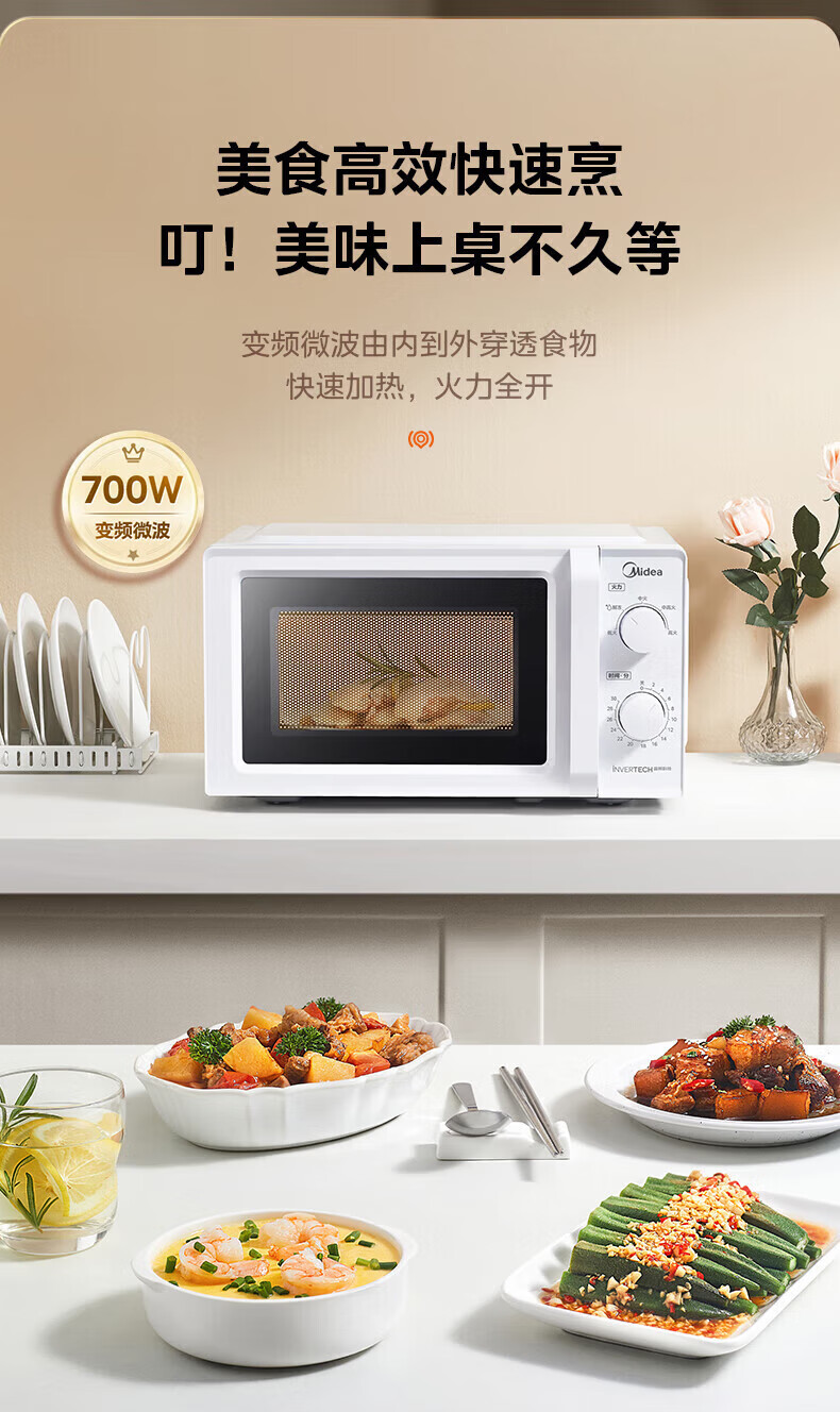美的(Midea)家用小型快捷微波炉 双旋钮操控 一节能效五档火力 智能解冻360°旋转加热 (213B升级款) M13J 乳白色 M13J