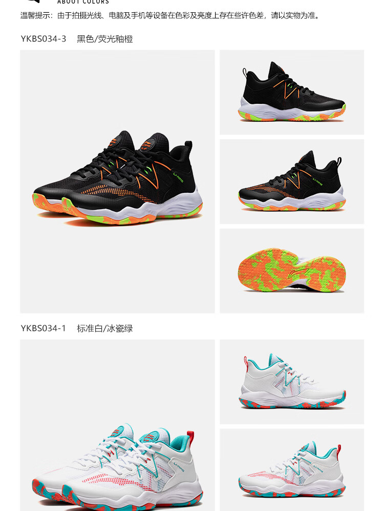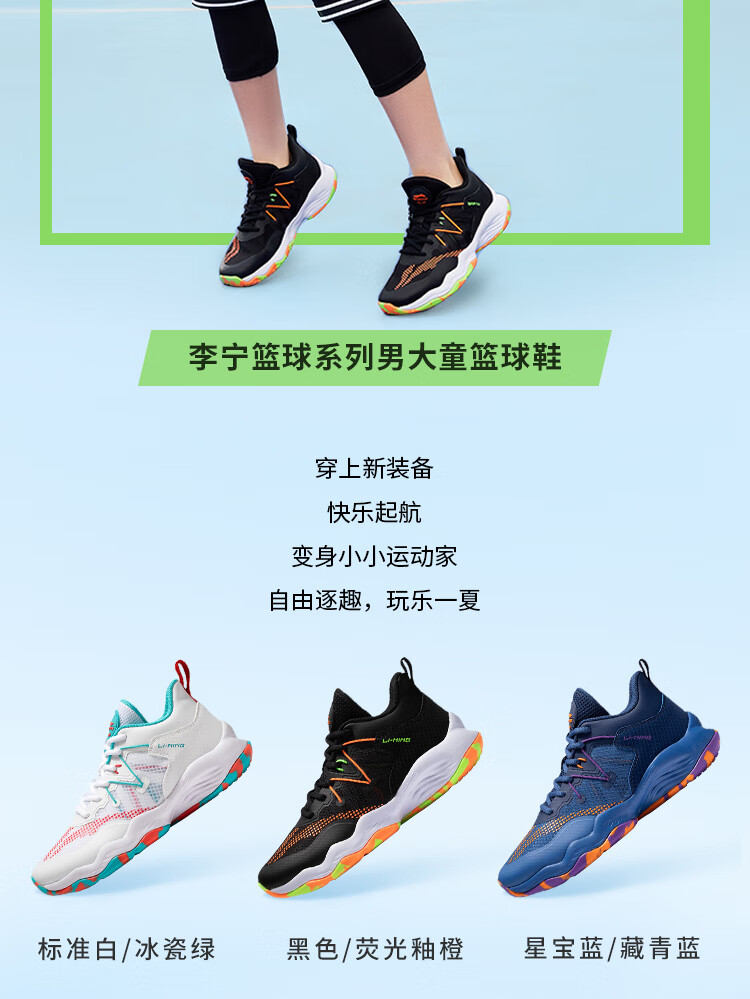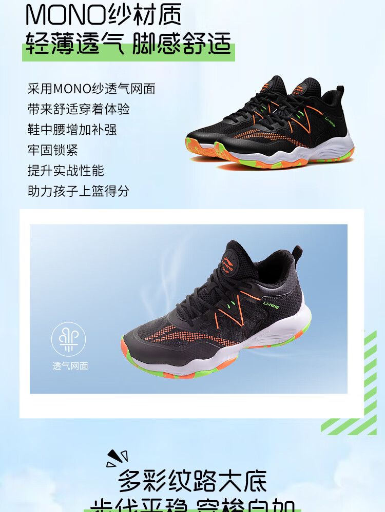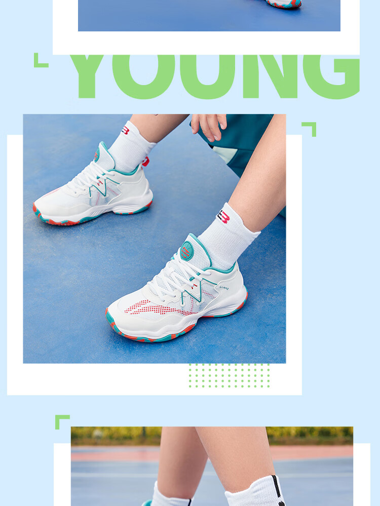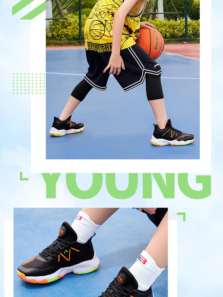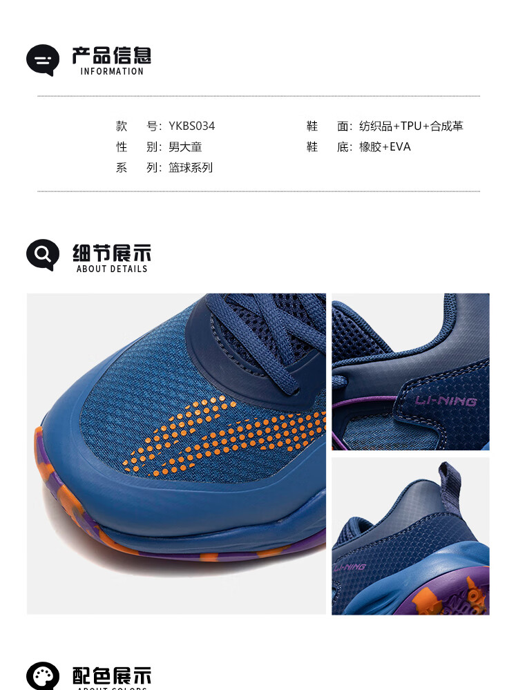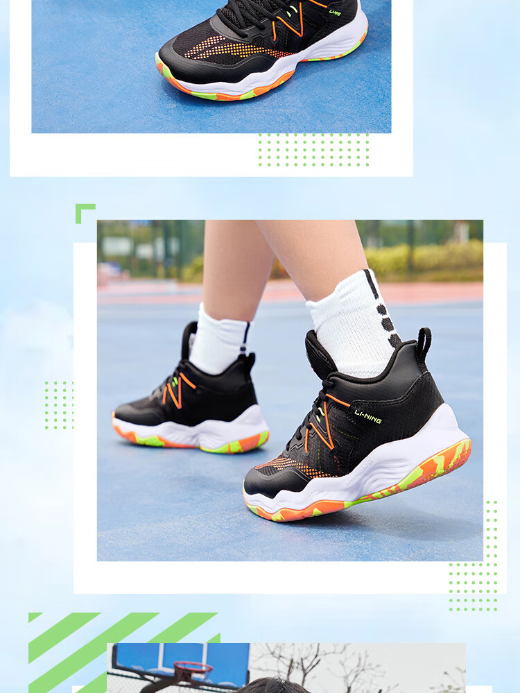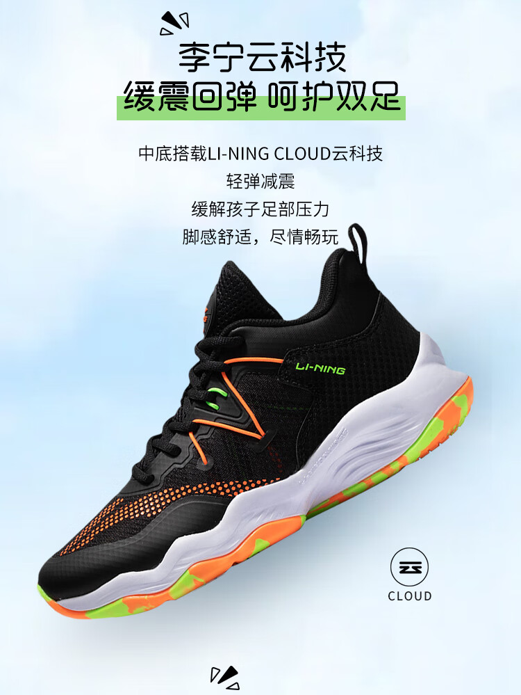 李宁童鞋儿童篮球鞋男大童云科技减震回弹舒适运动鞋36YKBS034-19