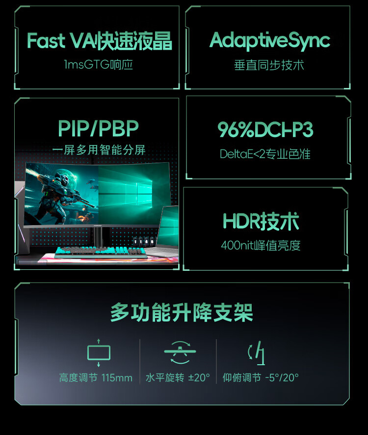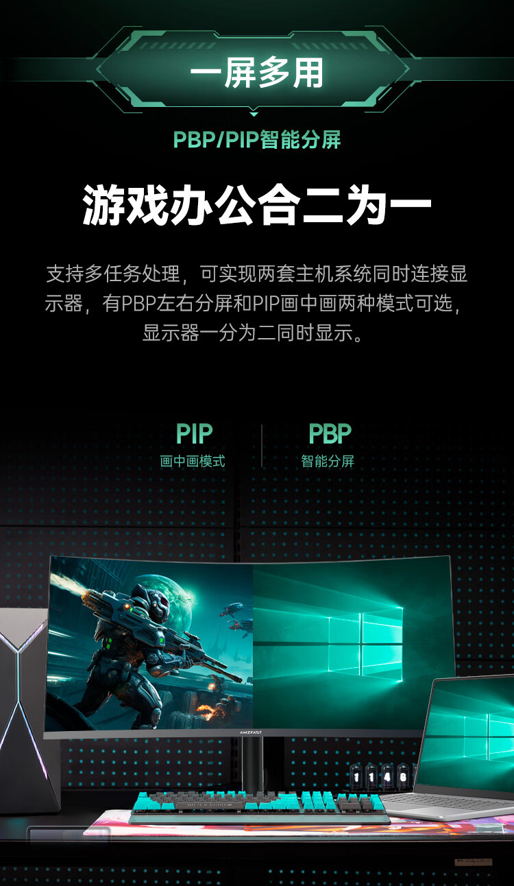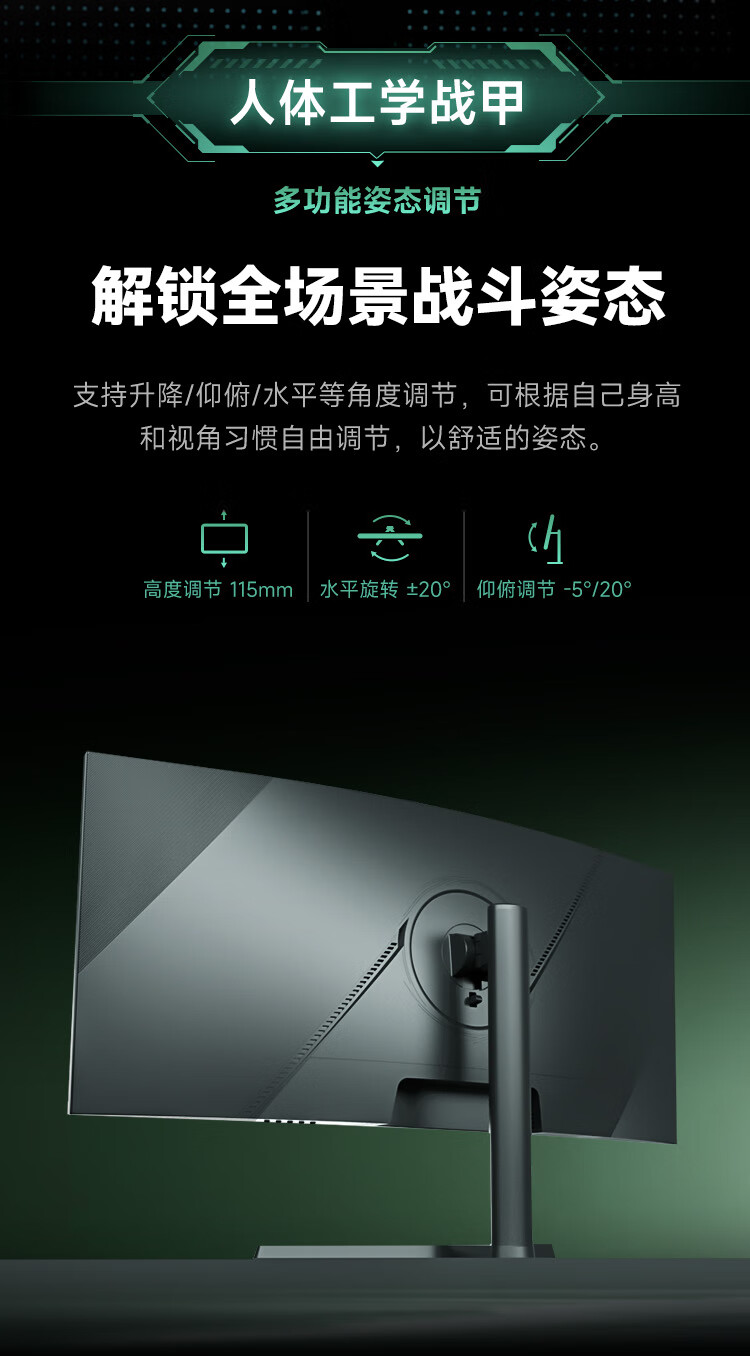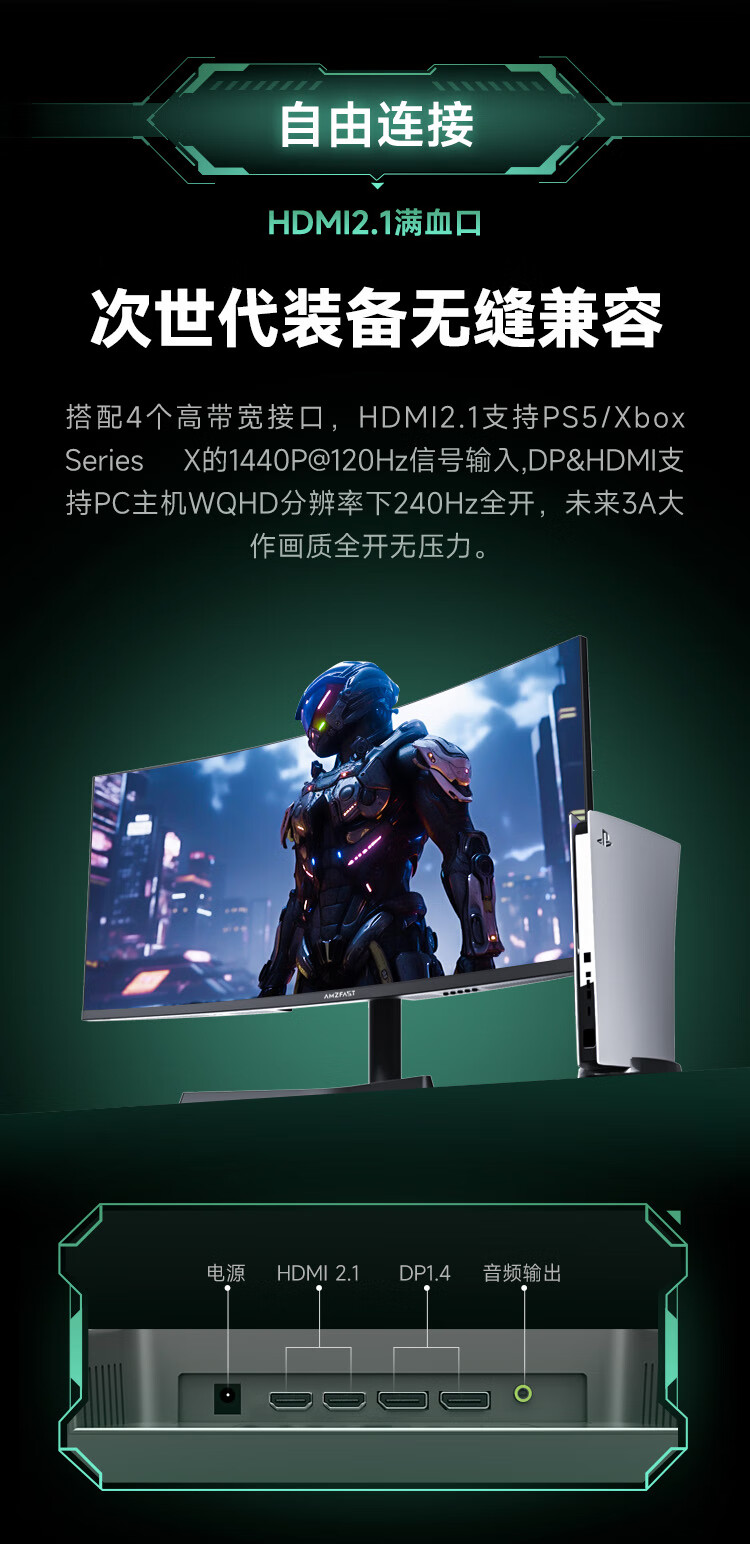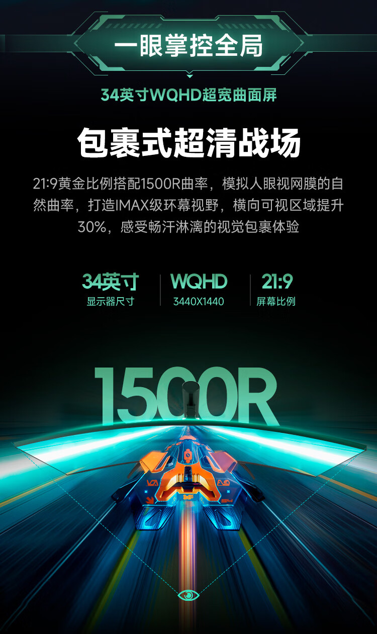 AMZFAST 34英寸WQHD带鱼屏 240Hz满血电竞FastVA 准4K 1500R曲面 AI算法办公游戏升降旋转显示器 锋锐34C5