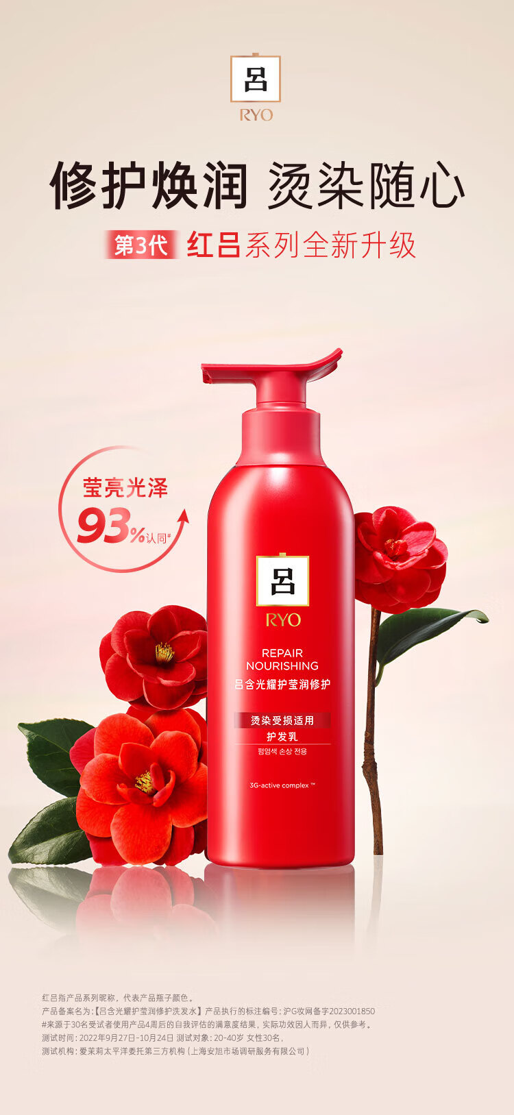吕(Ryo)红吕修护损伤护发素改善毛躁柔顺亮泽护发乳400ml