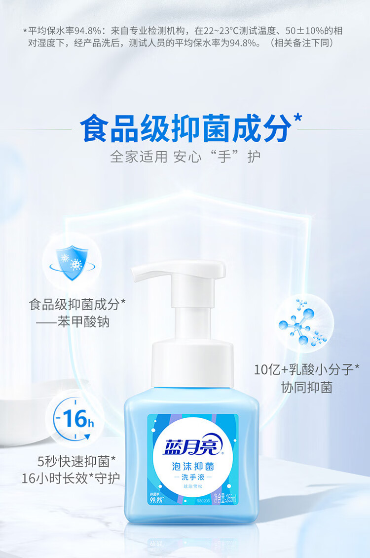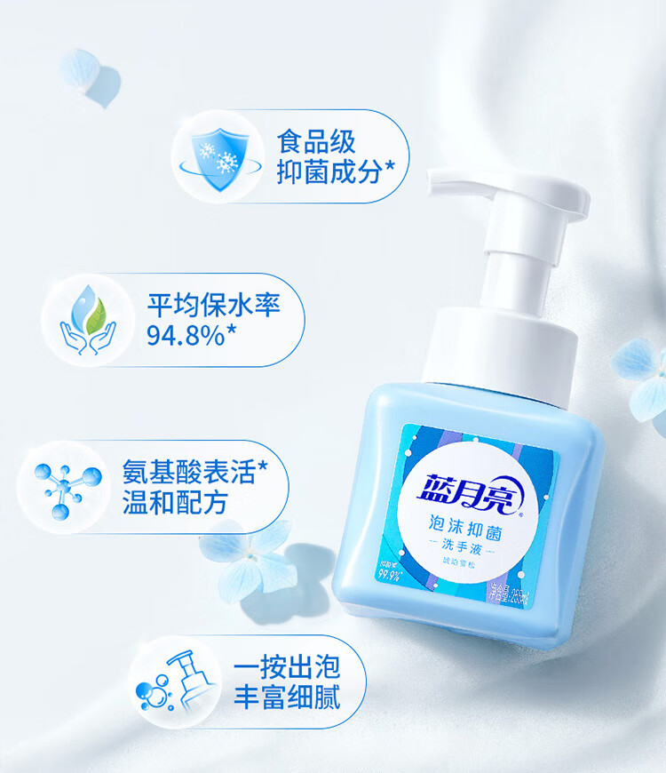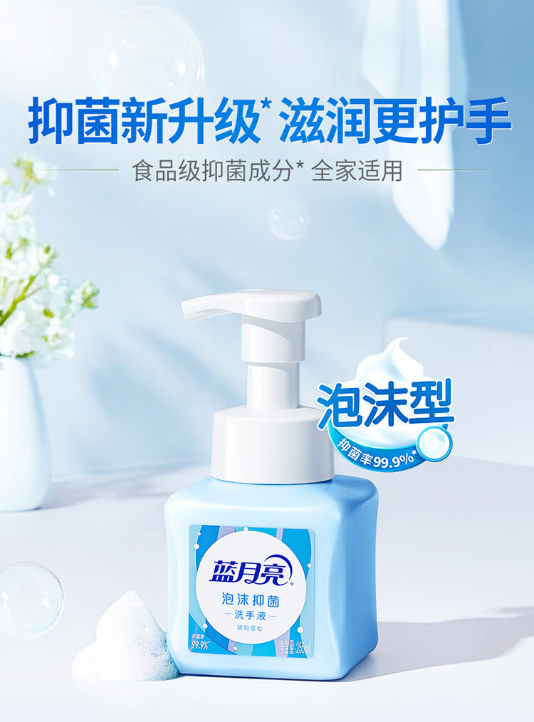 蓝月亮 泡沫抑菌洗手液 琥珀雪松香型 99.9%抑菌率 保湿水润 儿童可用 255ml*1瓶
