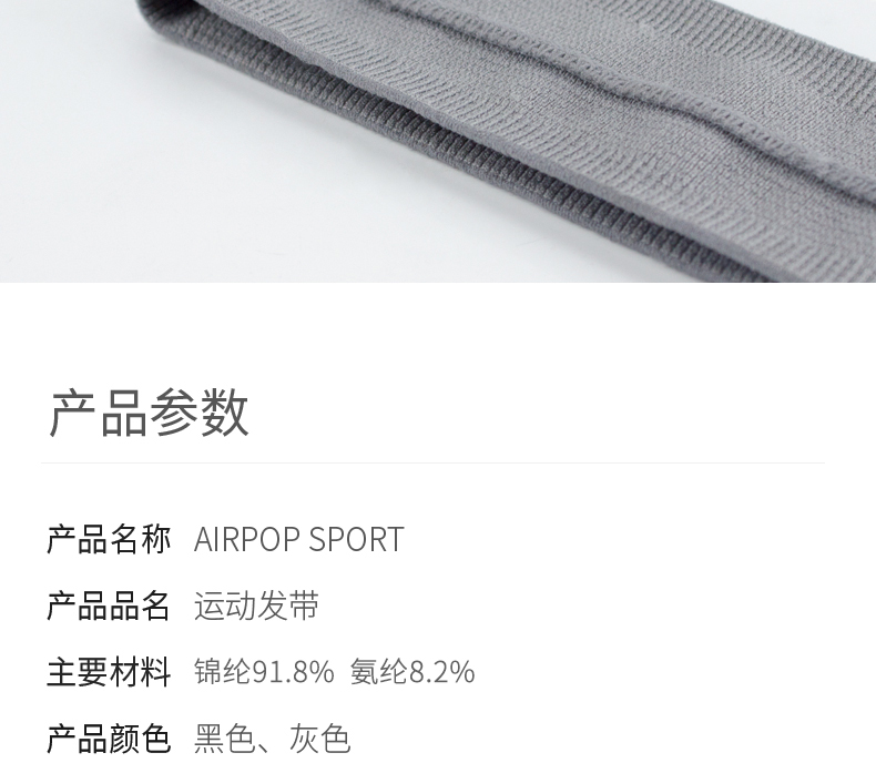 AIRPOP运动吸汗带头带男女通用网球篮球护额头箍跑步头巾导汗带擦汗健身 【灰色】透气吸汗+时尚美观
