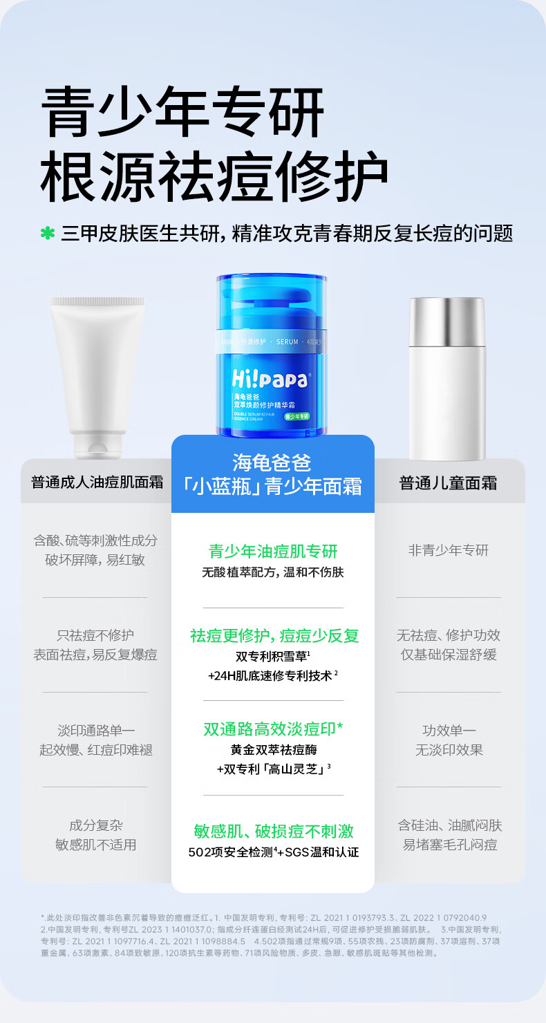 海龟爸爸儿童面霜青少年护肤品男女孩滋润保湿秋冬祛痘小蓝瓶50g
