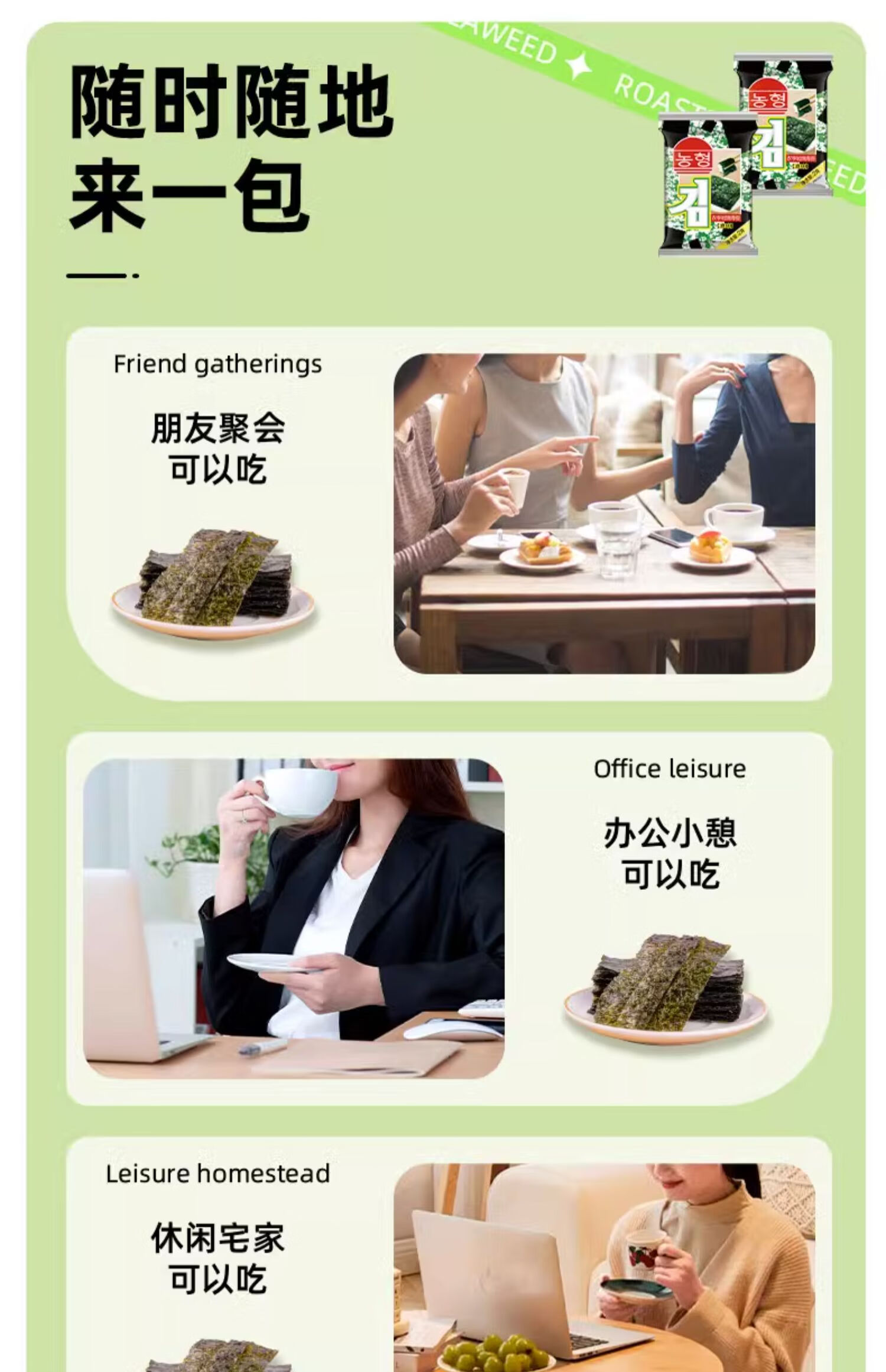 农亨原味岩烧海苔片16g 即食海苔寿司香脆紫菜片儿童零食小吃2g*8小包