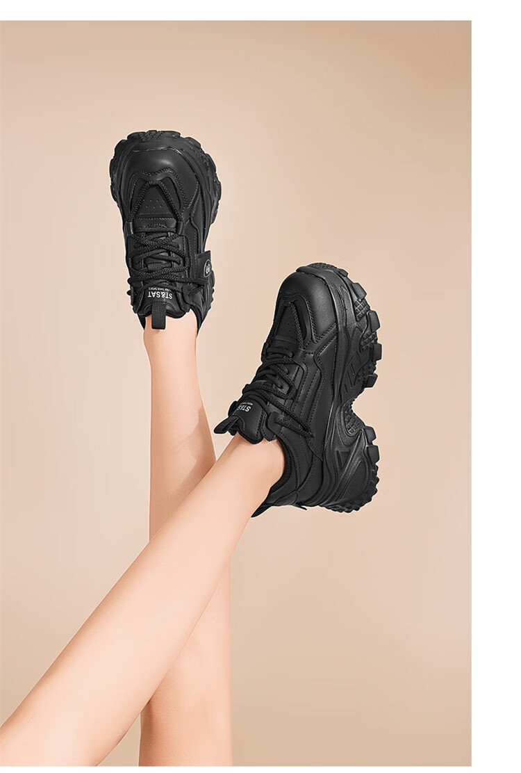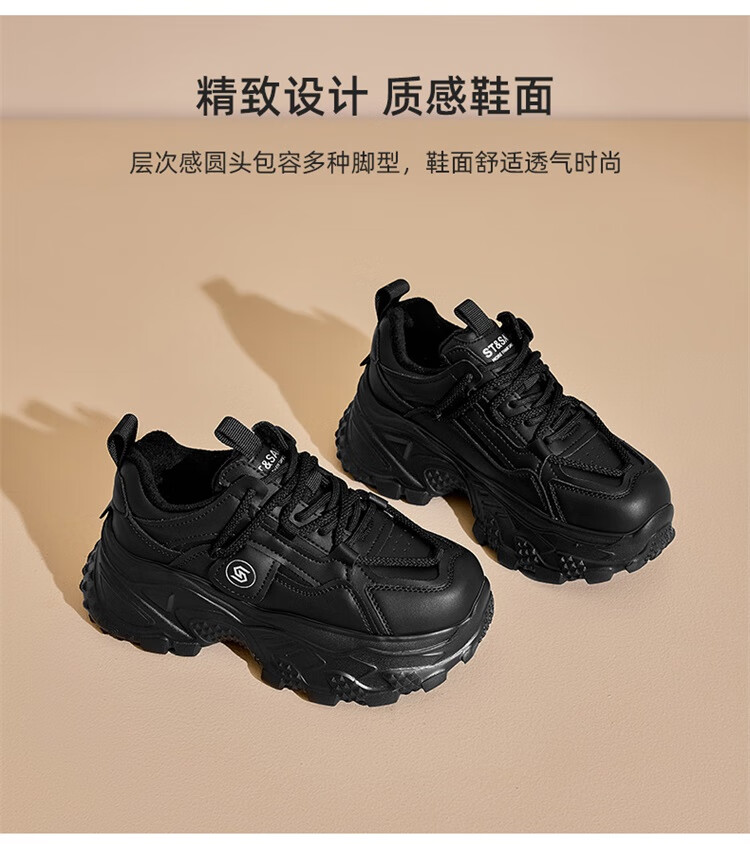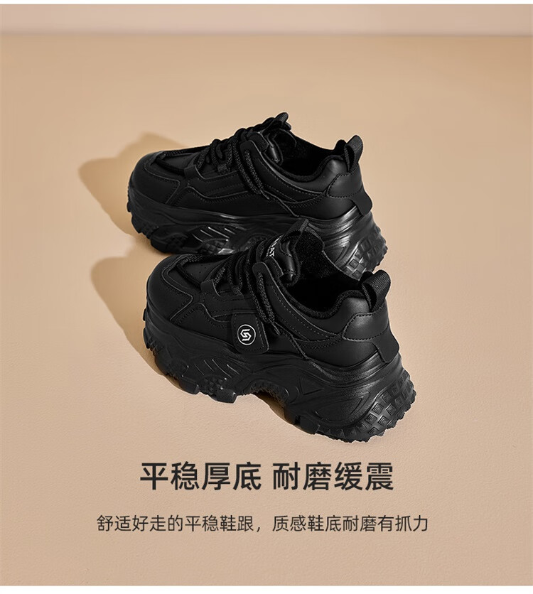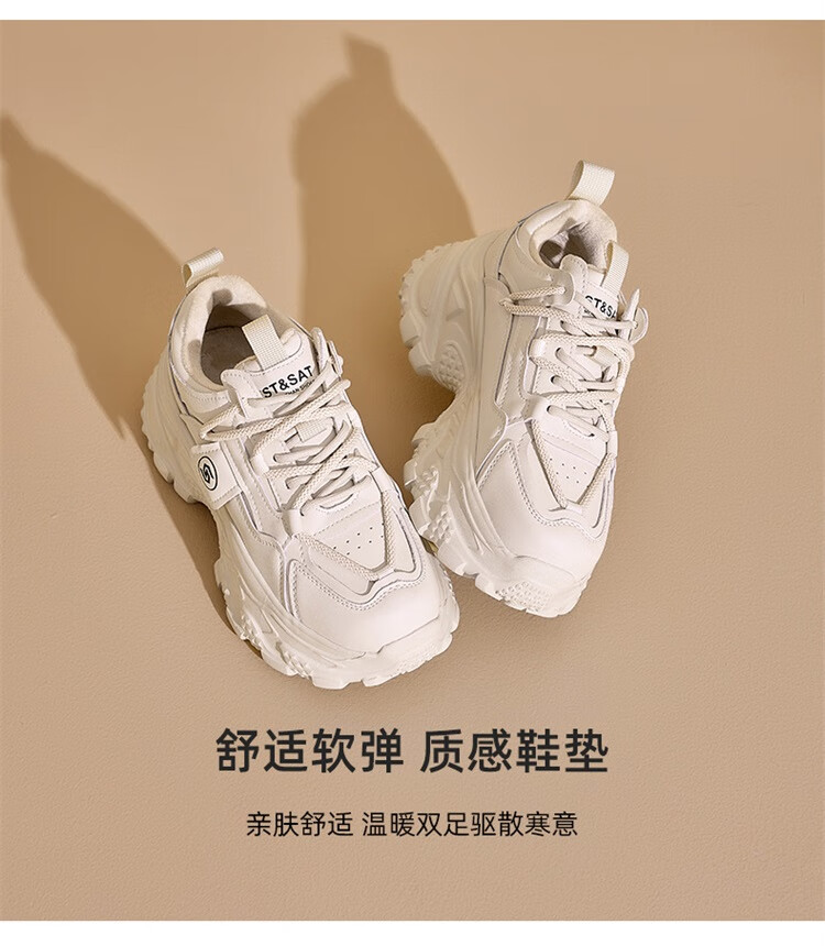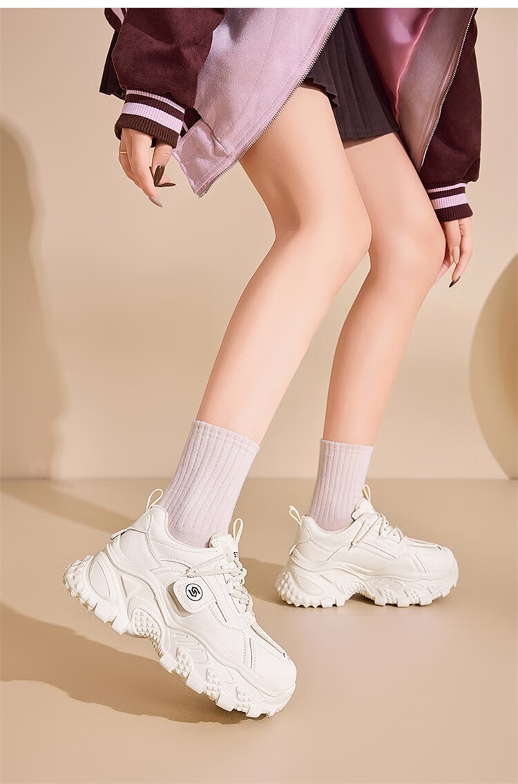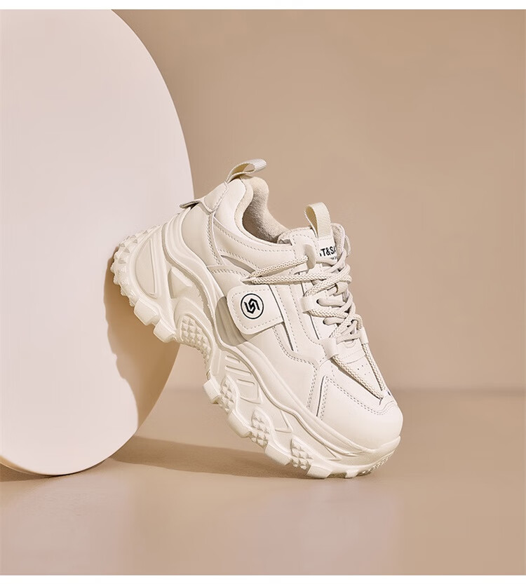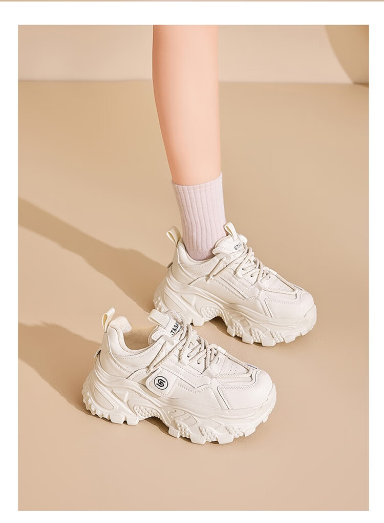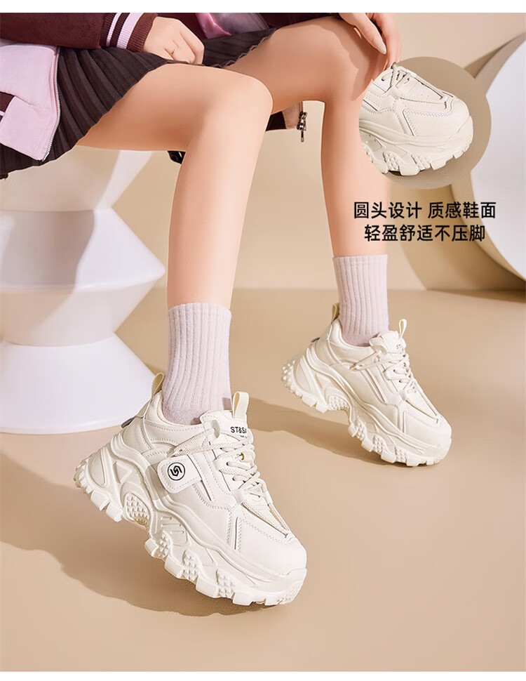 星期六厚底老爹鞋女款2025新款秋季增高女鞋百搭松糕底休闲运动鞋 米白 35