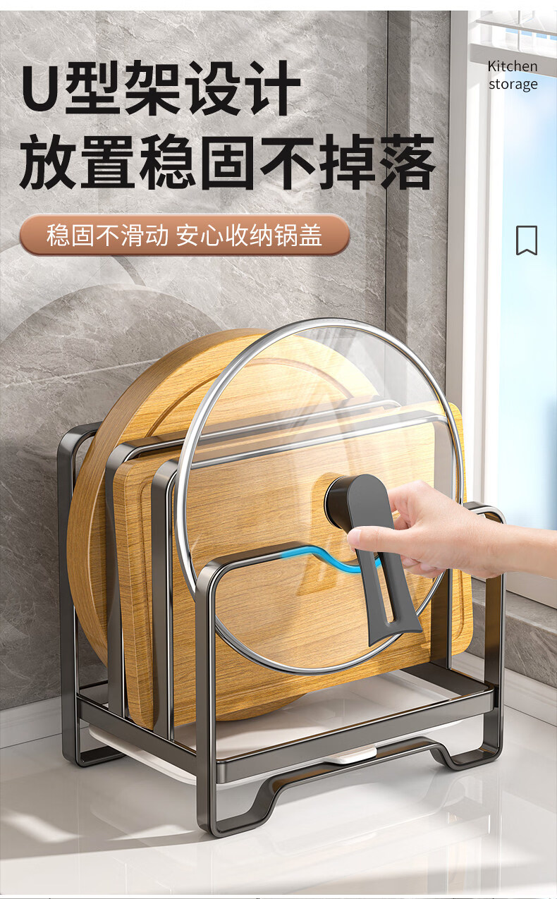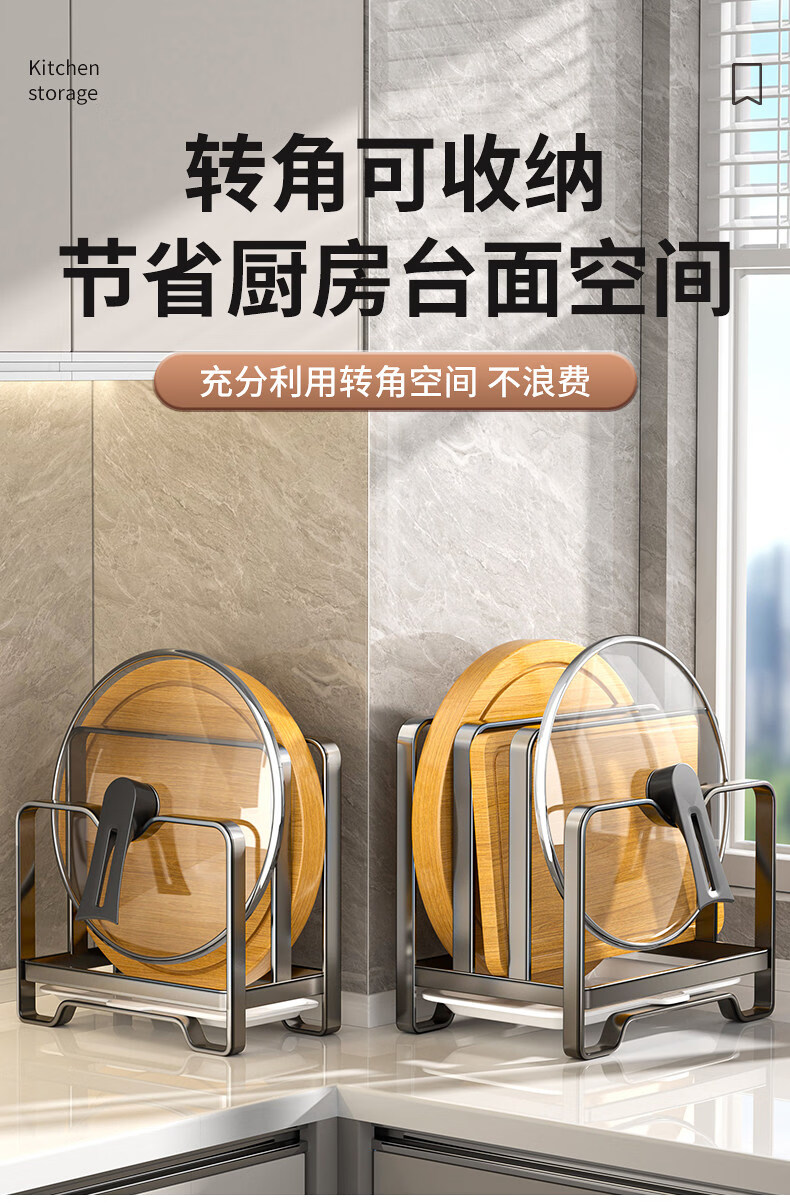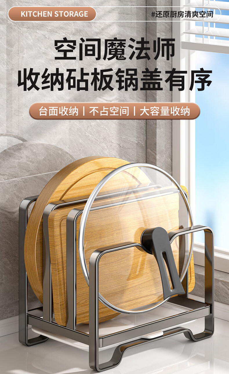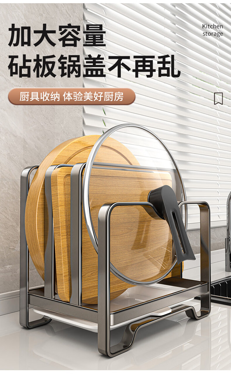 馨婺家不锈钢锅盖架菜板架多功能厨房置物架台面砧板切菜板收纳沥水架子 枪灰色-单层【不锈钢款】