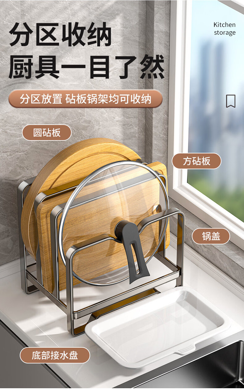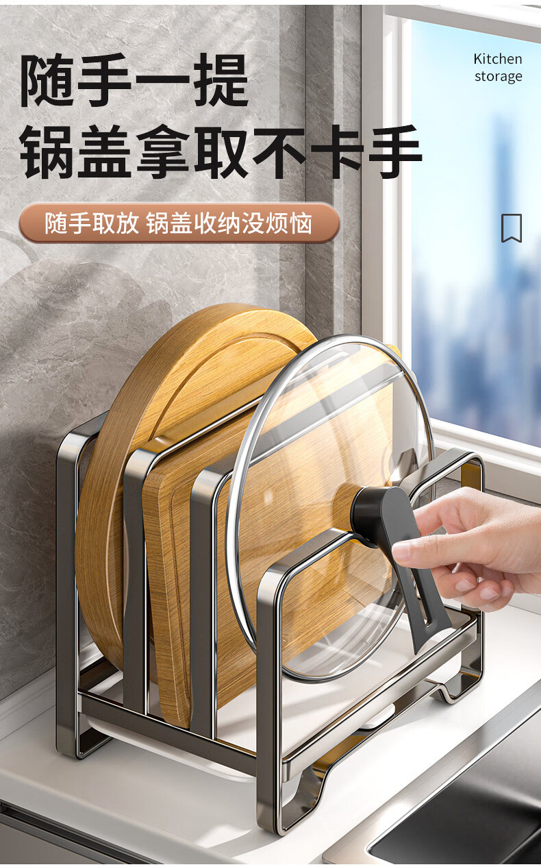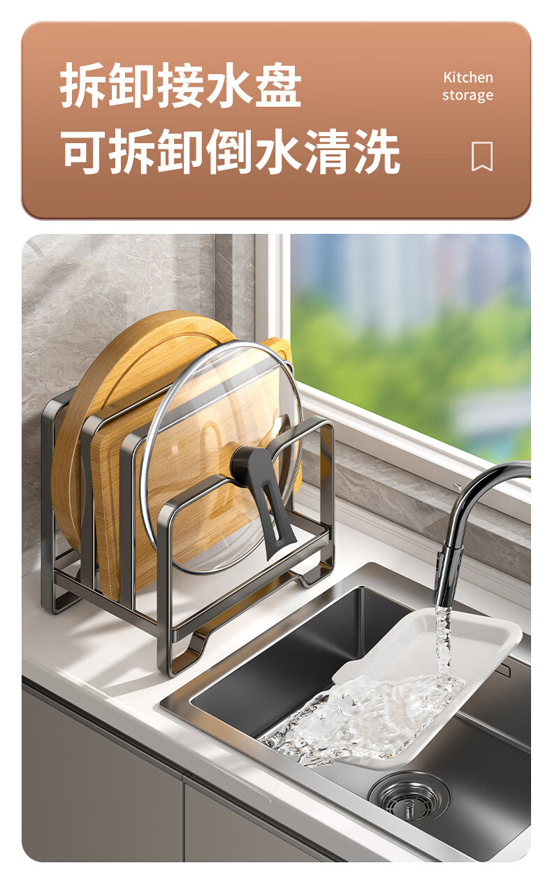 馨婺家不锈钢锅盖架菜板架多功能厨房置物架台面砧板切菜板收纳沥水架子 枪灰色-单层【不锈钢款】