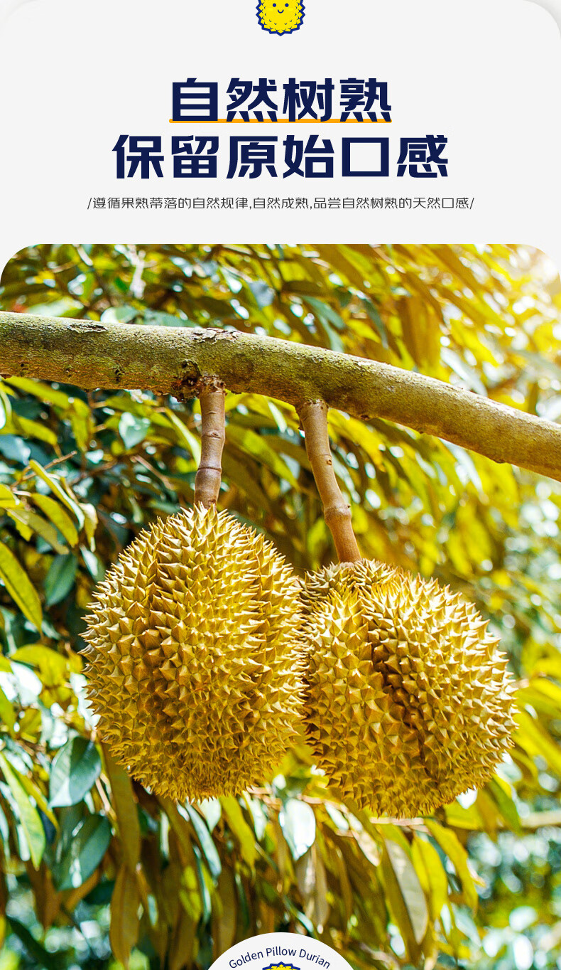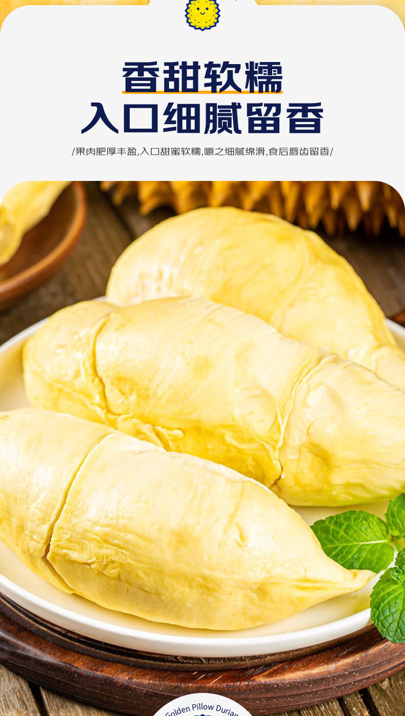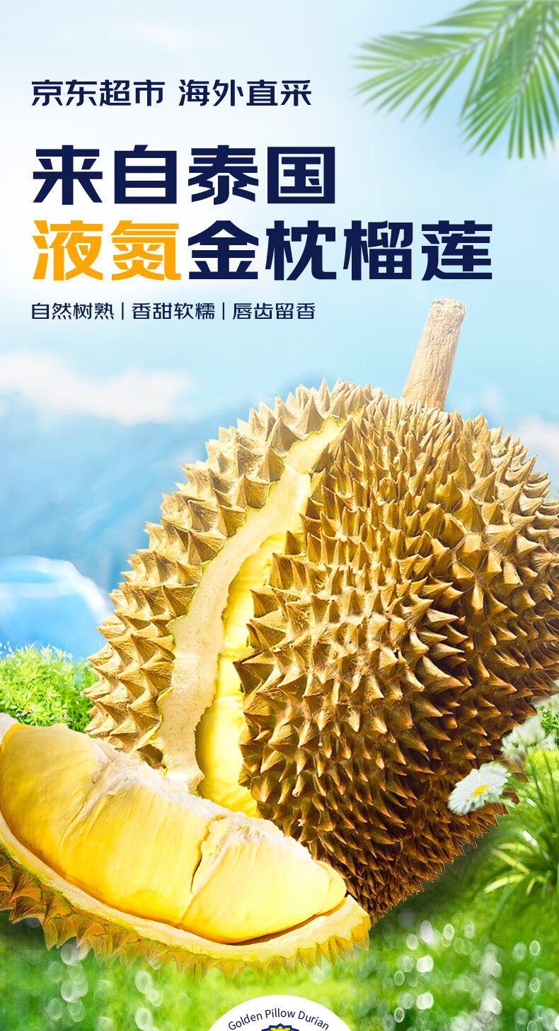 京鲜生泰国金枕榴莲3-4斤保3.5房树熟液氮冷冻新鲜进口生鲜水果礼盒