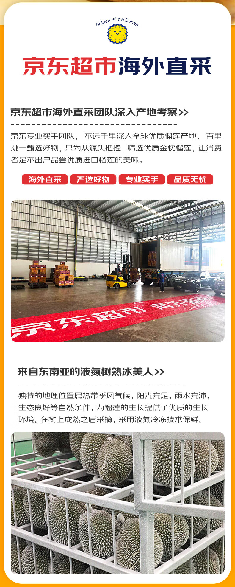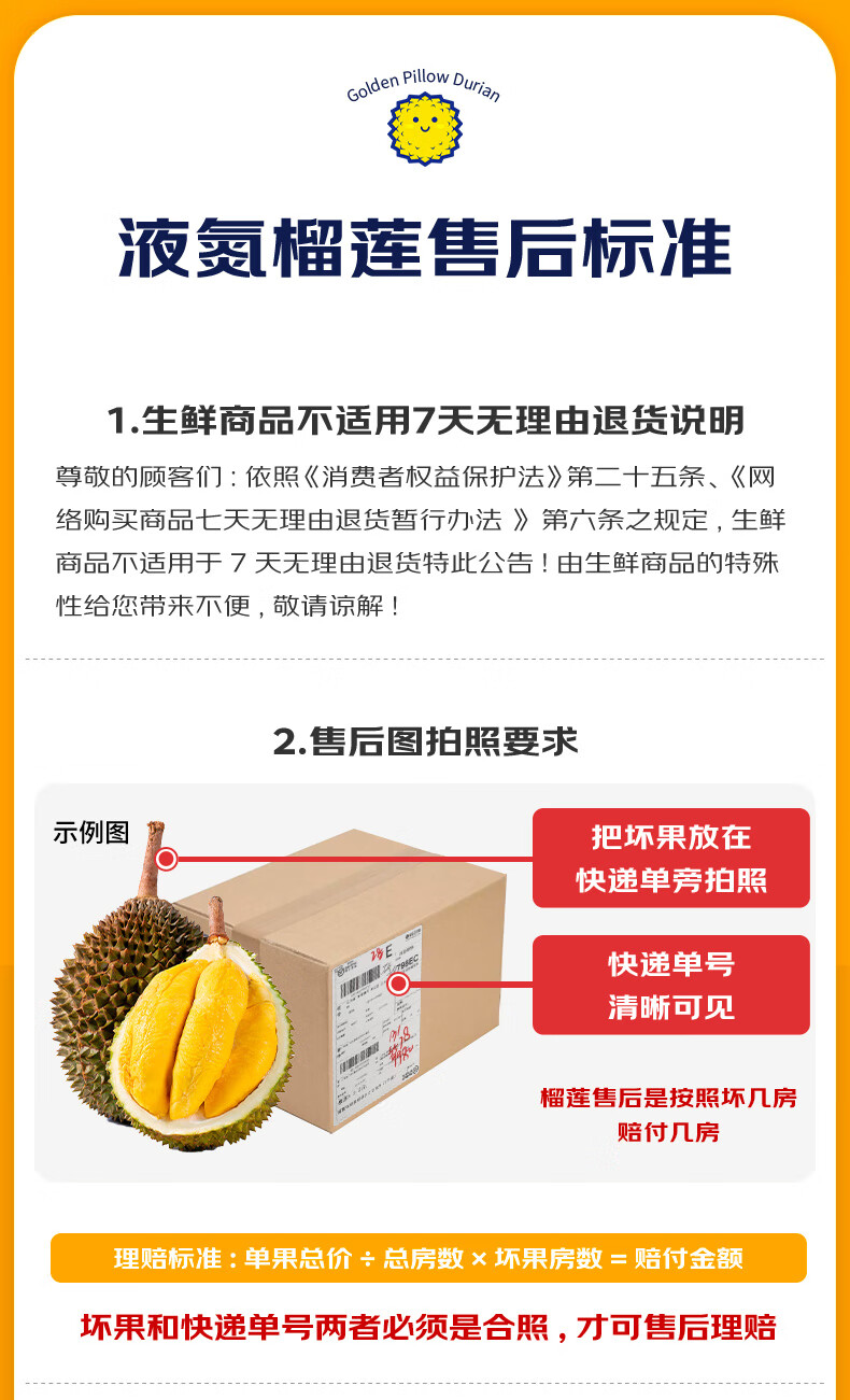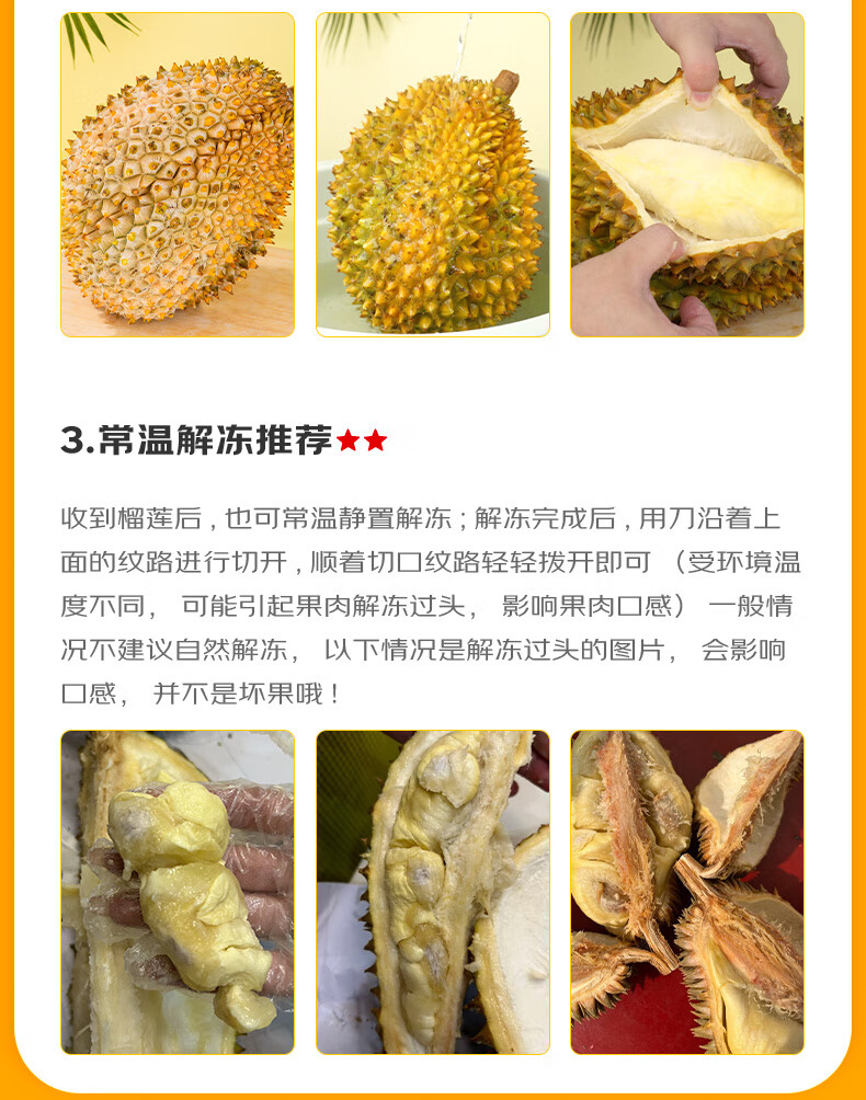 京鲜生泰国金枕榴莲3-4斤保3.5房树熟液氮冷冻新鲜进口生鲜水果礼盒