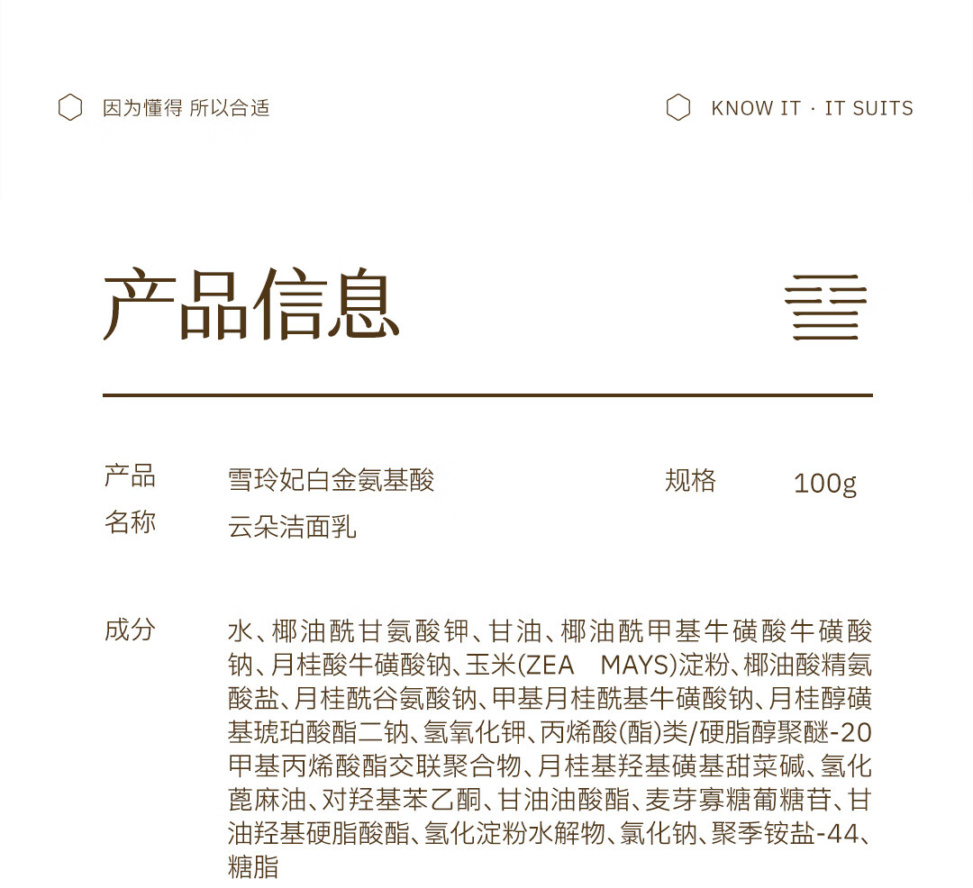 雪玲妃(Xuelinfe)白金氨基酸云朵洁面乳清洁保湿芳香舒缓洁面乳 白金氨基酸云朵洁面乳100g