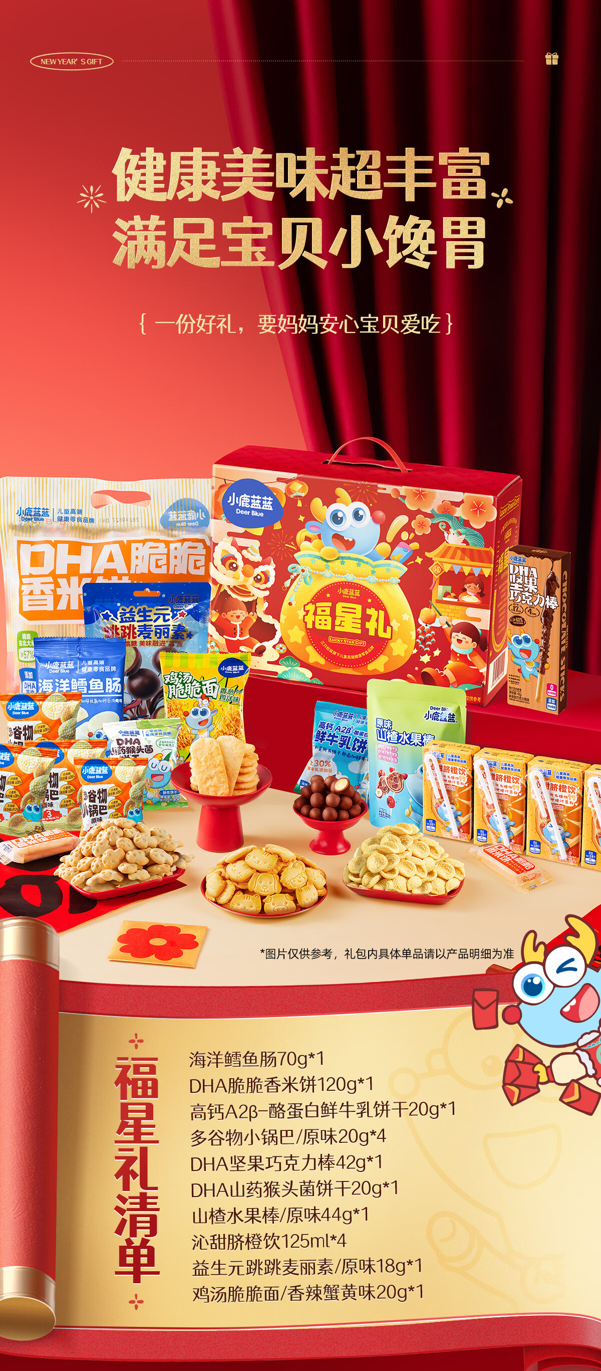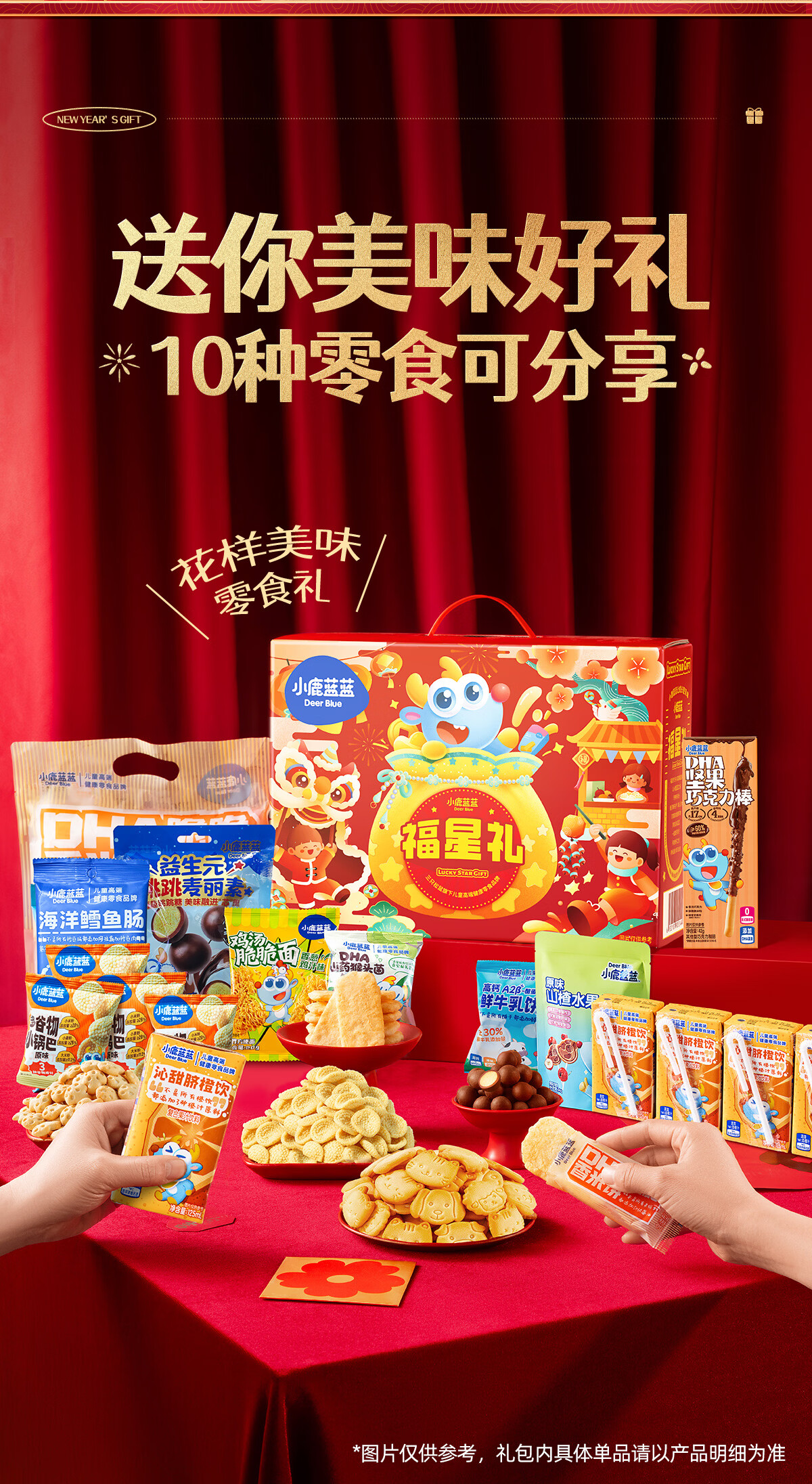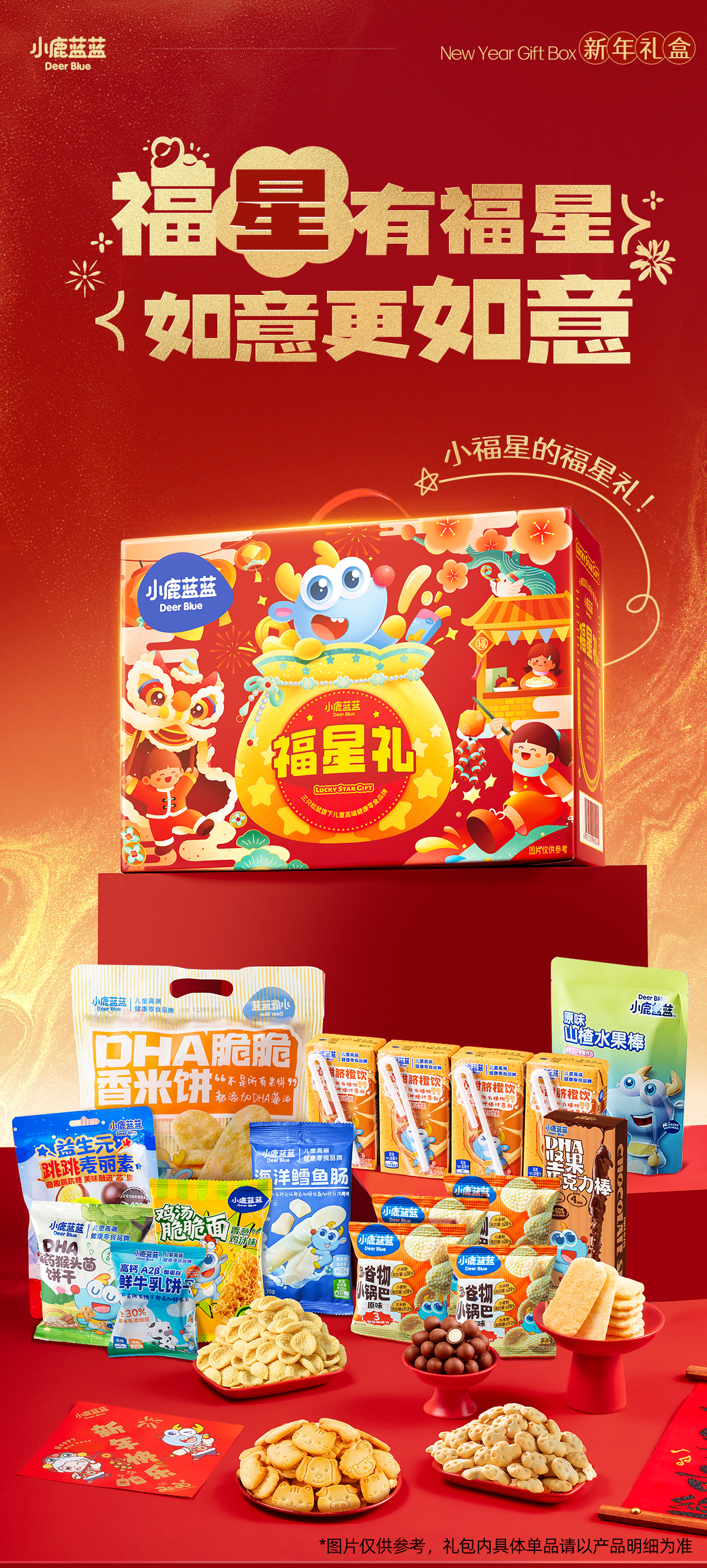 小鹿蓝蓝福星礼934g儿童零食大礼包新年礼盒饼干限定糖果巧克力果饮料 福星礼盒【新年限定】赠新春福袋