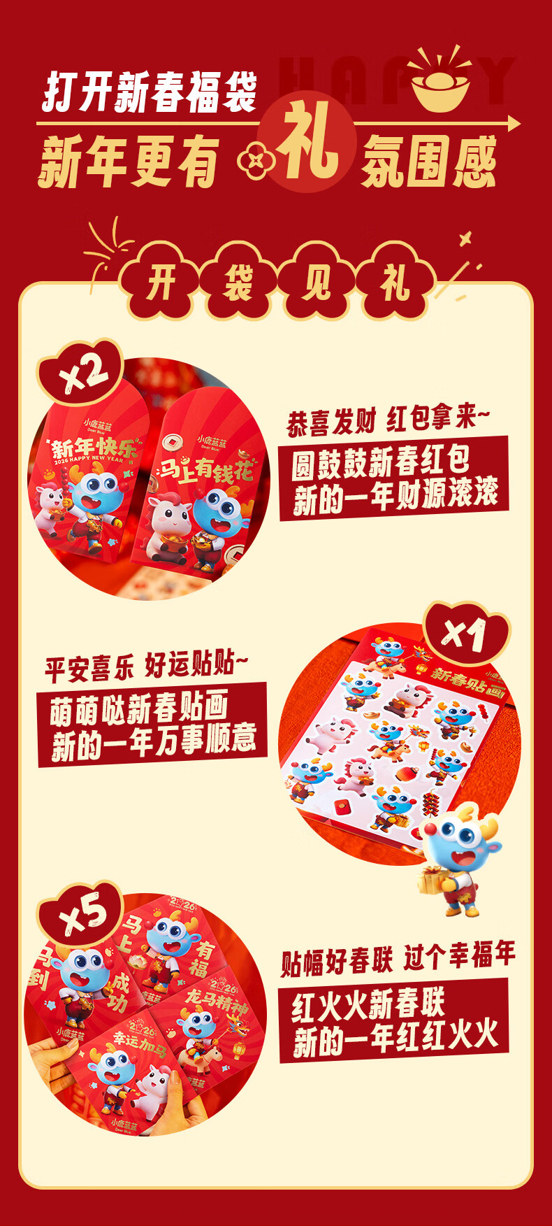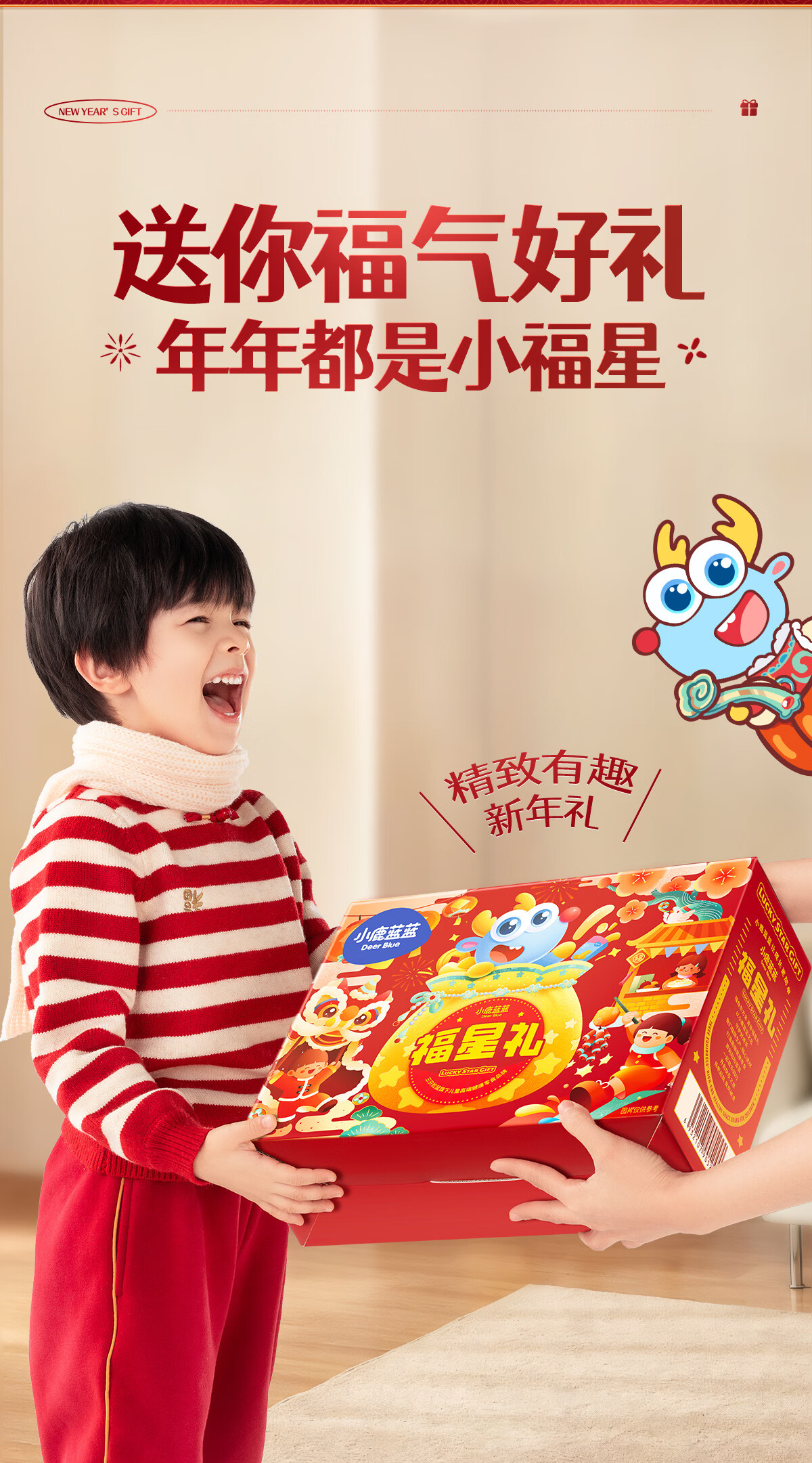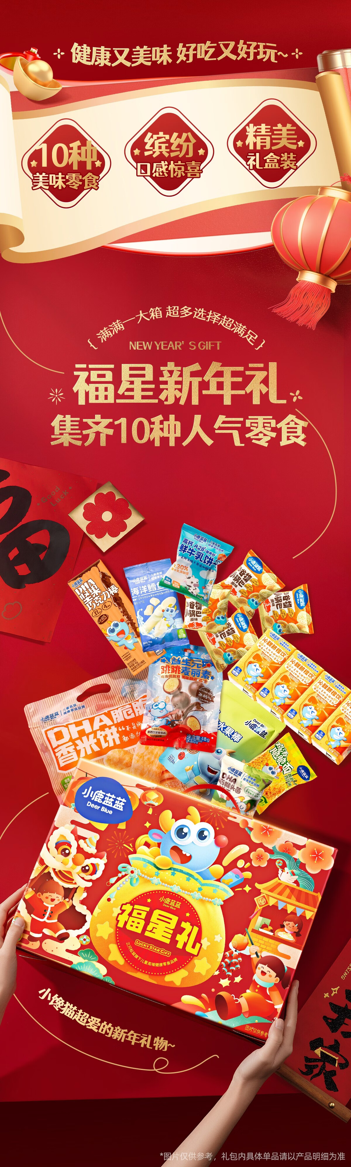 小鹿蓝蓝福星礼934g儿童零食大礼包新年礼盒饼干限定糖果巧克力果饮料 福星礼盒【新年限定】赠新春福袋