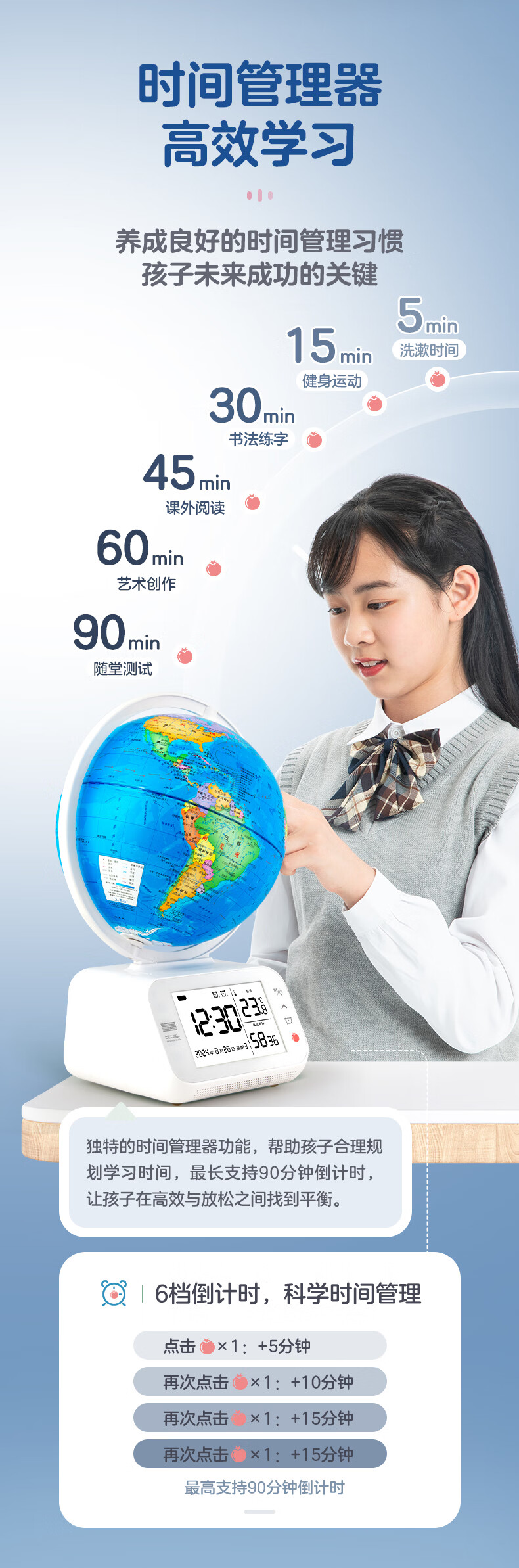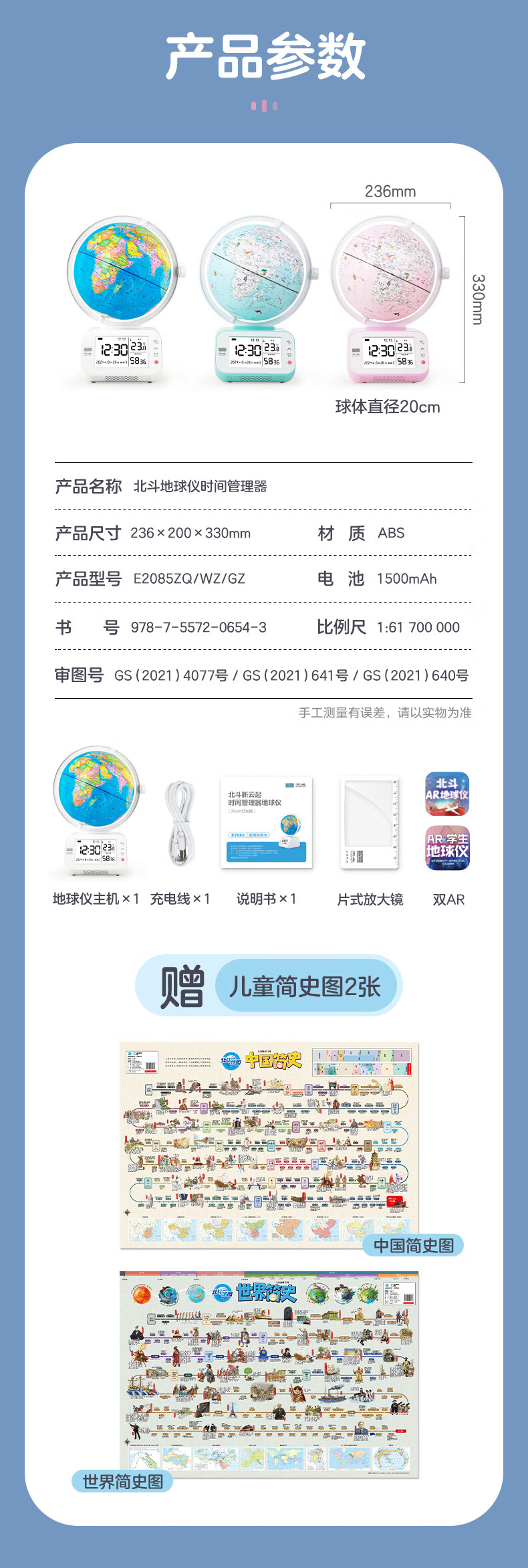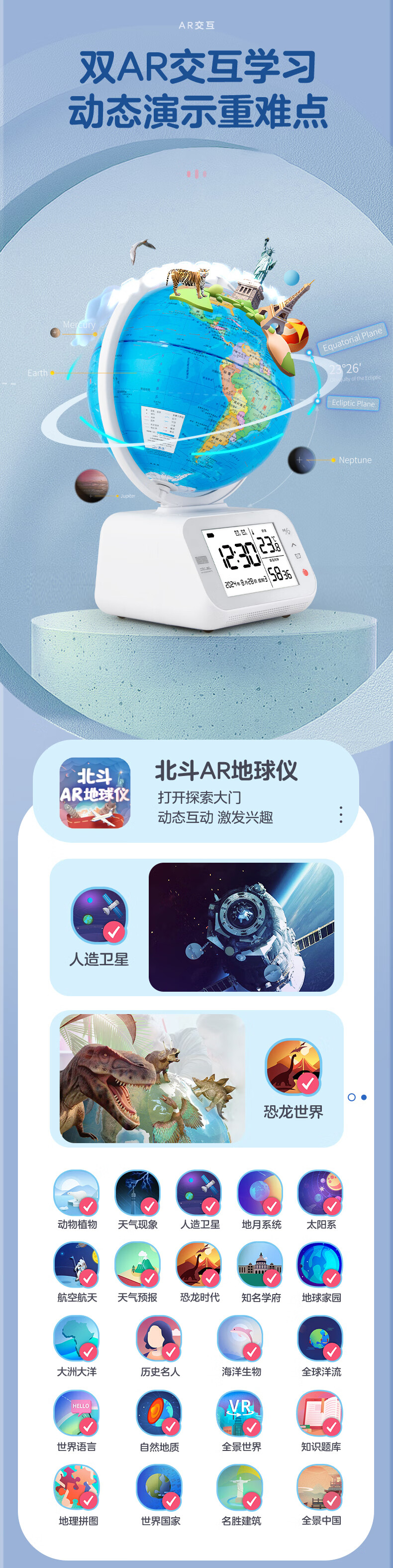 【北斗官方】问问AI地球仪 VR版 北斗地球仪时间管理器高效学习 2025年新版智能地球仪 学习地球仪 高端地球仪 送礼送孩子 学生地球仪 王子蓝VR版