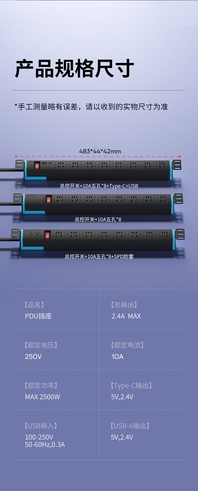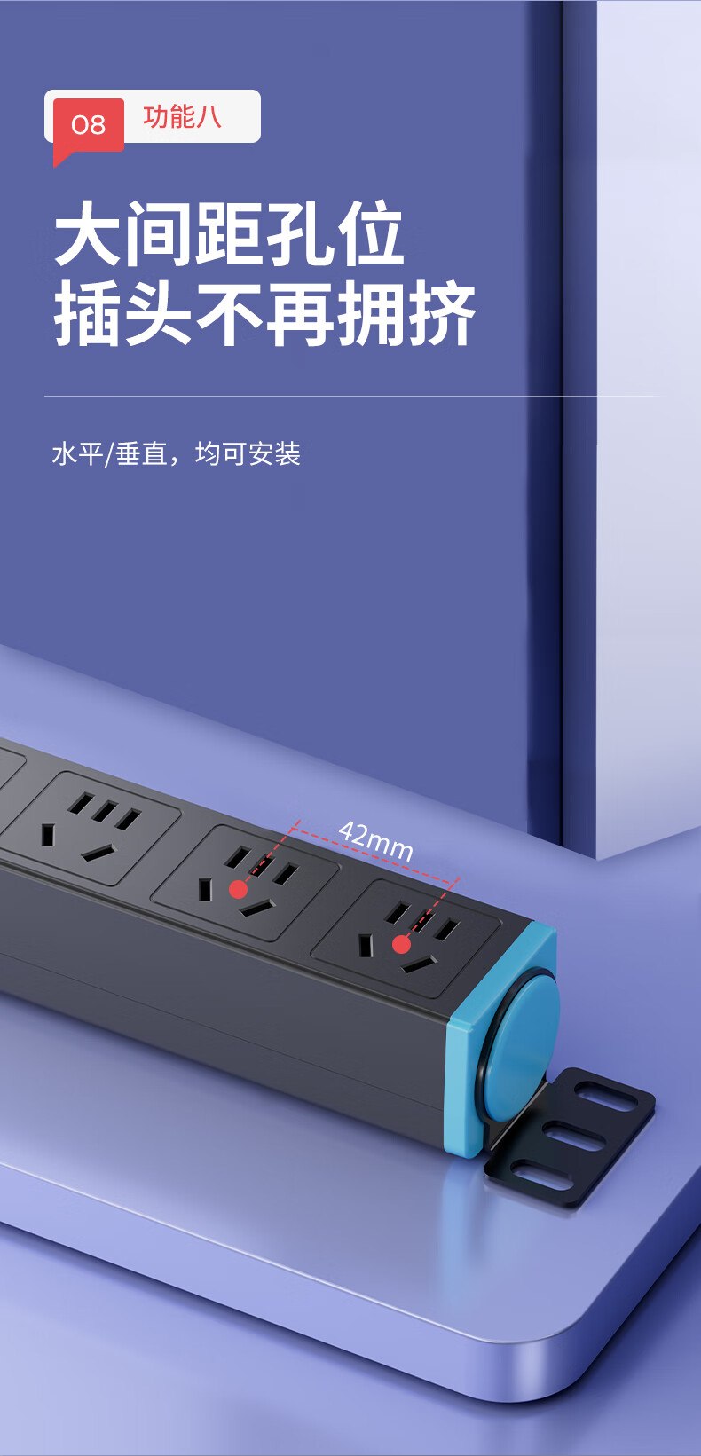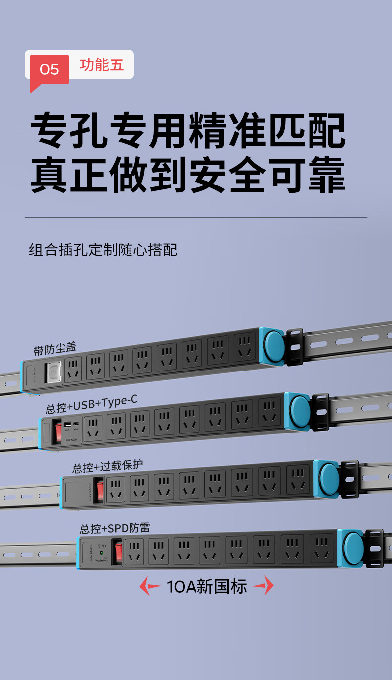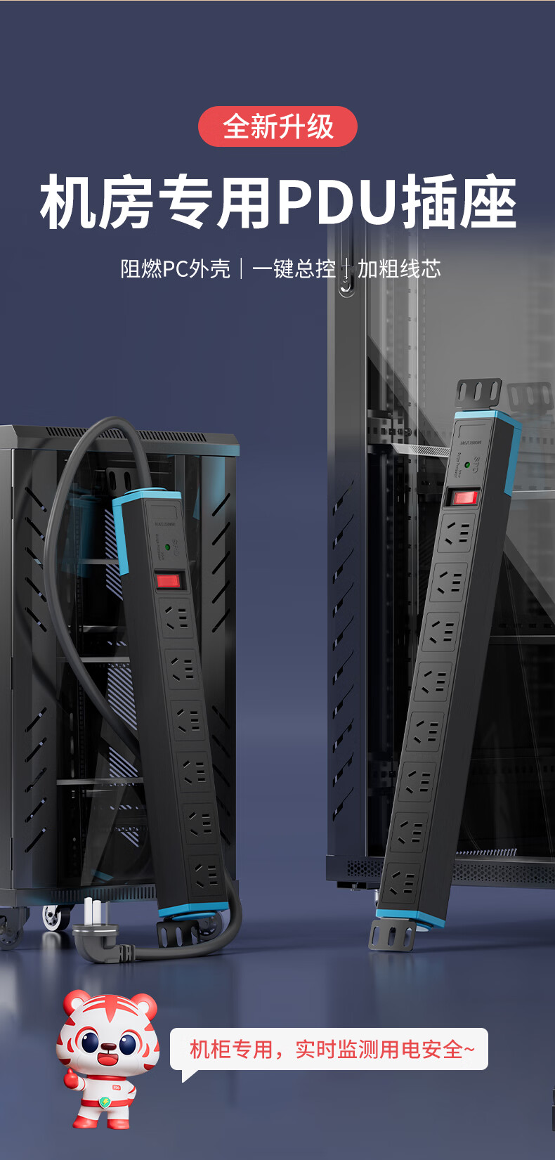 国际电工PDU机柜排插机房插座过载保护新国标工业带线桌下家用智能插板 六位过载保护插座(白色) 不带线