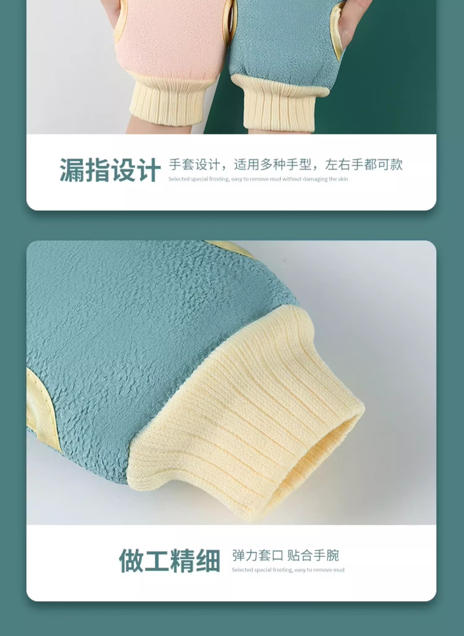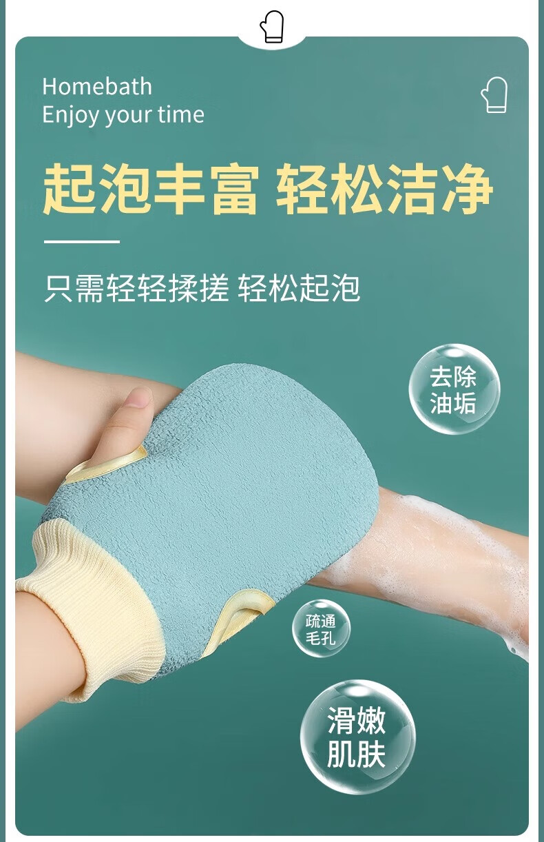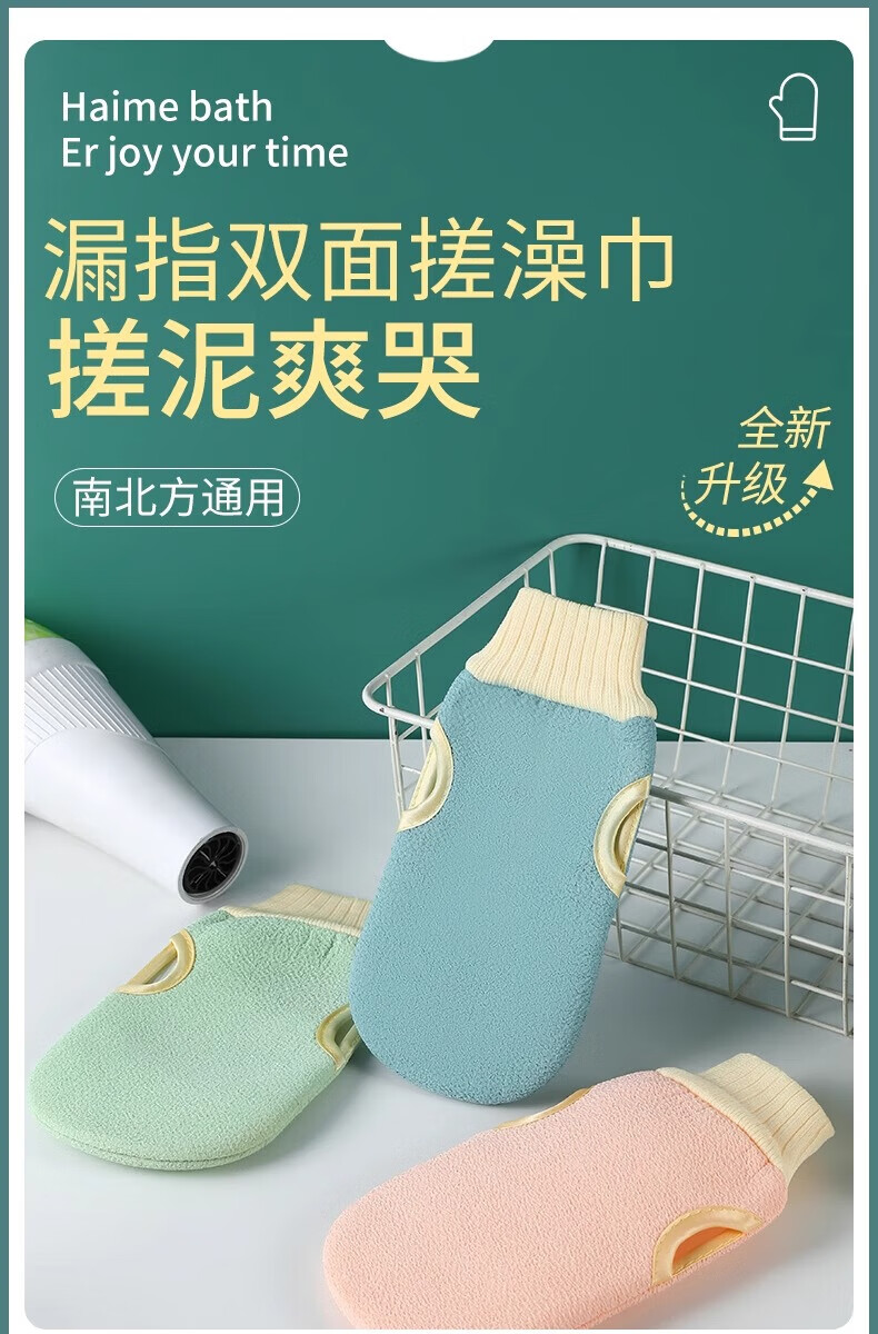 首力露指不伤肤搓澡手套搓澡巾家用搓泥手套无痛男女双面搓背 粉+蓝