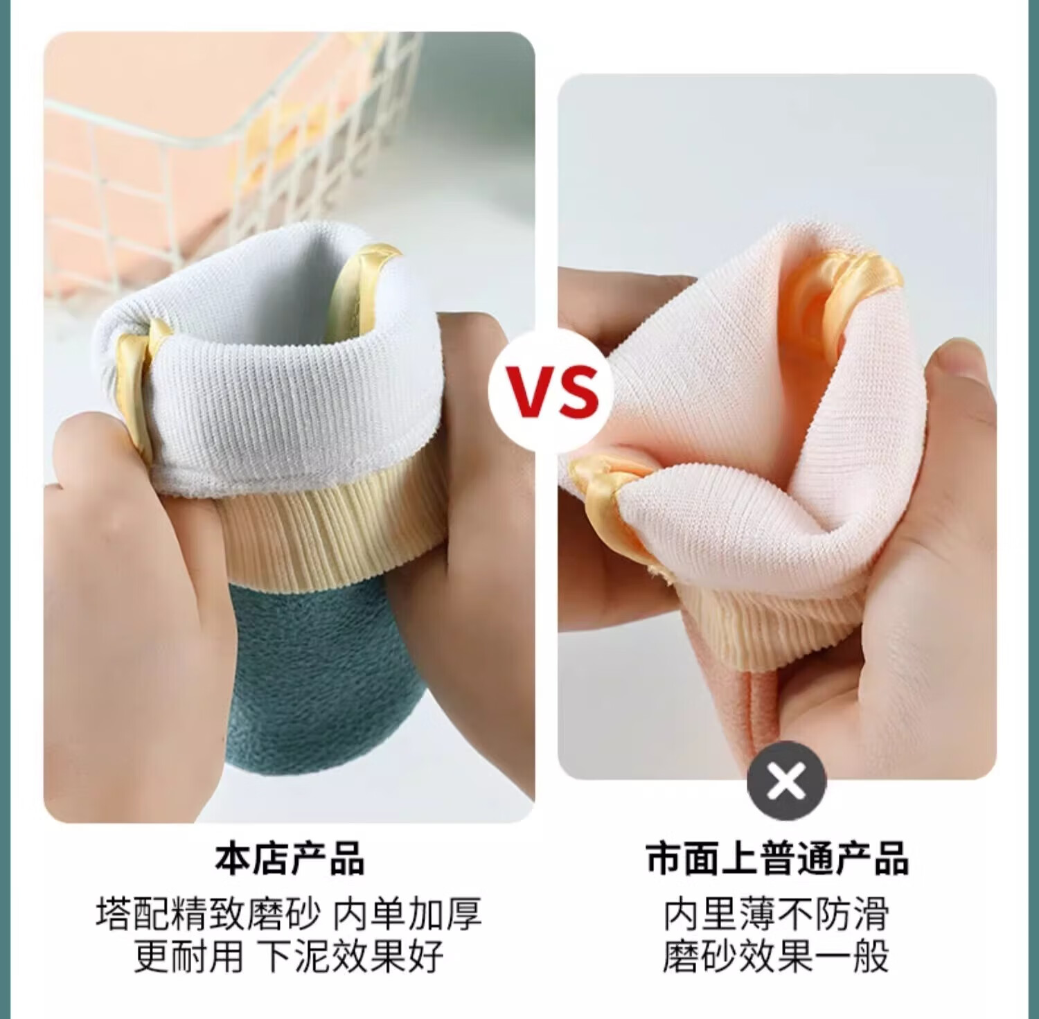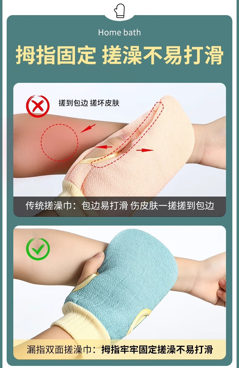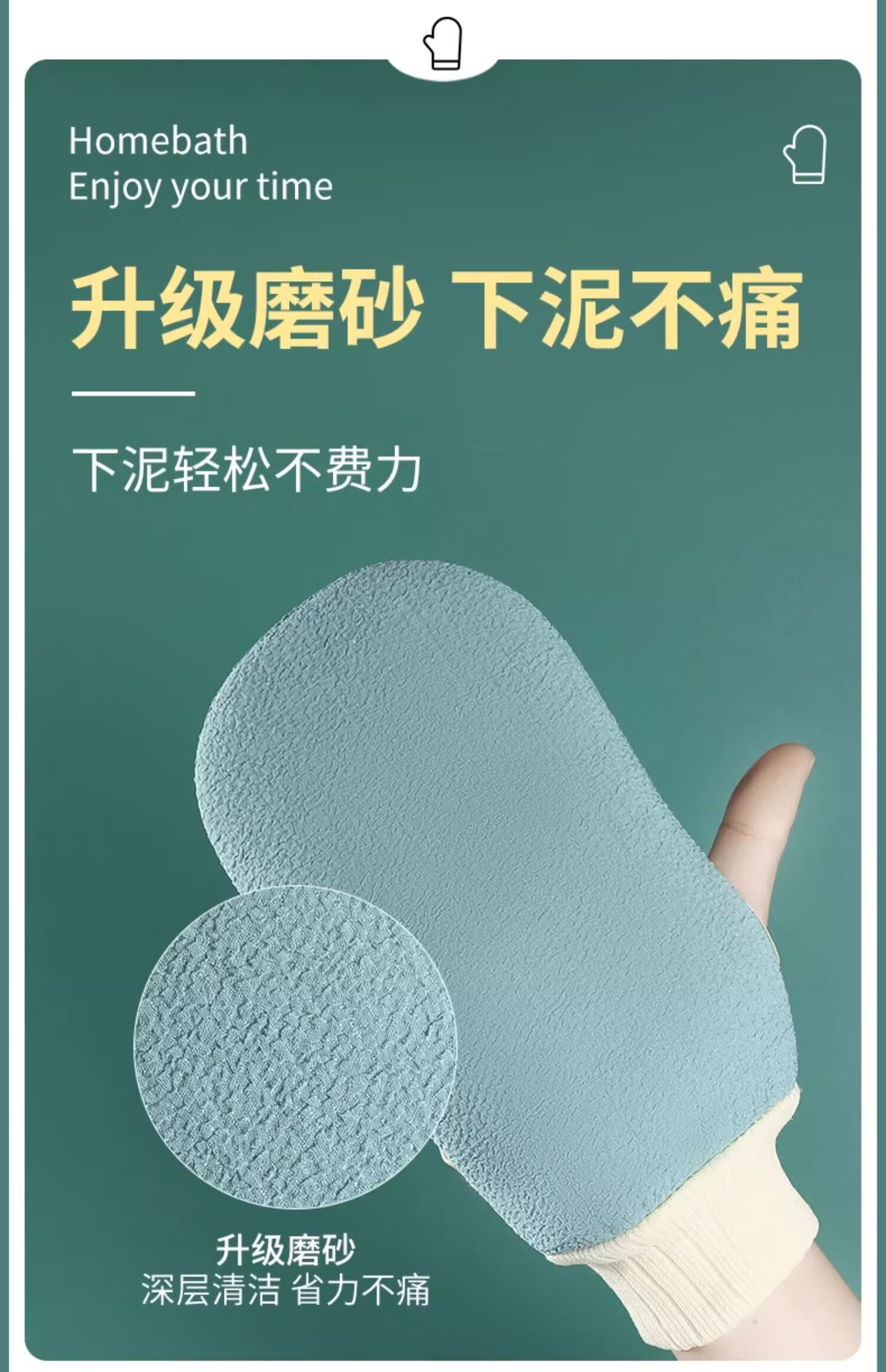 首力露指不伤肤搓澡手套搓澡巾家用搓泥手套无痛男女双面搓背 粉+蓝