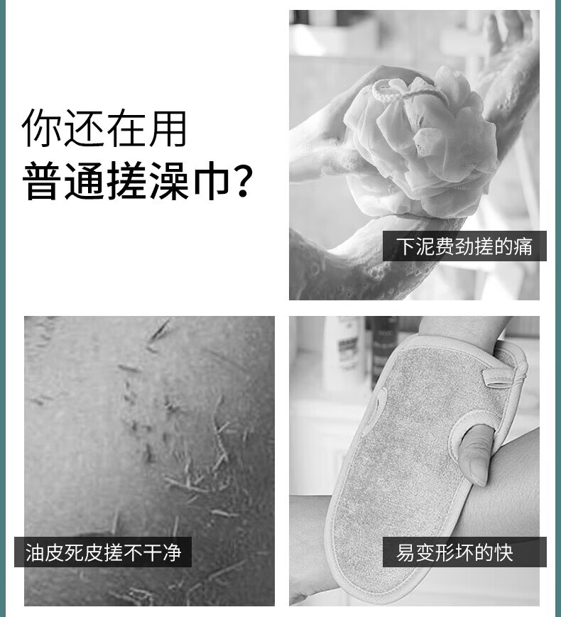 首力日系家用搓澡巾男女士搓背下泥长条后背搓泥不伤肤洗澡巾黑色条纹