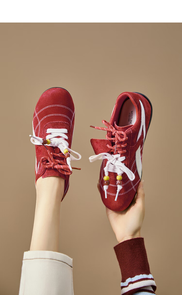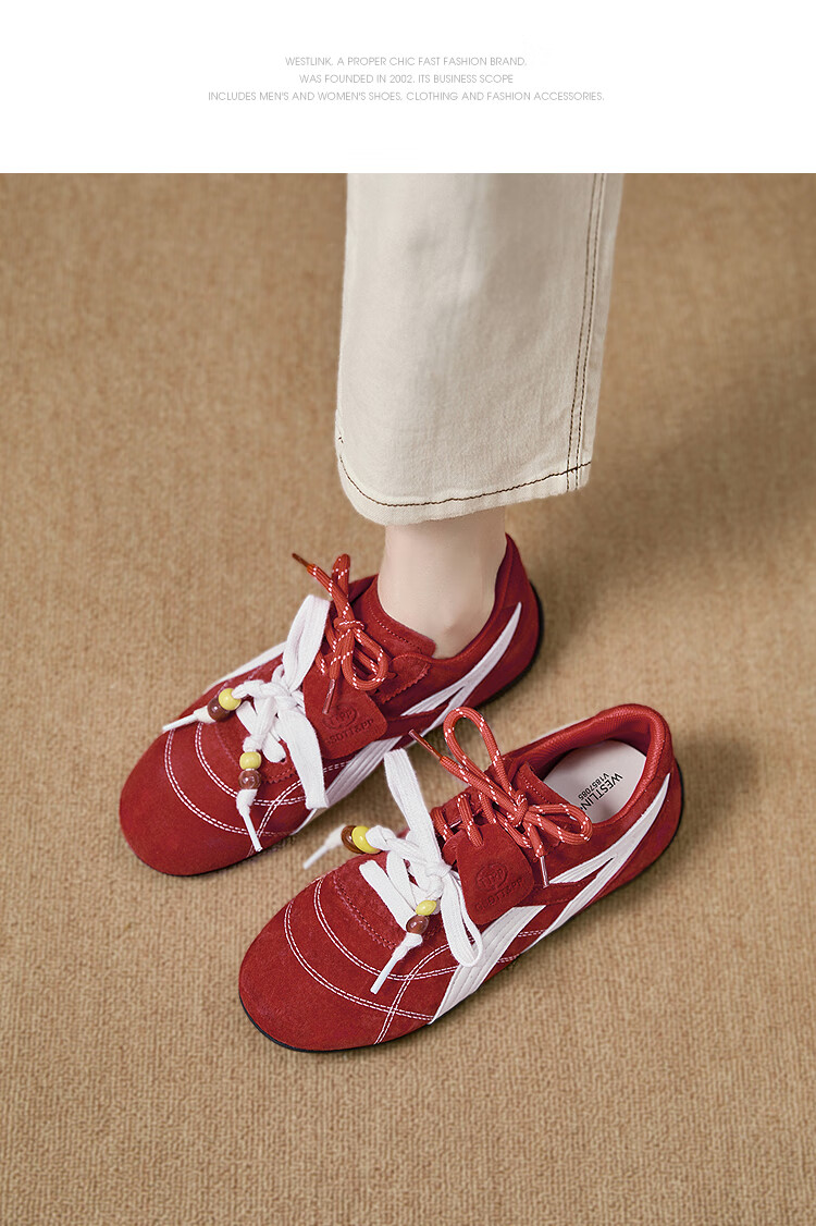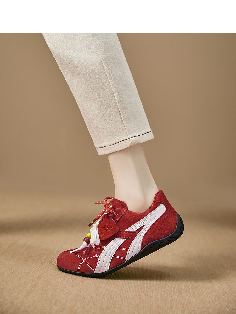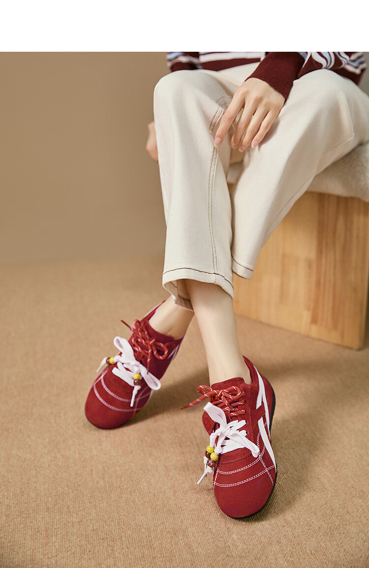 西遇复古德训鞋女2025新款秋季赛车鞋轻便平底红色运动鞋 红色 38 (240)