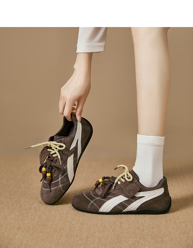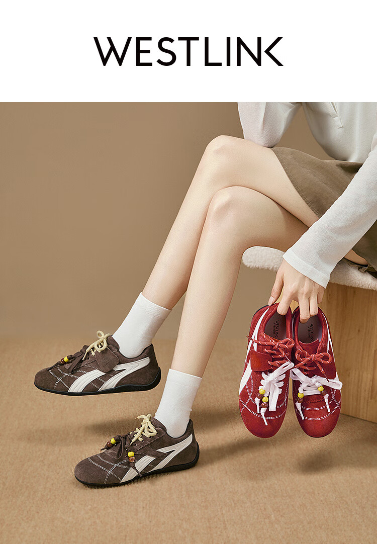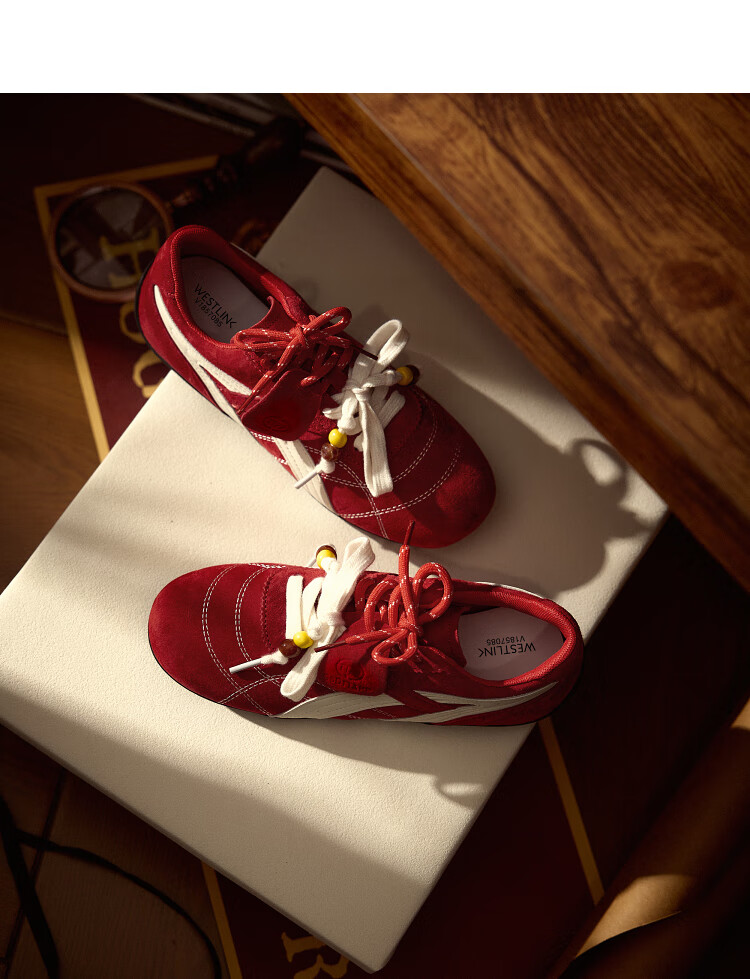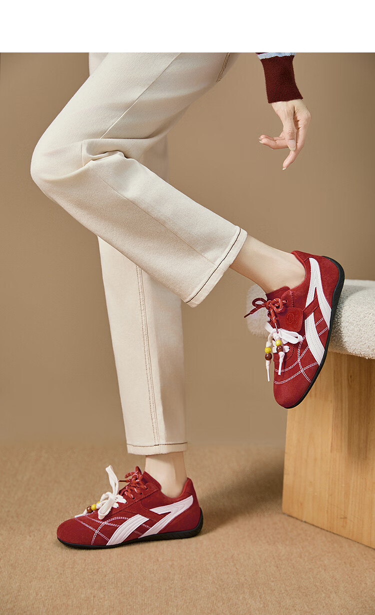 西遇复古德训鞋女2025新款秋季赛车鞋轻便平底红色运动鞋 红色 38 (240)