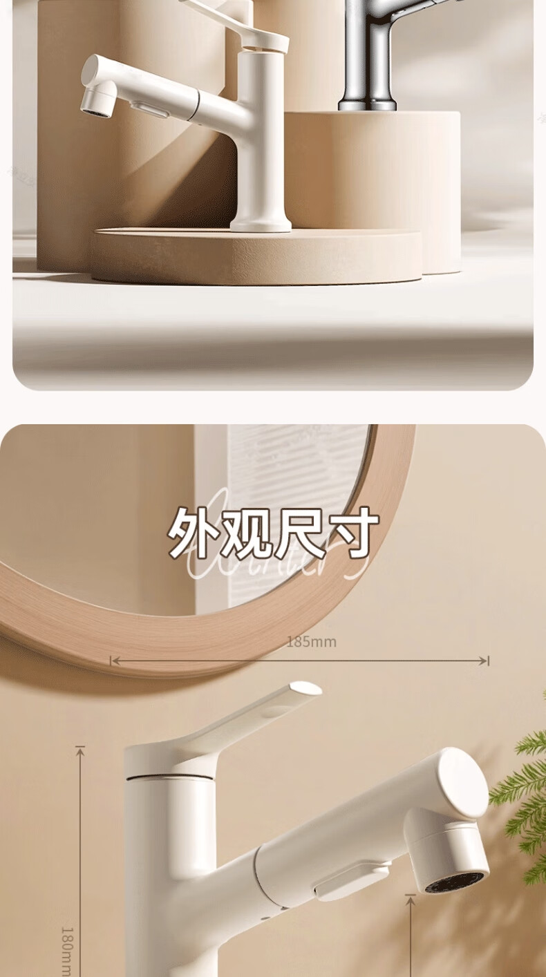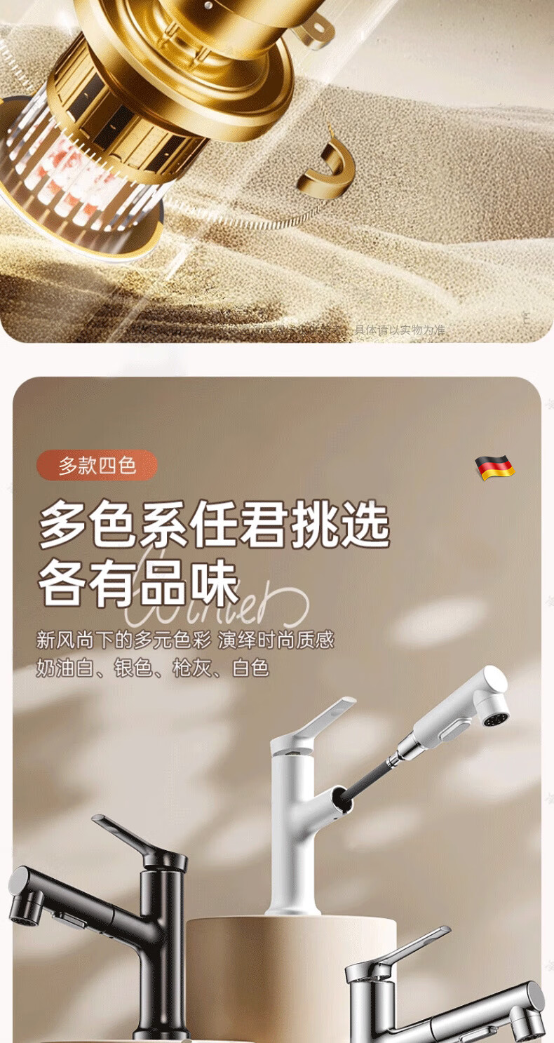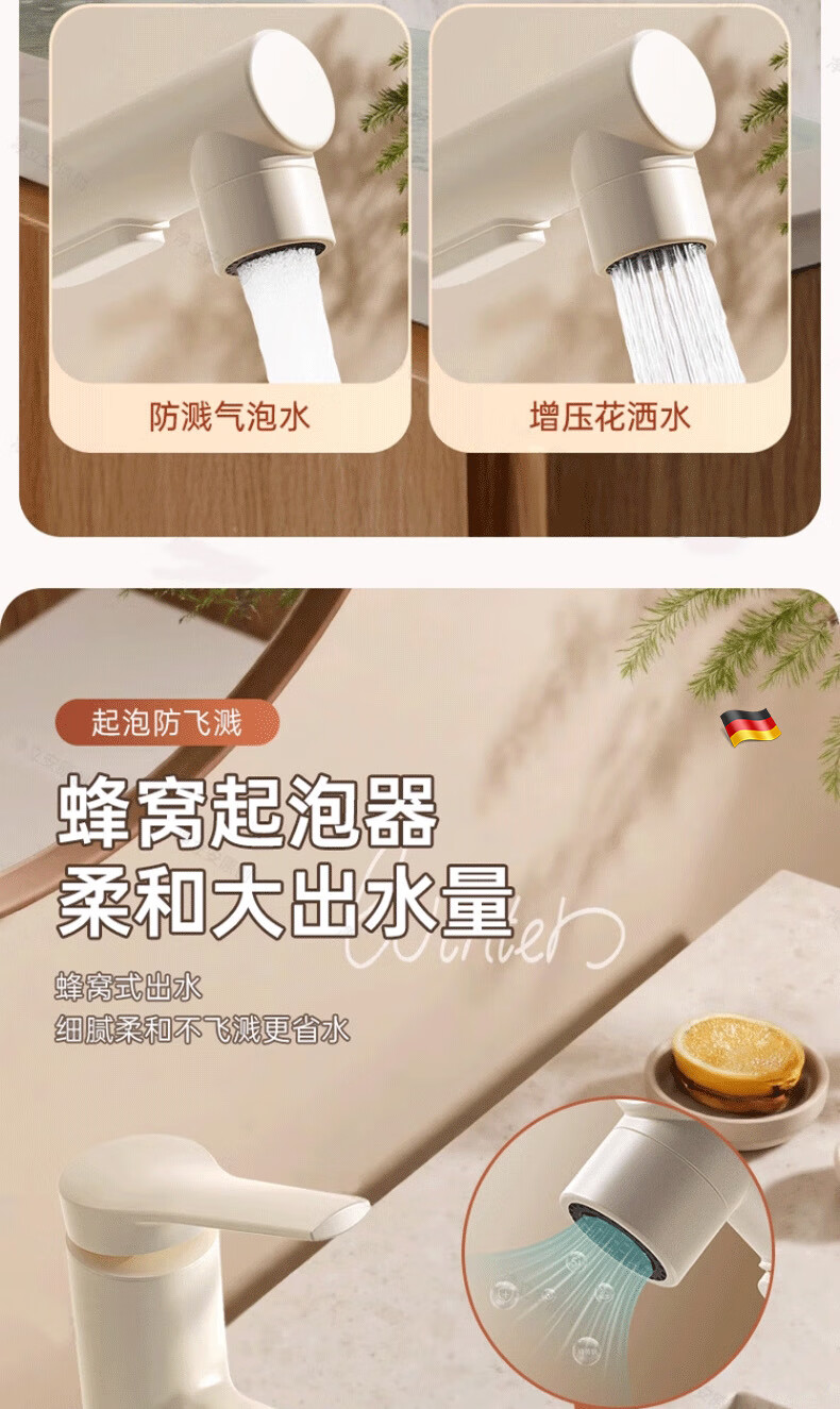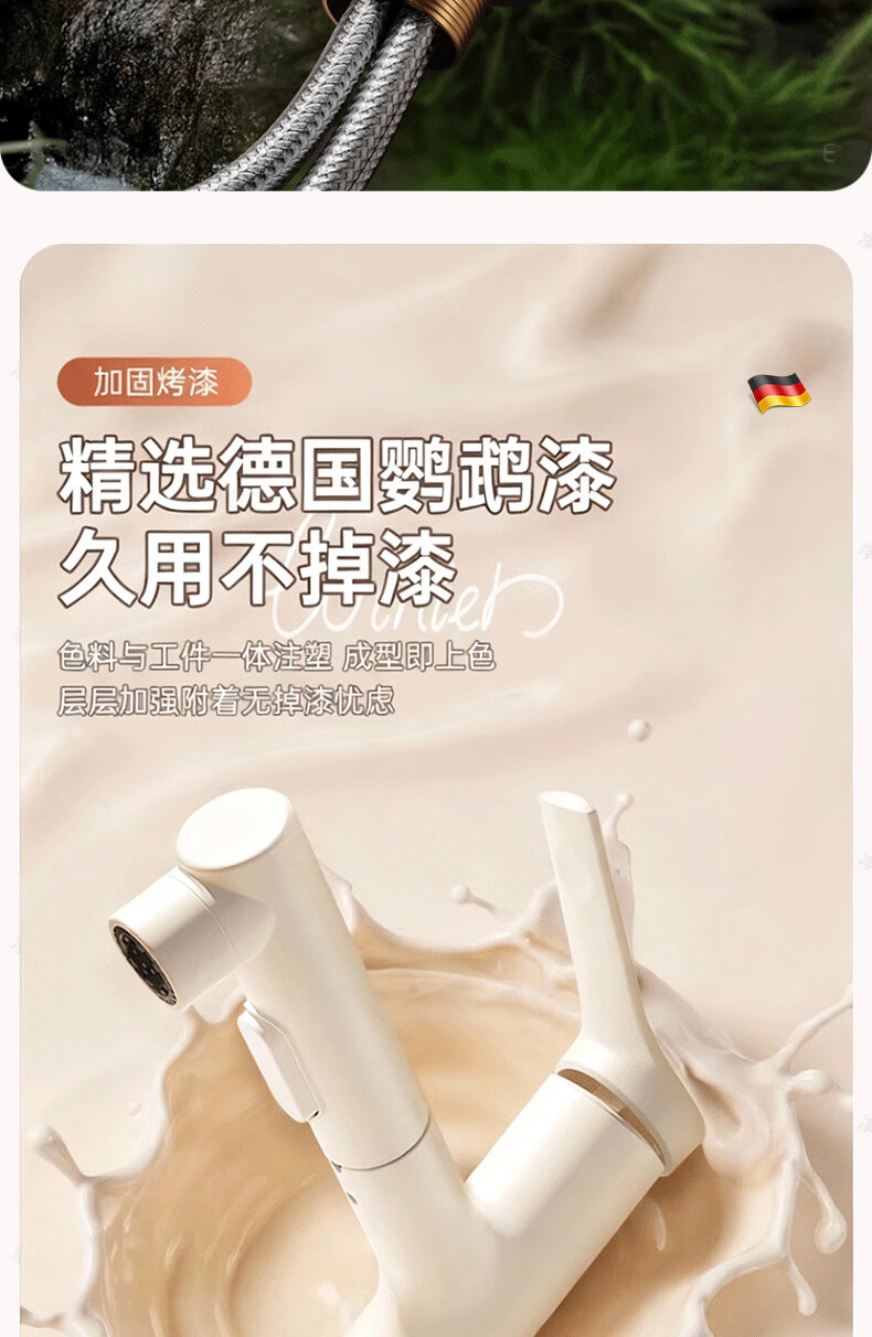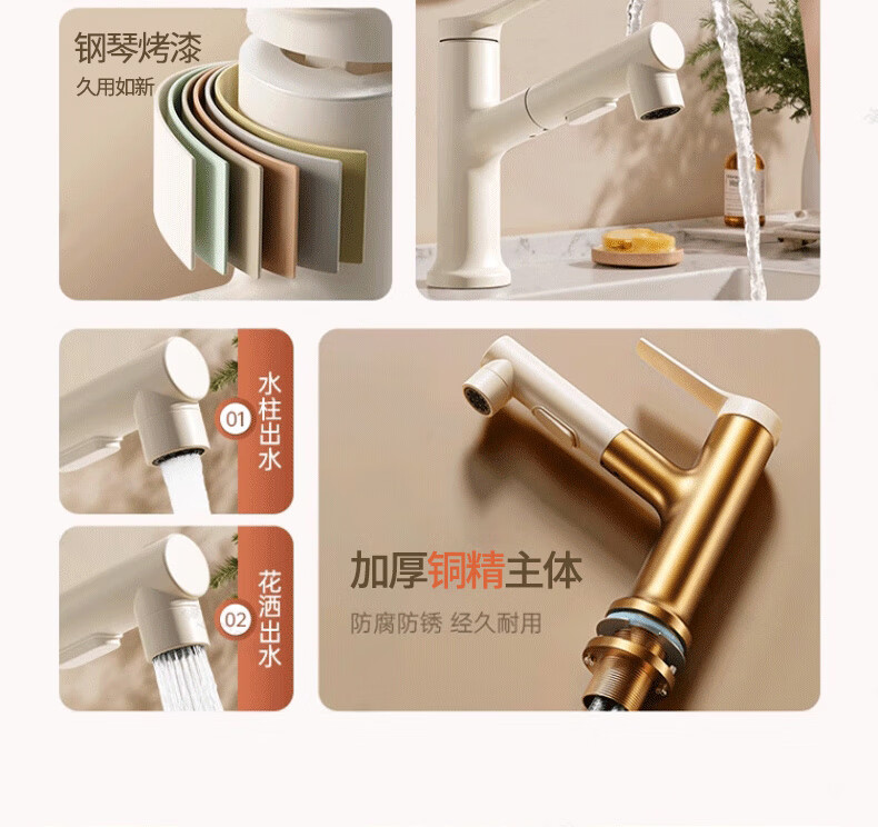 X-GRKE【德国】全铜面盆水龙头洗手盆洗脸盆洗手池卫生间抽拉式冷热龙头 全铜主体【3档抽拉上涌出水】奶油白 全铜上涌抽拉3档丨赠80cm冷热进水管