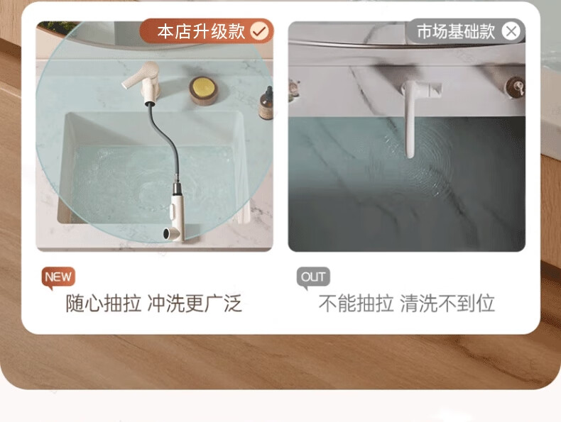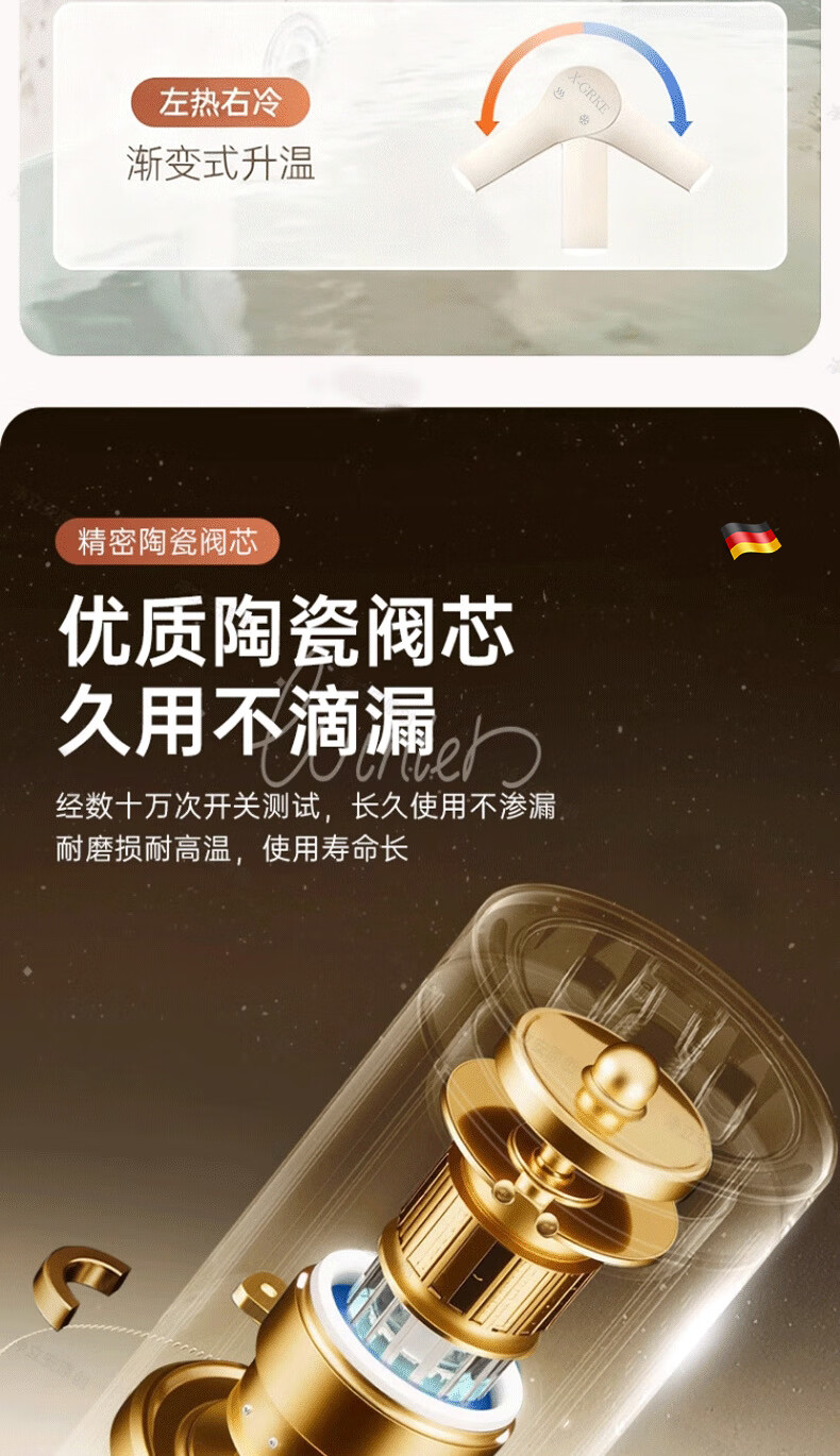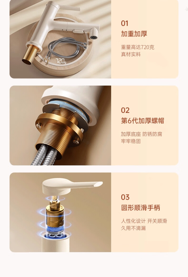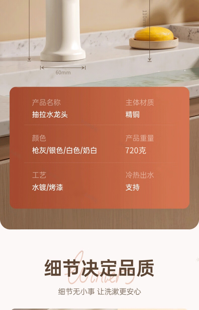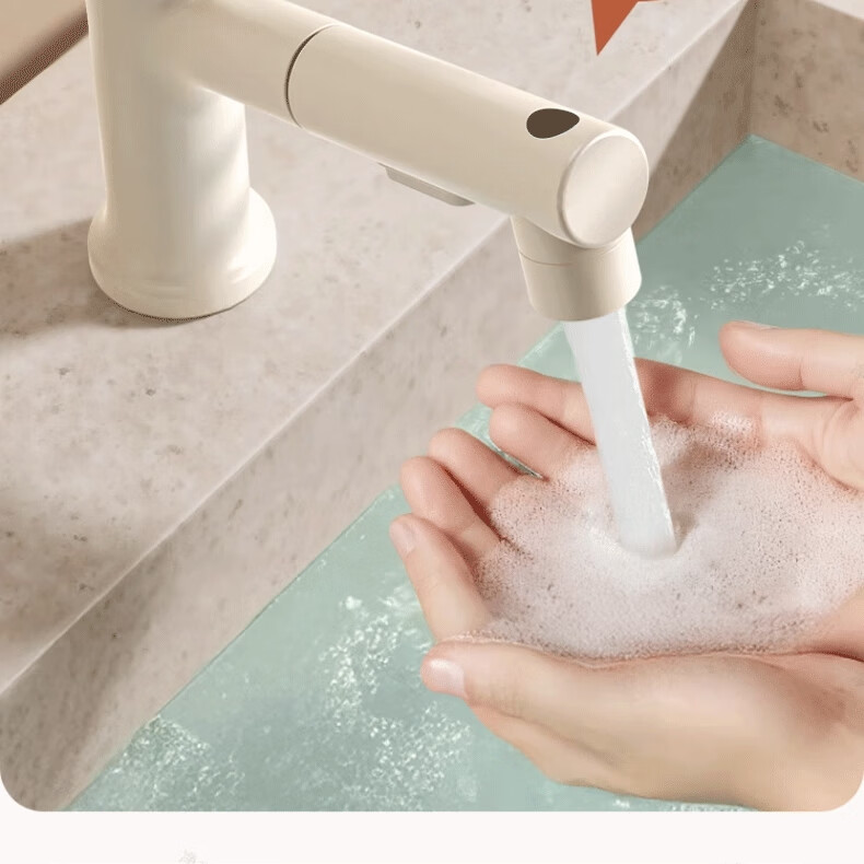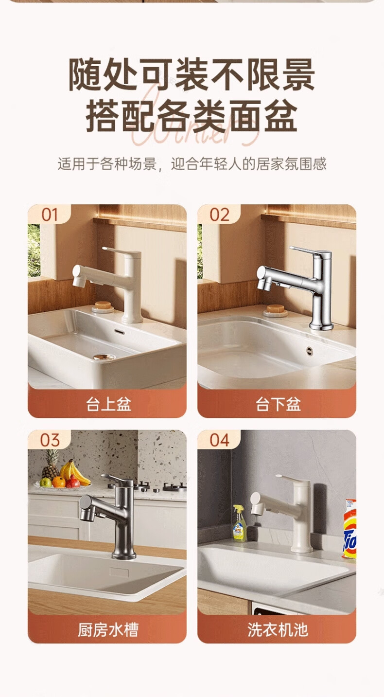X-GRKE【德国】全铜面盆水龙头洗手盆洗脸盆洗手池卫生间抽拉式冷热龙头 全铜主体【3档抽拉上涌出水】奶油白 全铜上涌抽拉3档丨赠80cm冷热进水管