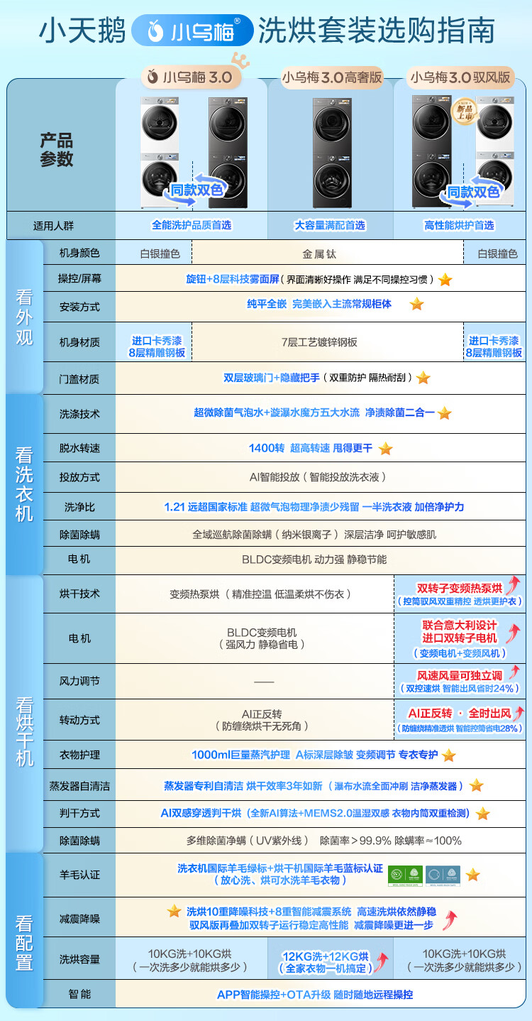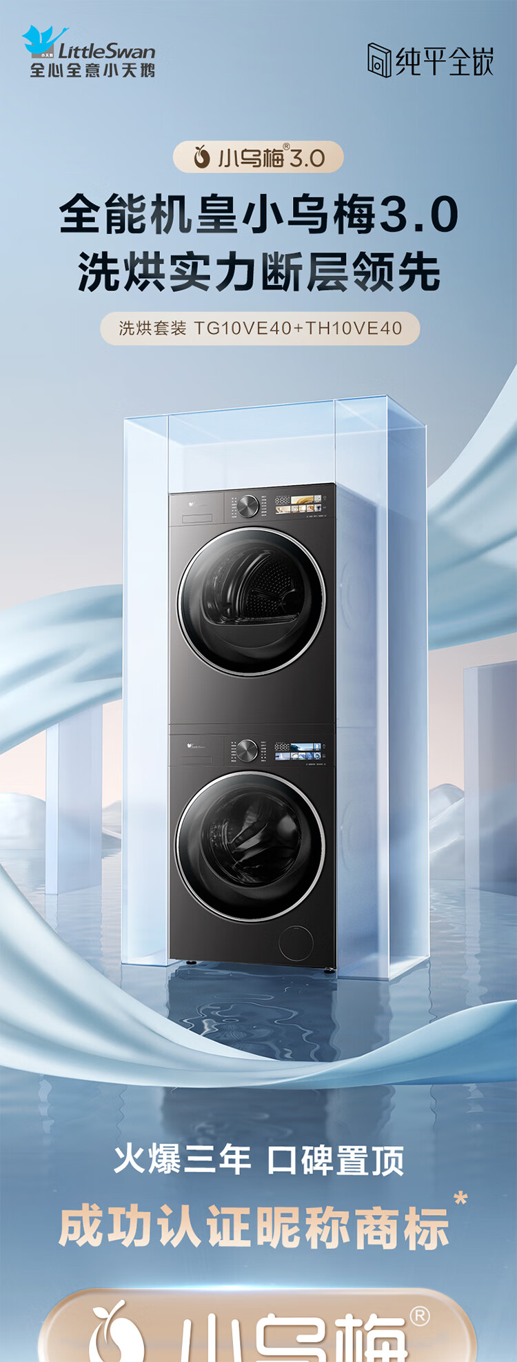 小天鹅(LittleSwan)洗烘套装 10KG滚筒洗衣机全自动+变频热泵烘干机家用烘衣服【小乌梅3.0】TG10VE40+VE40 国家补贴