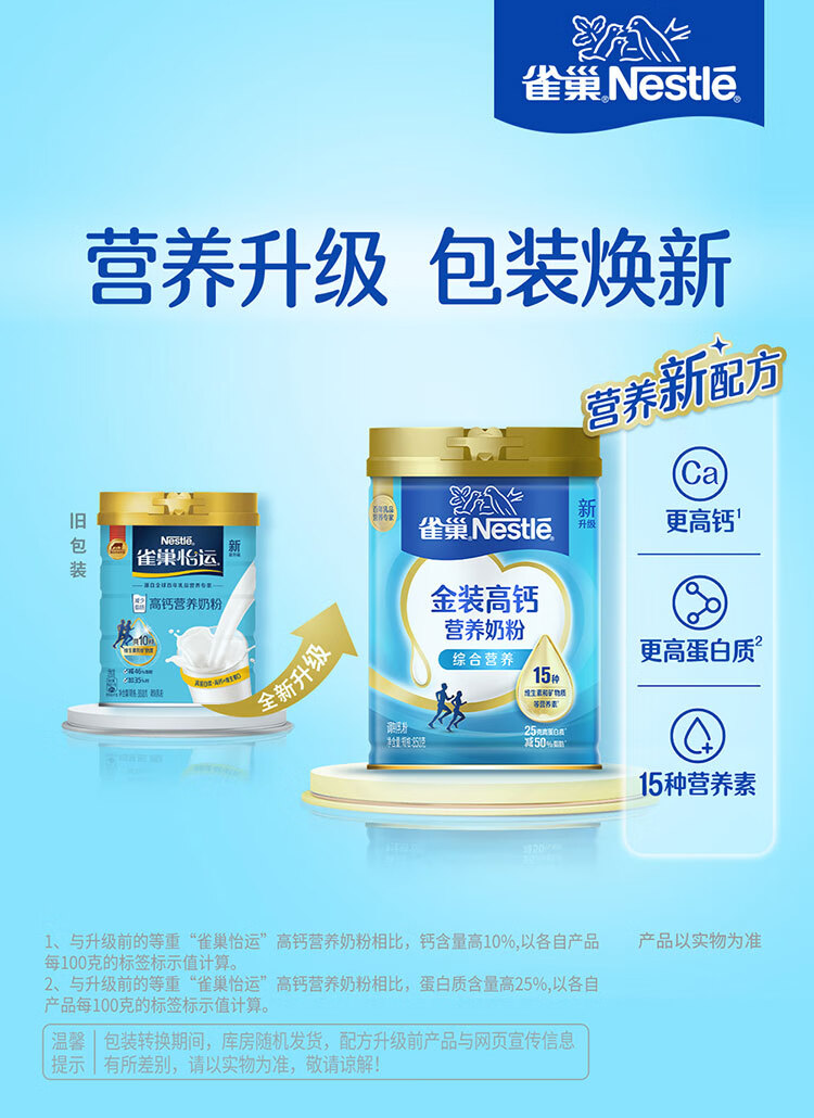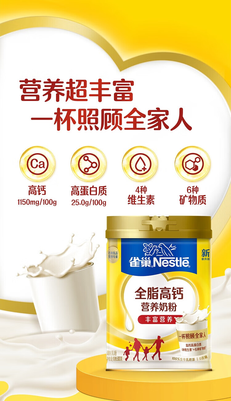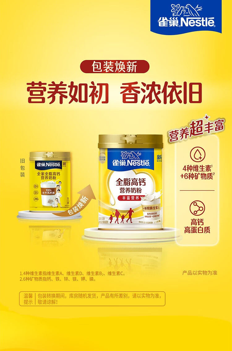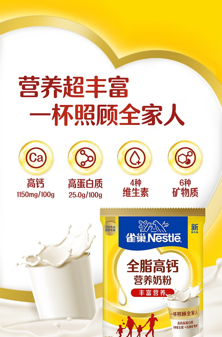 雀巢(Nestle)奶粉 怡运全家营养奶粉 成人奶粉送全家 年货节送礼 全脂高钙375g*2 礼盒
