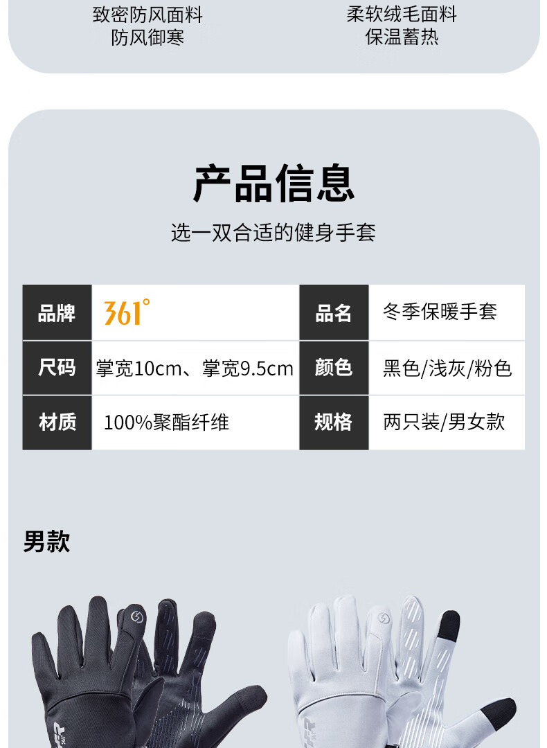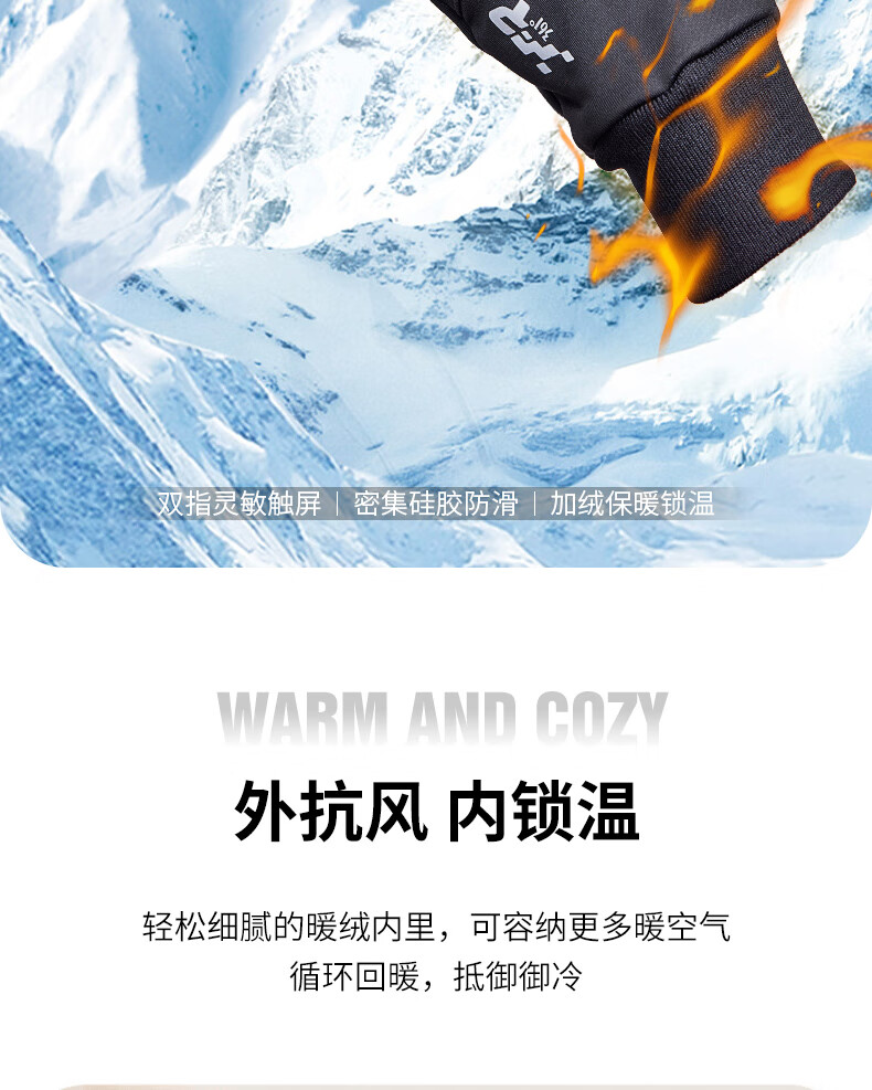 361°手套冬季骑行保暖防风电动摩托车跑步户外男女自行车加绒触屏 男款黑色