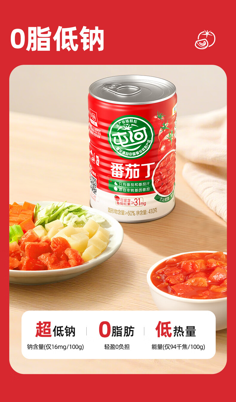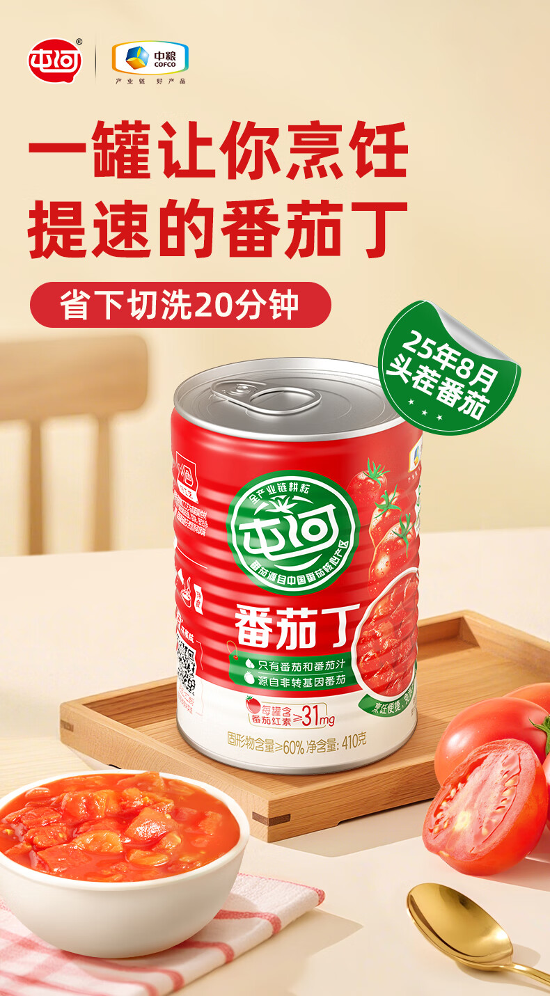 屯河25年新产季新疆及内蒙新鲜番茄丁西红柿块家庭储备囤货番茄罐头 番茄丁410g*6罐【25年8月新货】
