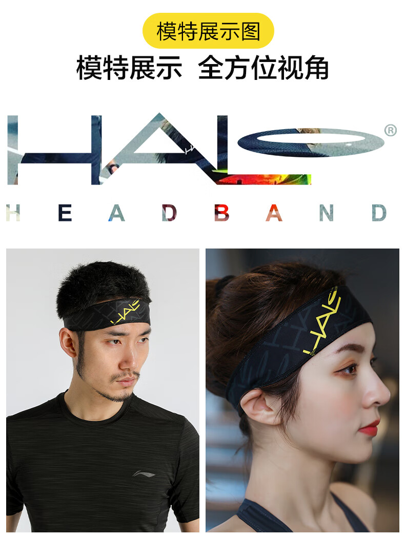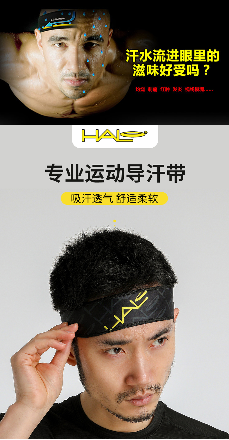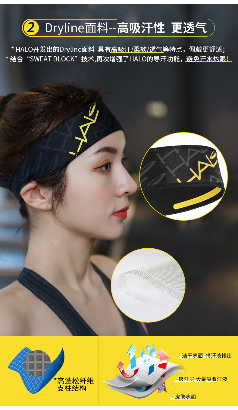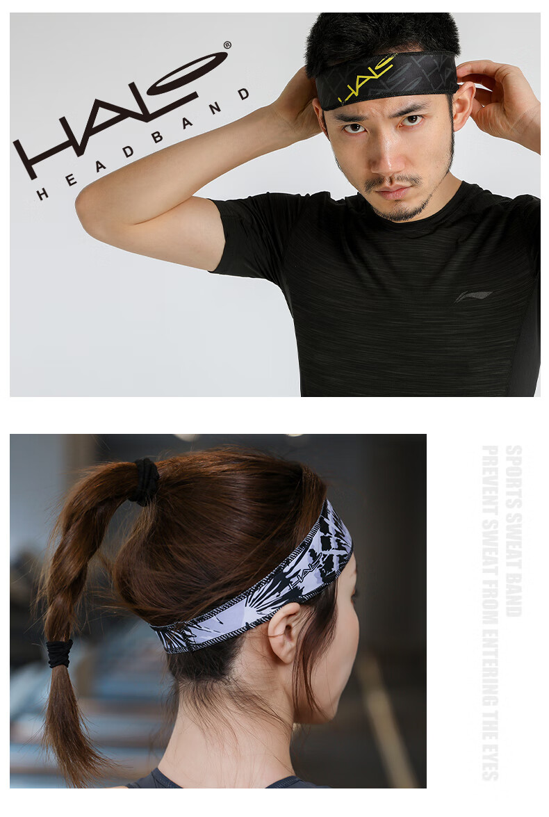 HALO HEADBAND止汗带男女运动发带秋冬导汗带健身骑行头巾头带跑步羽毛球吸汗带 一体型-黑羽毛