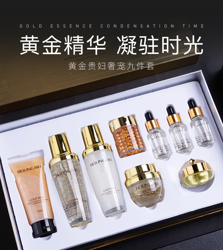 贝玲美(BEILINGMEI)热卖款贝玲美黄金贵妇奢宠九件套面部护肤品套装补水