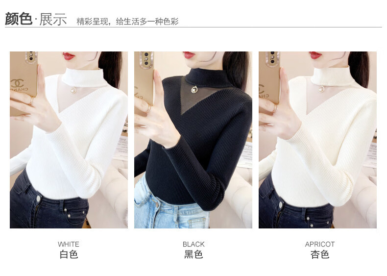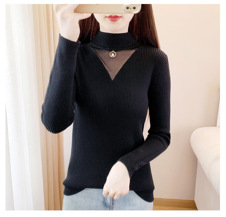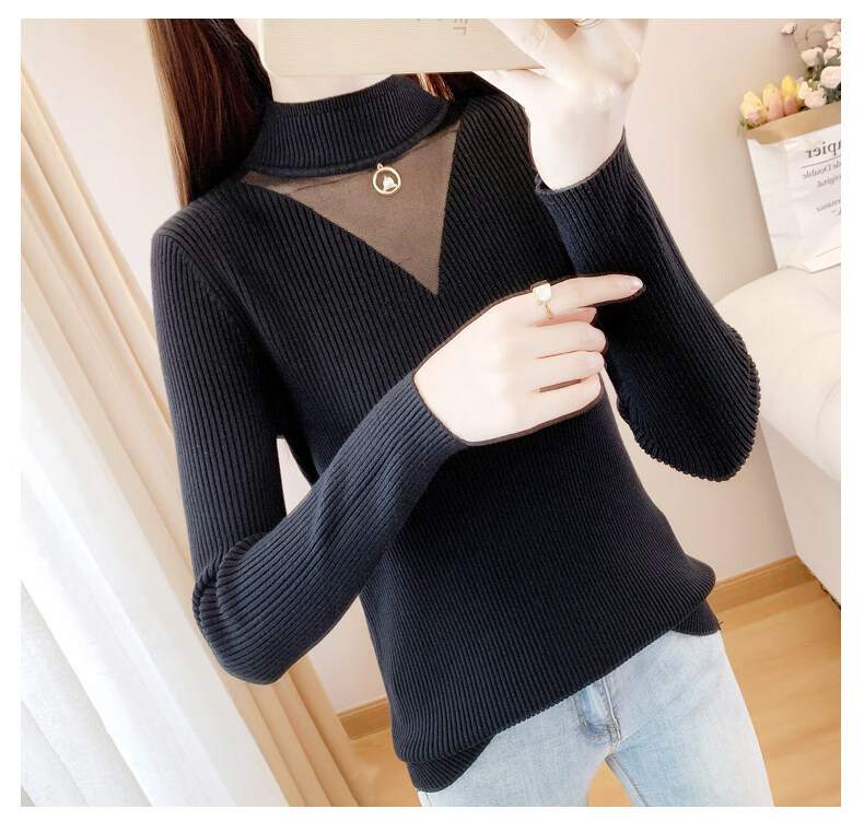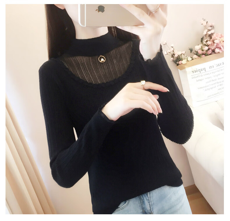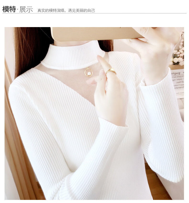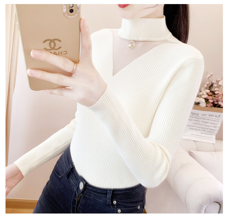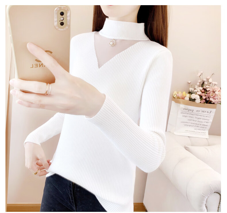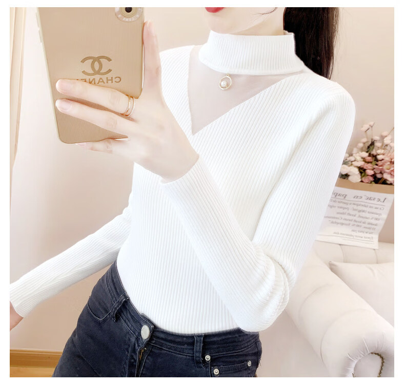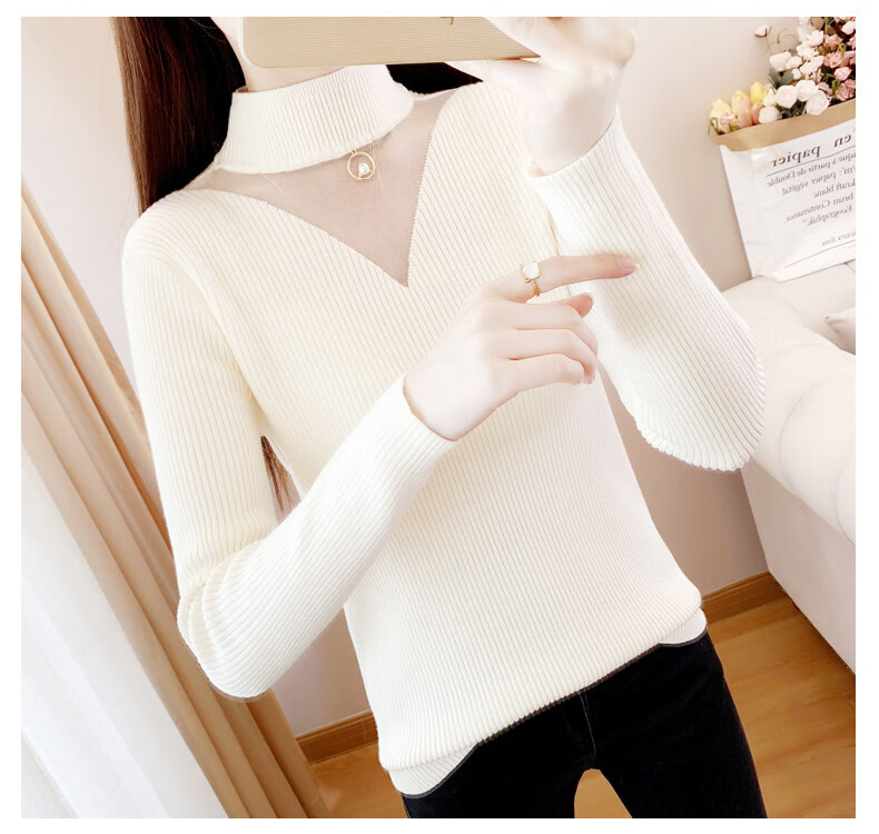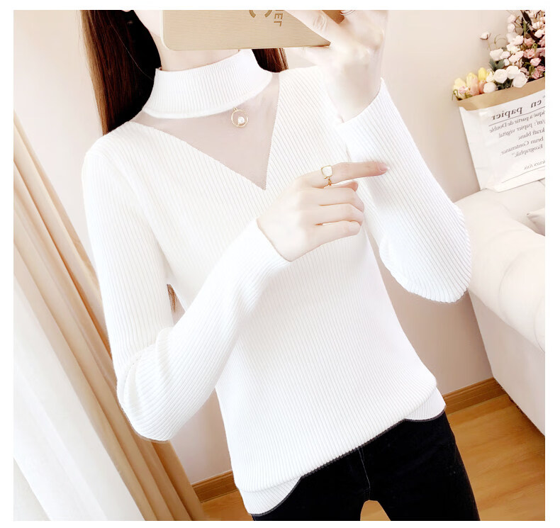 香影纯半高领打底衫蕾丝毛衣女套头2025秋冬新款显瘦内搭针织衫外穿上衣 圆领蕾丝白色 L (建议105-115斤)