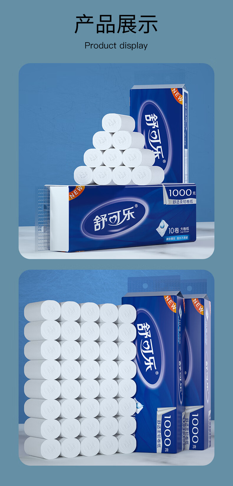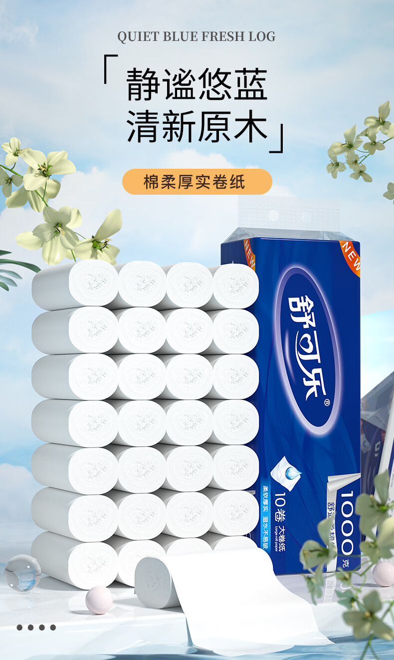 舒可乐【精选百货】10卷无芯卷纸大卷1kg厕纸巾卷筒纸卫生间 5层 100g/卷*10卷