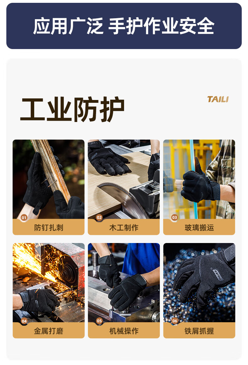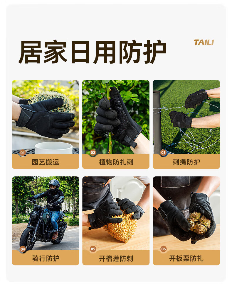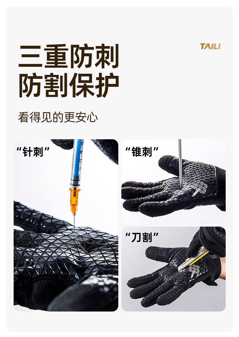 太力防割手套 轻薄透气 防刺木工园艺手套工地车间 手套挑选测量方法