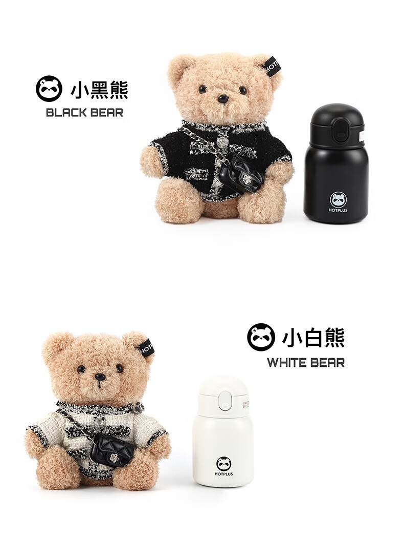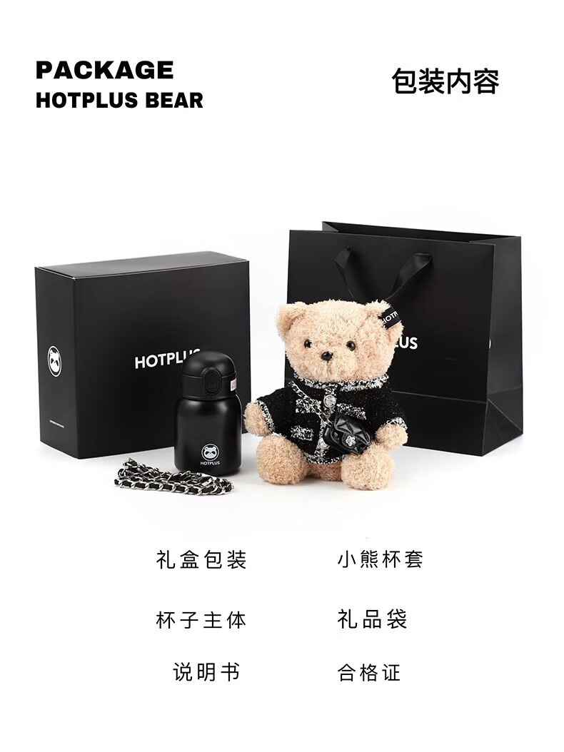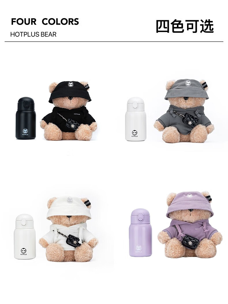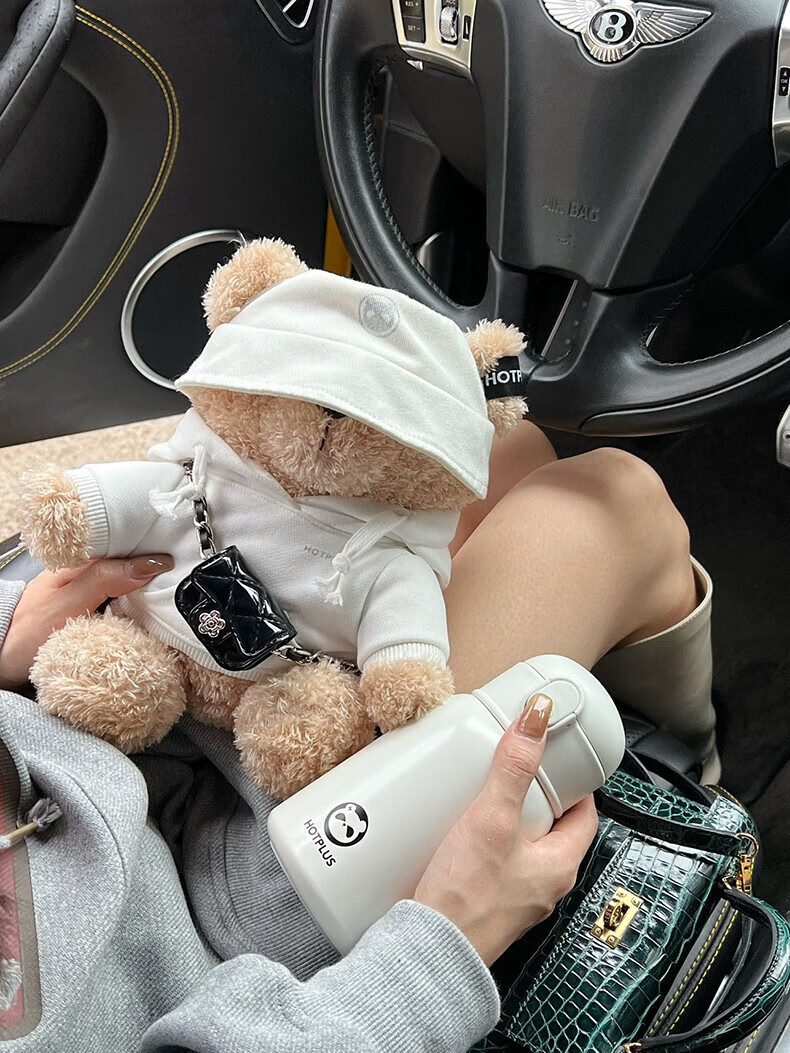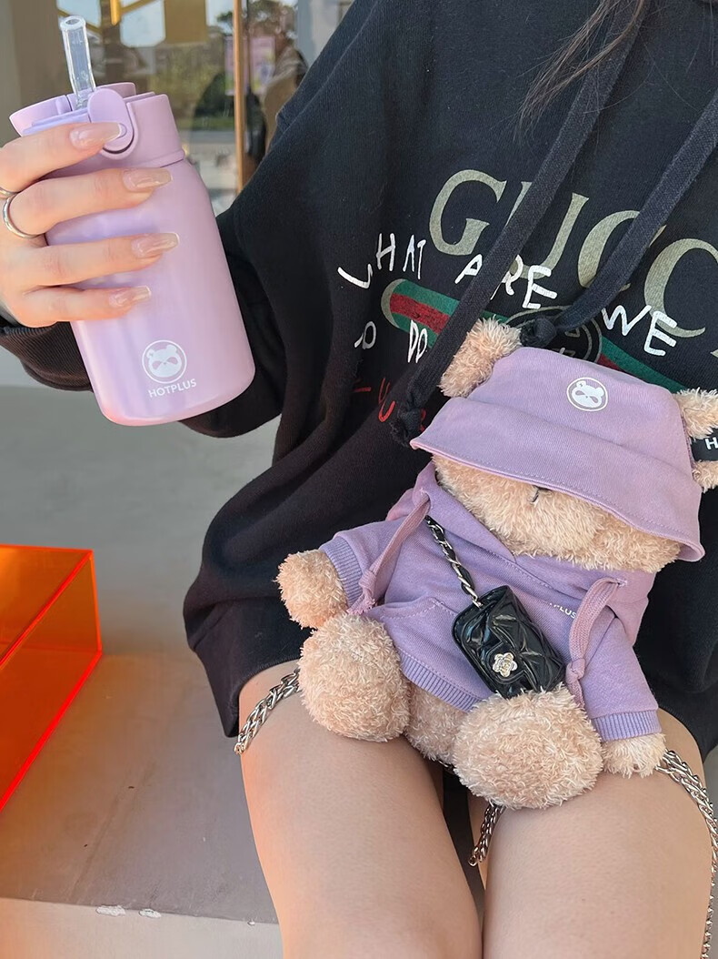 HOTPLUS哈品卫衣小熊保温杯女高颜值可爱带吸管学生网红水杯新年圣诞礼物 卫衣熊红色 450ml