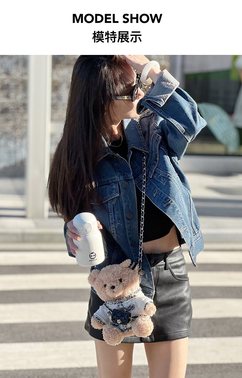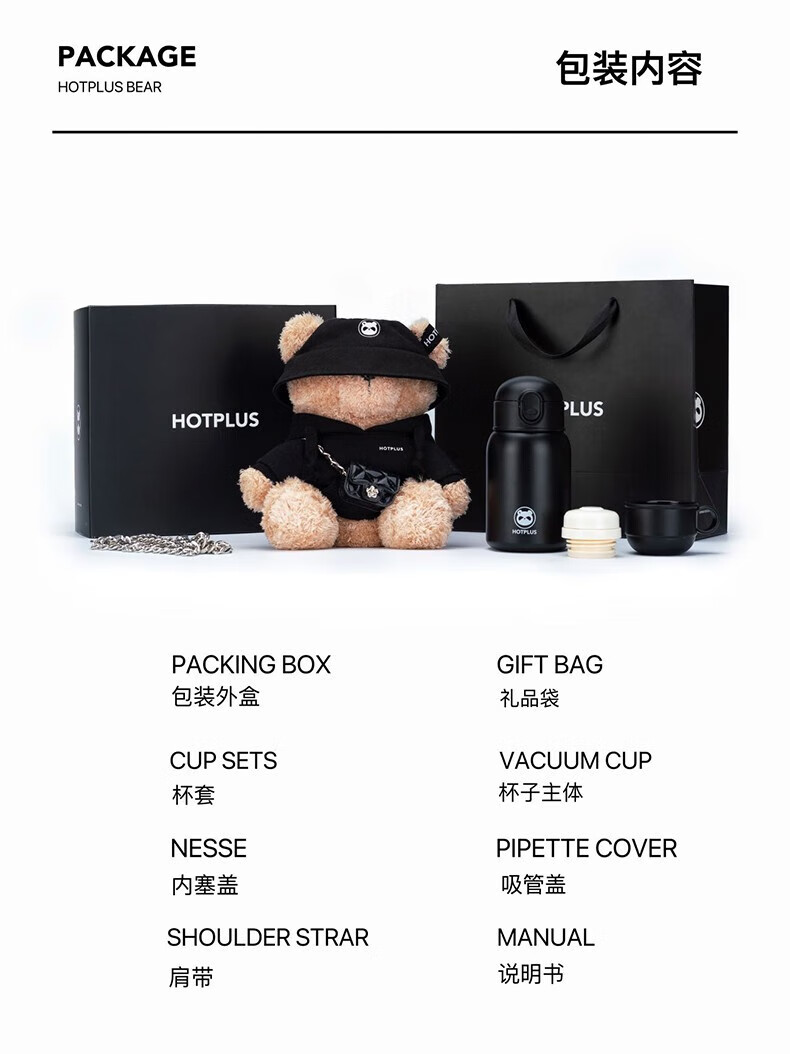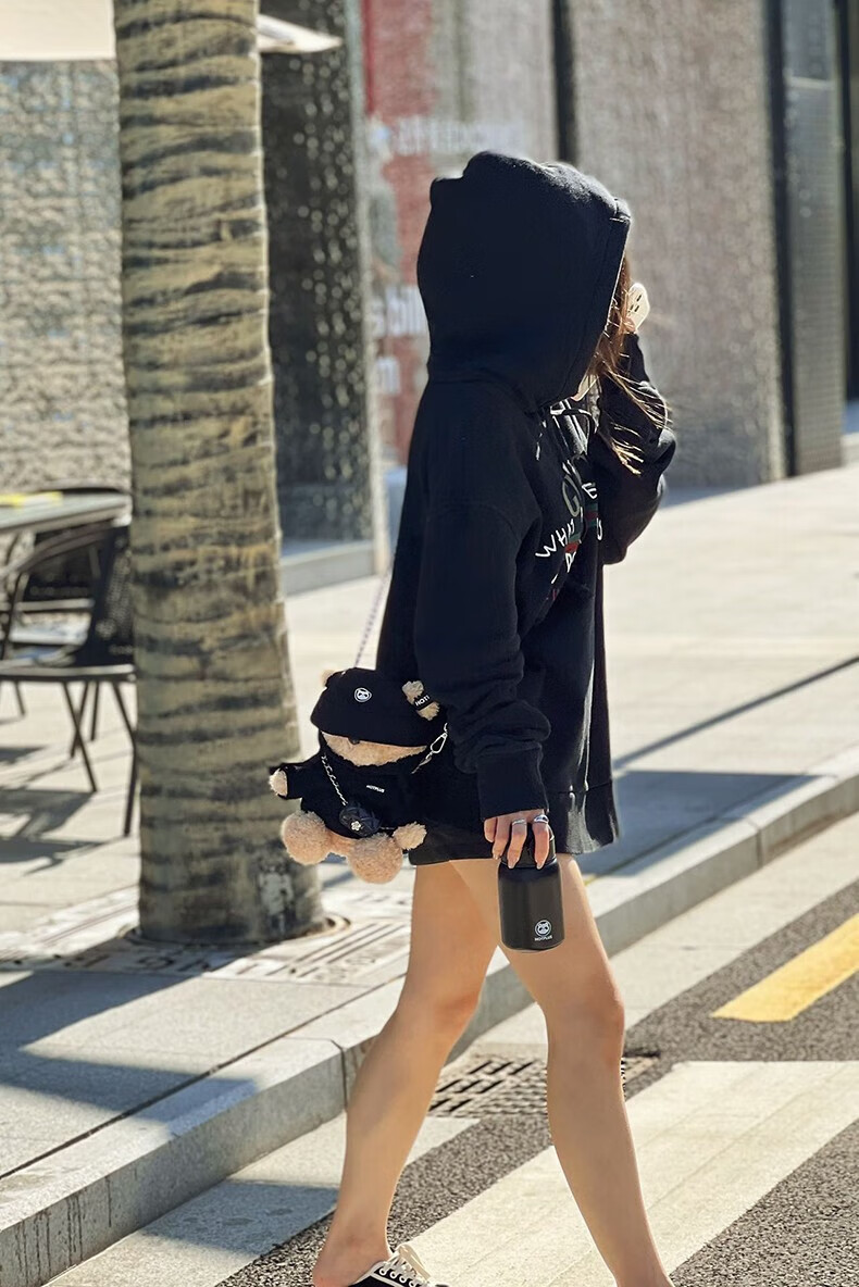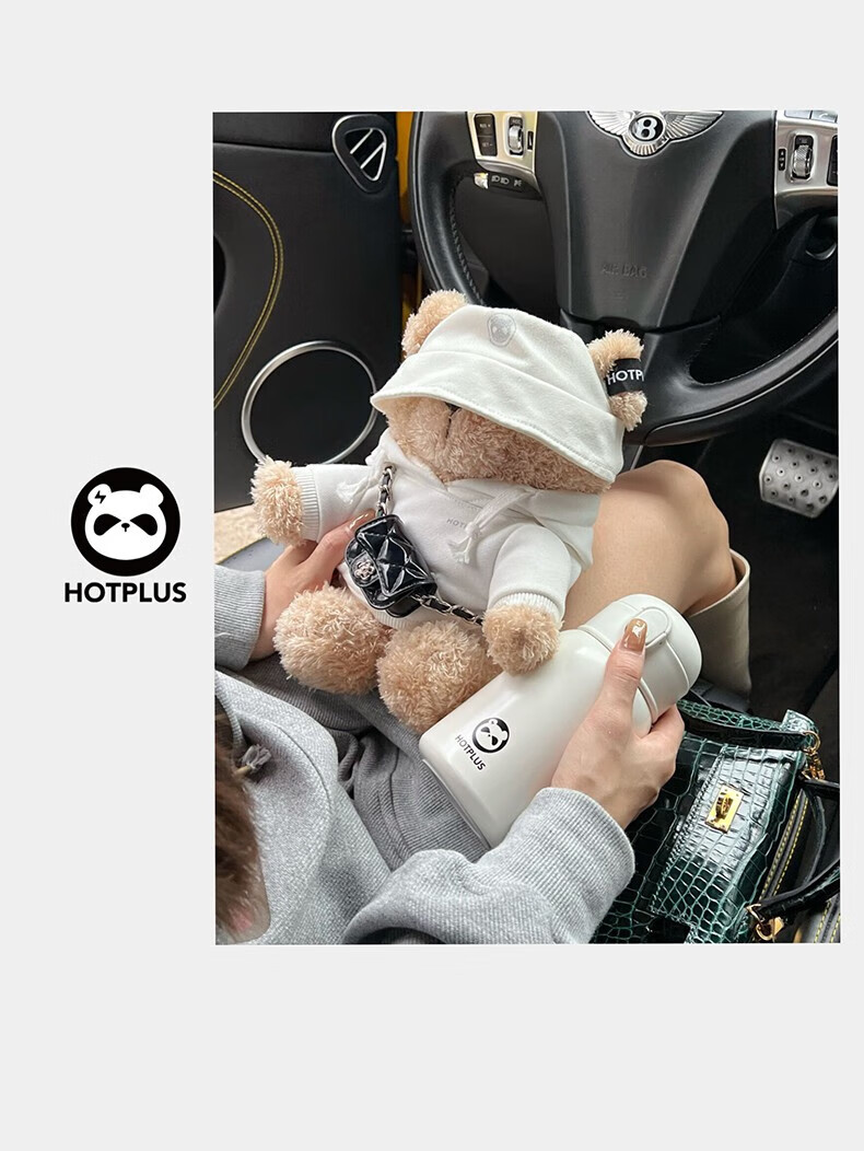 HOTPLUS哈品卫衣小熊保温杯女高颜值可爱带吸管学生网红水杯新年圣诞礼物 卫衣熊红色 450ml