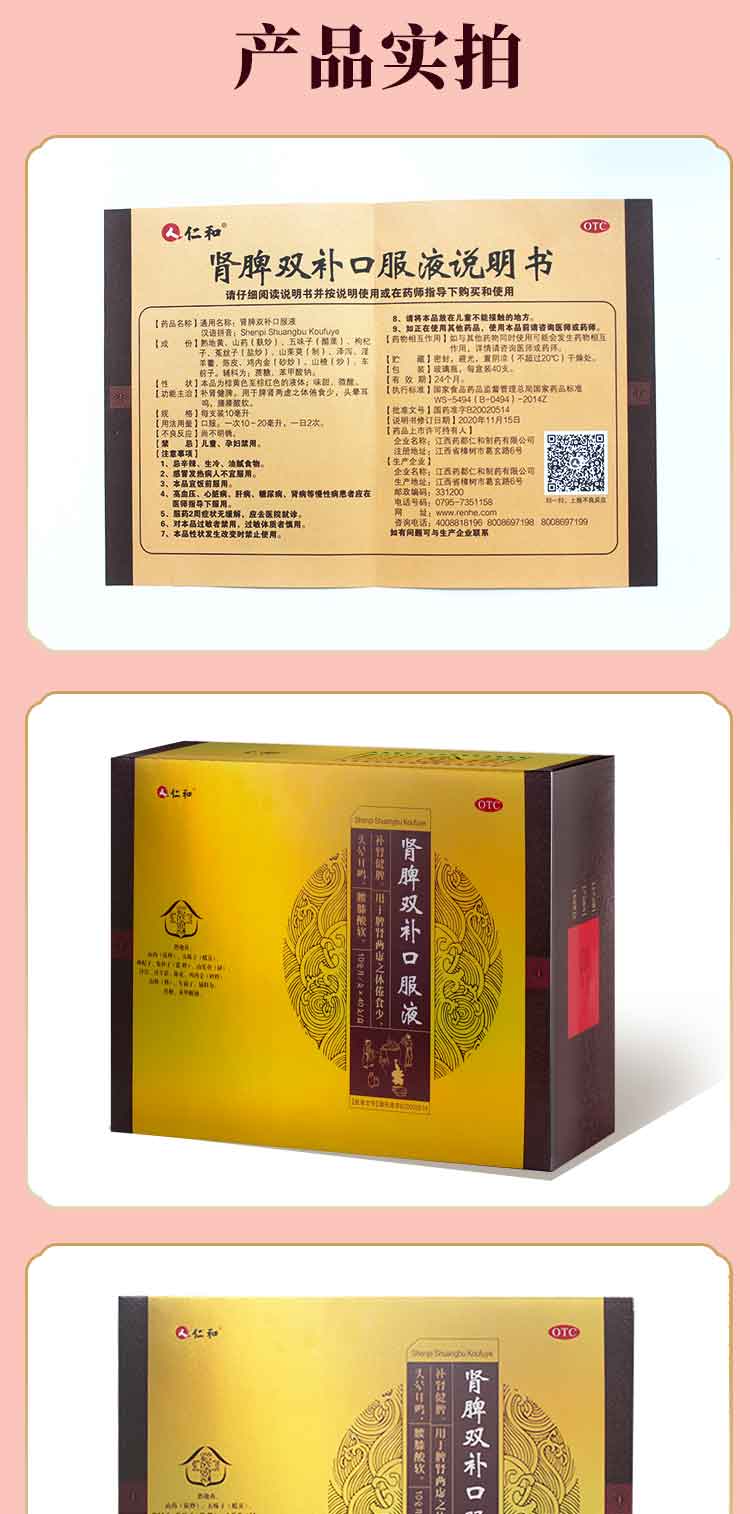 [仁和] 肾脾双补口服液 10ml*40支/盒补肾健脾。用于脾肾两虚之体倦食少,头晕耳鸣,腰膝酸软。 一盒
